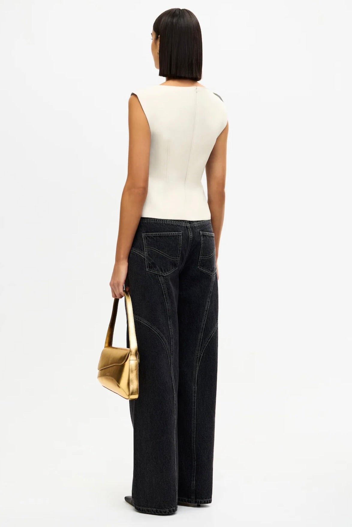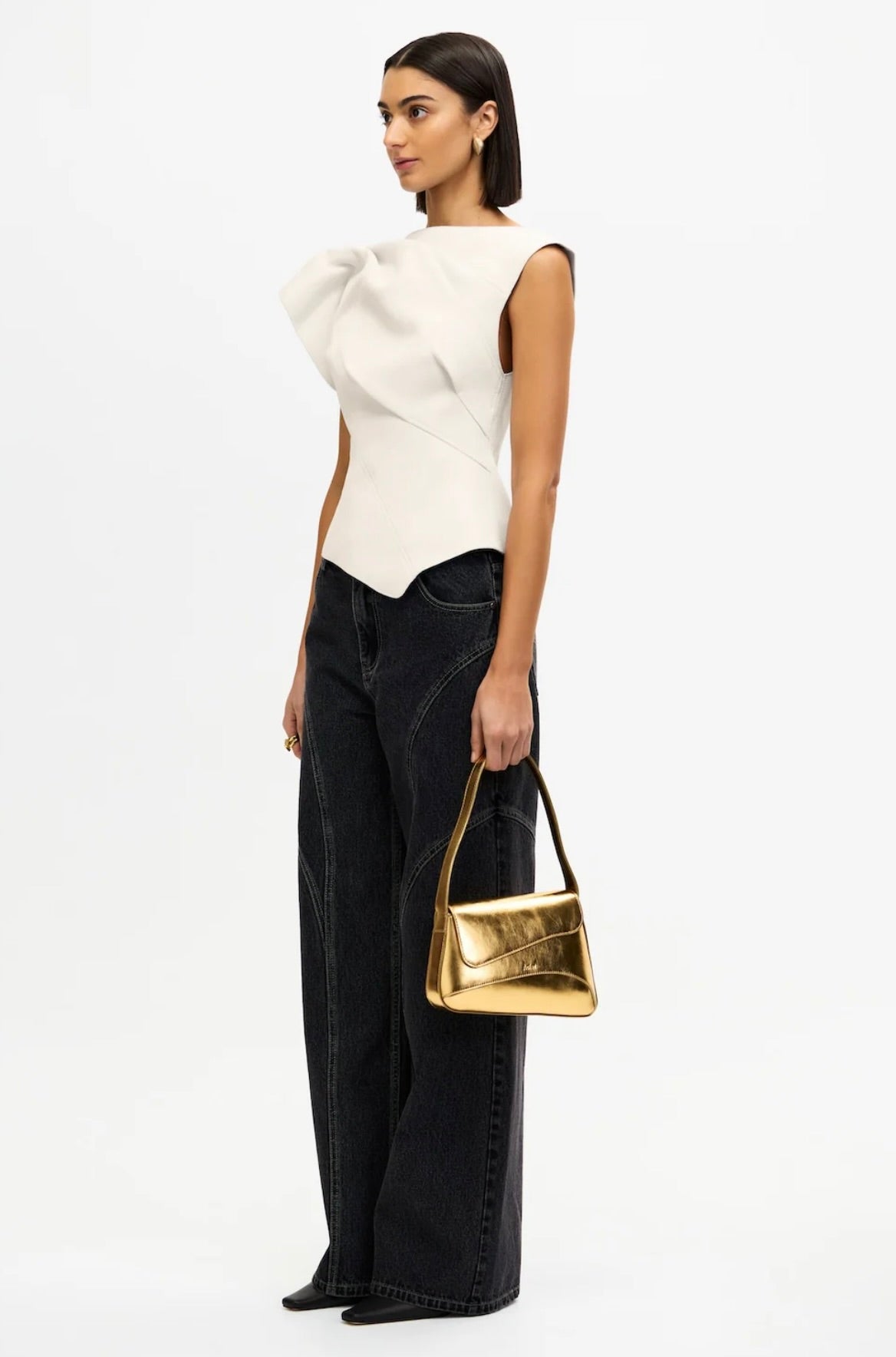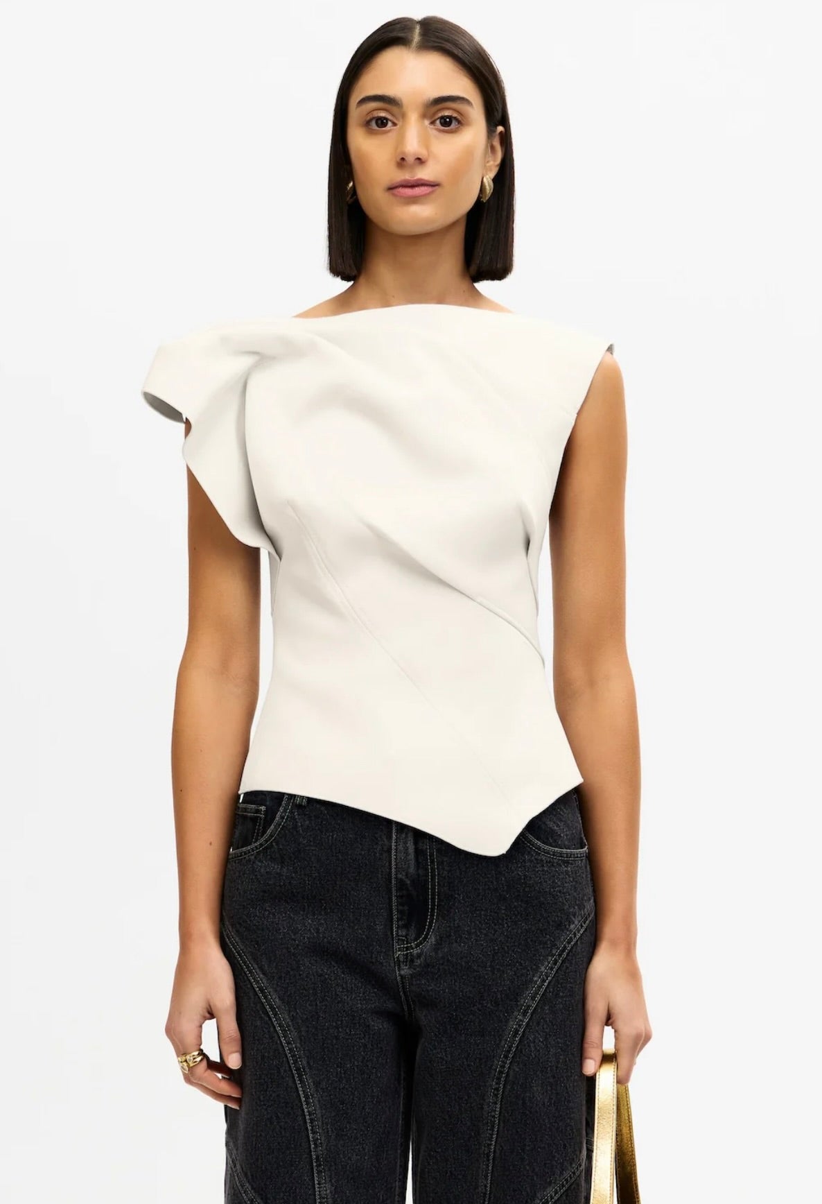 The Acler Cornmore Top in Ivory merges architectural precision with understated elegance. Crafted from bonded, woven fabric, this piece delivers a sculpted silhouette that drapes with refined sophistication against the body. Its opaque construction ensures versatile styling confidence, whether layered for elevated everyday moments or worn as a statement piece for special occasions. A masterclass in minimalist design that transcends seasonal trends.
