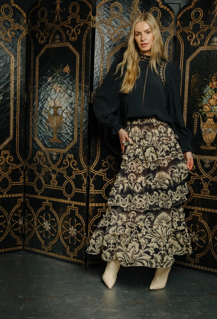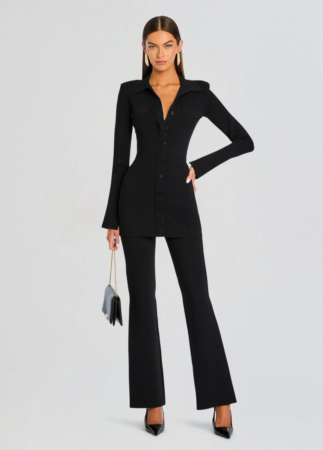 SEROYA Mickie Knit Flare Pant in Medium Grey