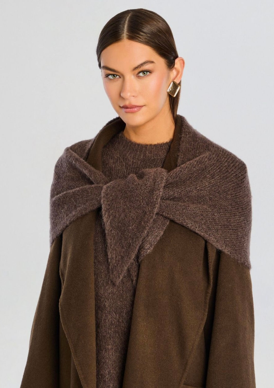 The SEROYA Amelie Scarf in Slate Brown is a beautifully knit square scarf designed for versatile styling. Its refined texture and warm brown tone offer a sophisticated accent to any ensemble, making it a timeless accessory for year-round elegance.