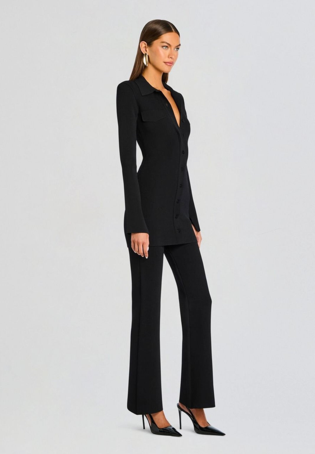 The Seroya Cleer Pant features a mid-rise fit with a refined knit flare silhouette.