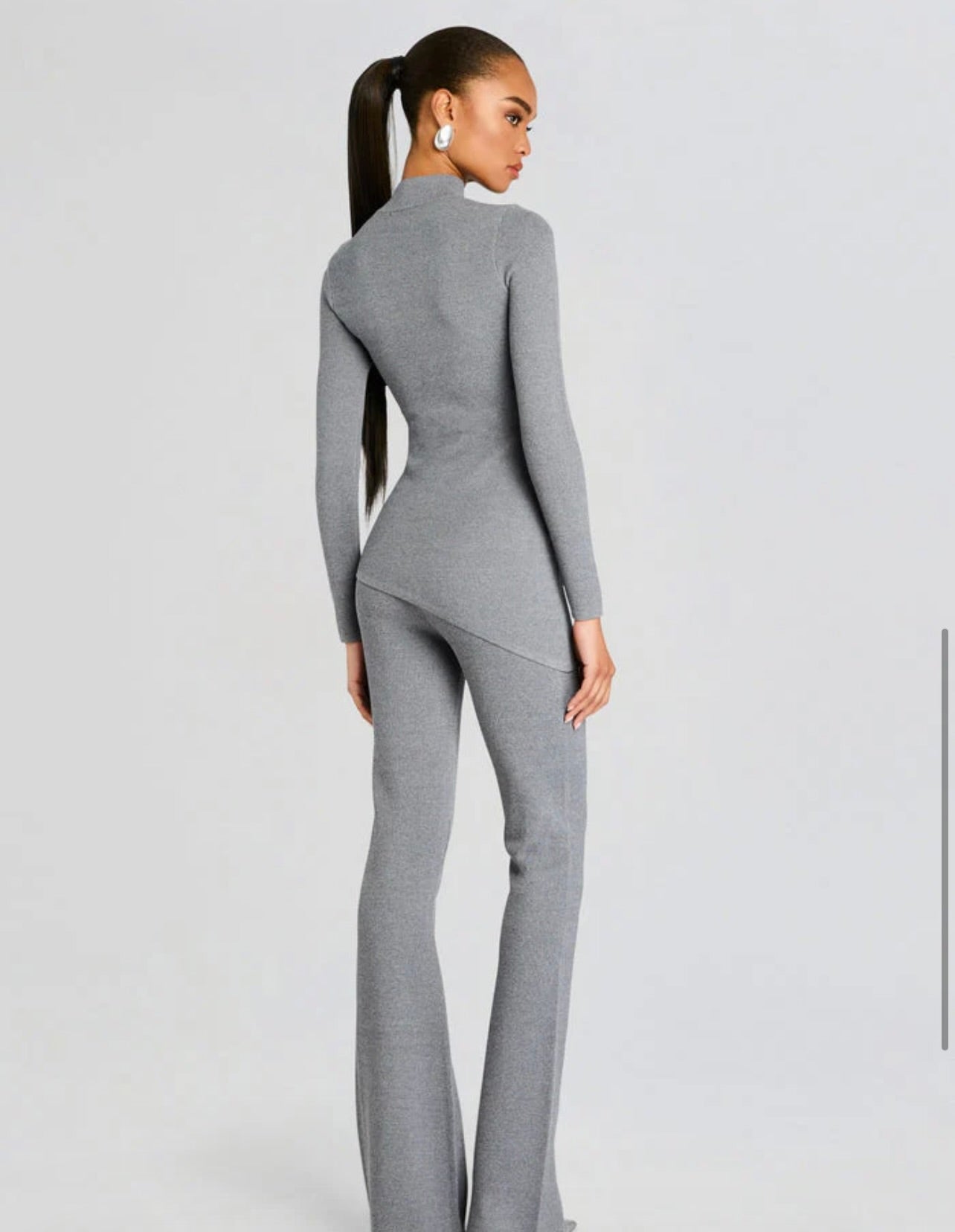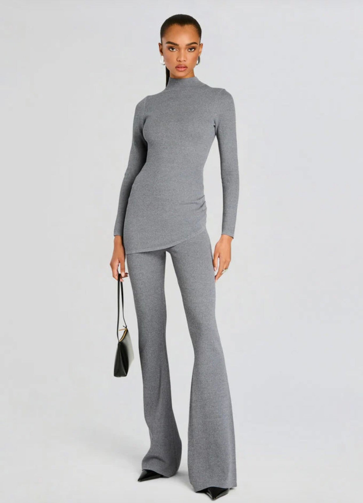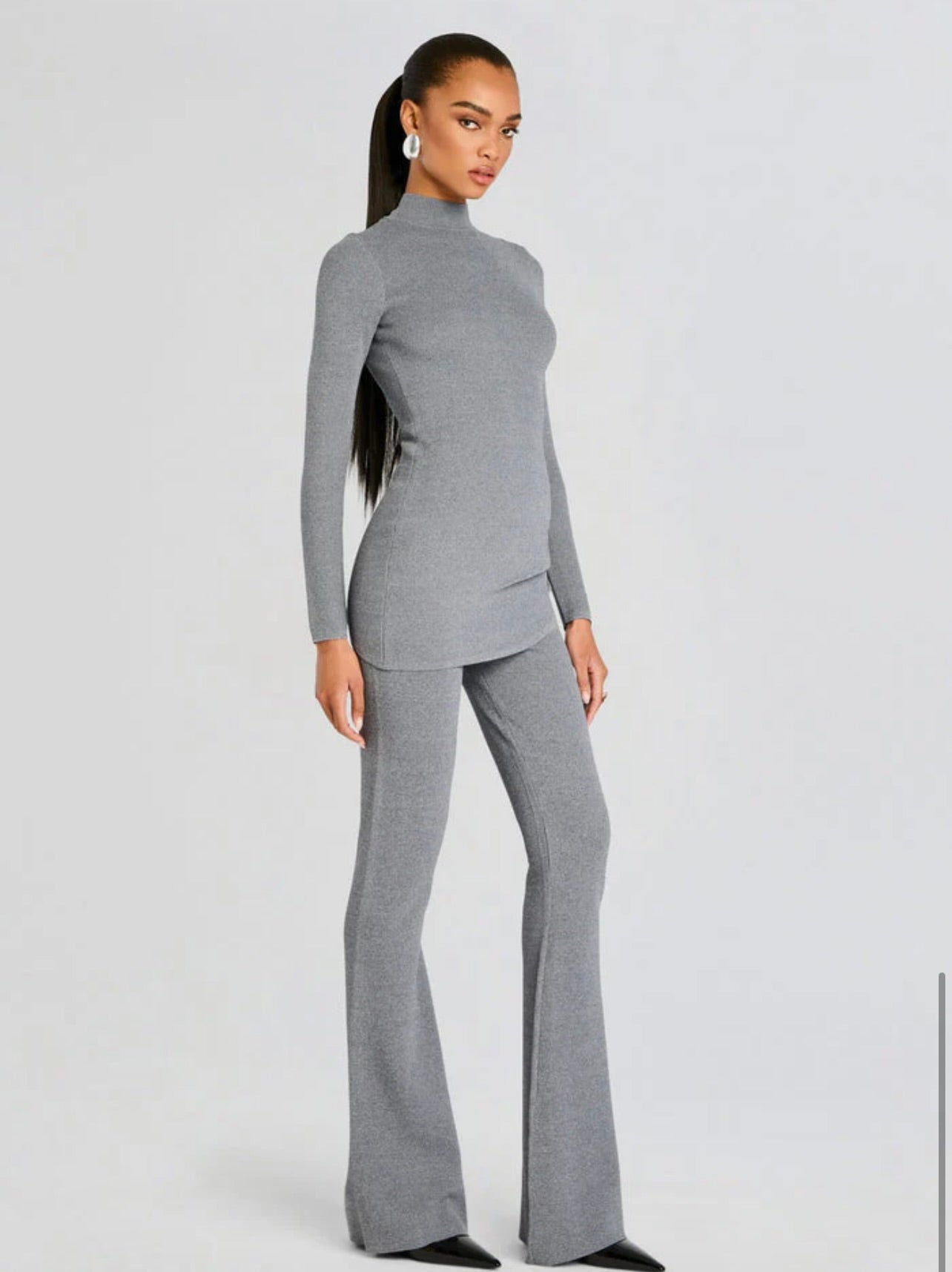 SEROYA Mickie Knit Flare Pant in Medium Grey
