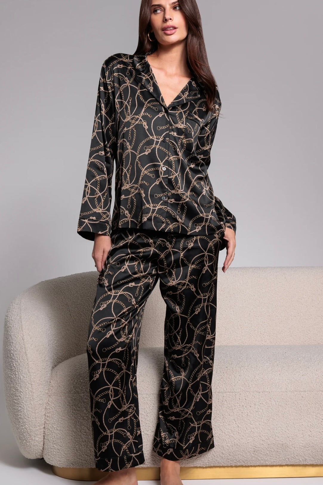 Generation Love Elina Pajama Set in Rope Chain Black Gold