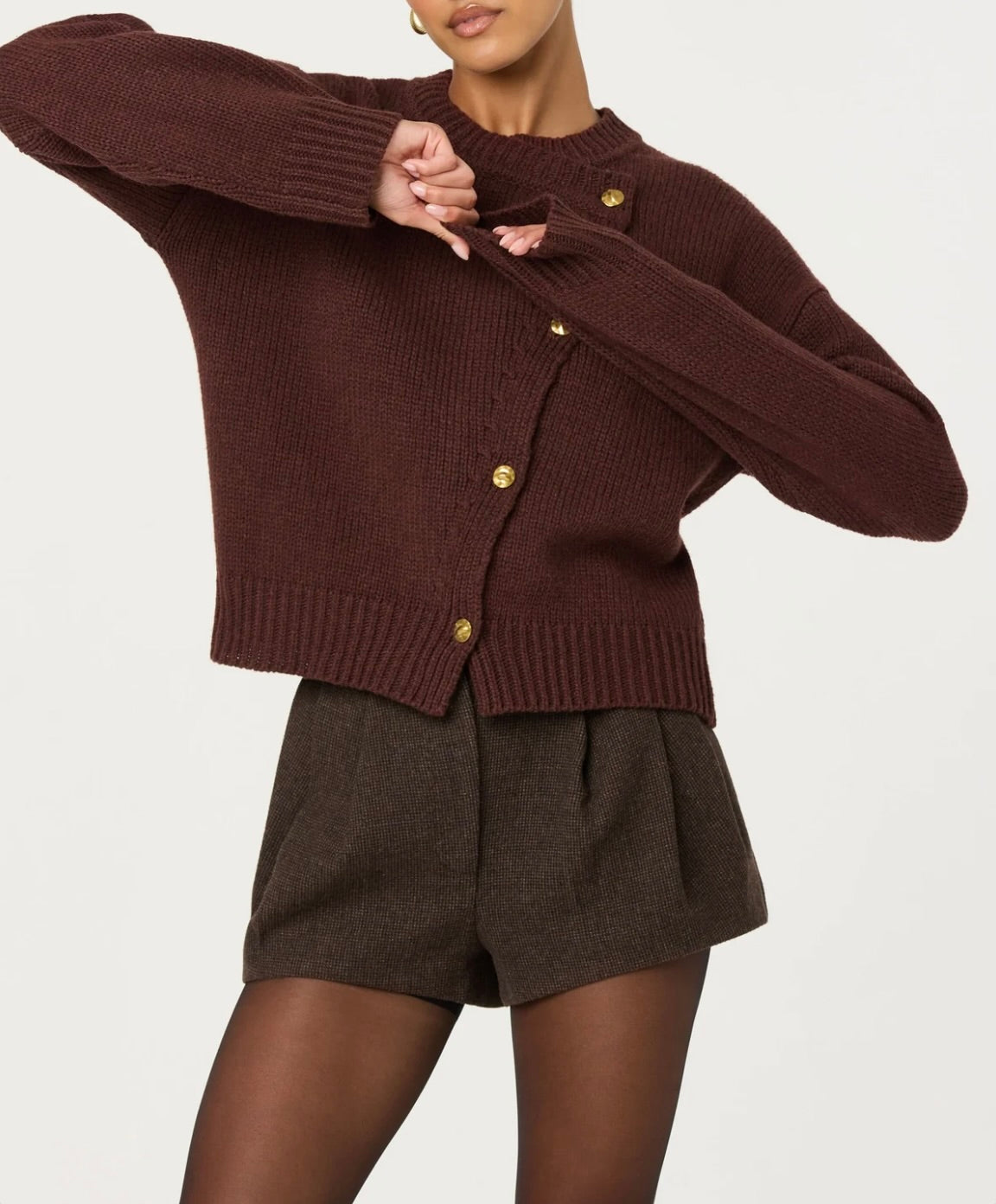 Crafted for the modern professional, this ASTR The Label cardigan delivers refined layering with unexpected detail. The integrated asymmetrical scarf elevates your silhouette while remaining completely removable—adapt it to suit your mood and the moment. Whether you're navigating a brisk commute or transitioning between meetings, this piece anchors your wardrobe with quiet sophistication. Pair it with your favorite basics for effortless, polished style that never feels overdone.