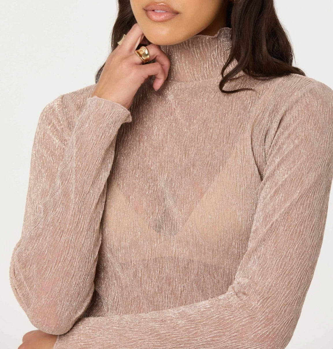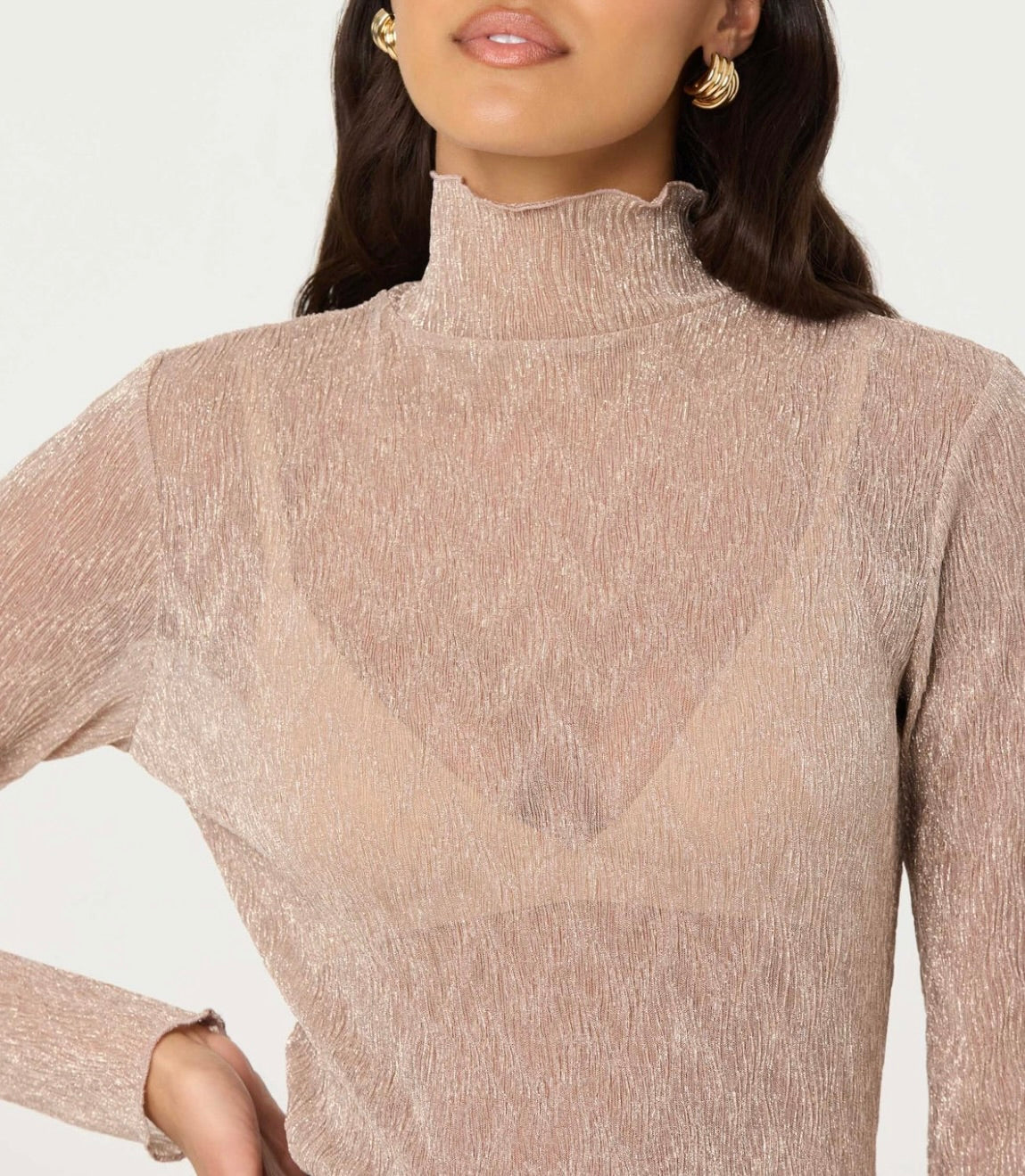 This sheer metallic top from ASTR The Label brings understated glamour to your evening repertoire. The luminous fabric creates an alluring shimmer perfect for special occasions and nights out. Pair it with crisp tailored trousers for polished sophistication, or layer it over a slip dress with a mini skirt for contemporary edge. A versatile piece that transitions seamlessly from cocktail hour to late-night celebrations.