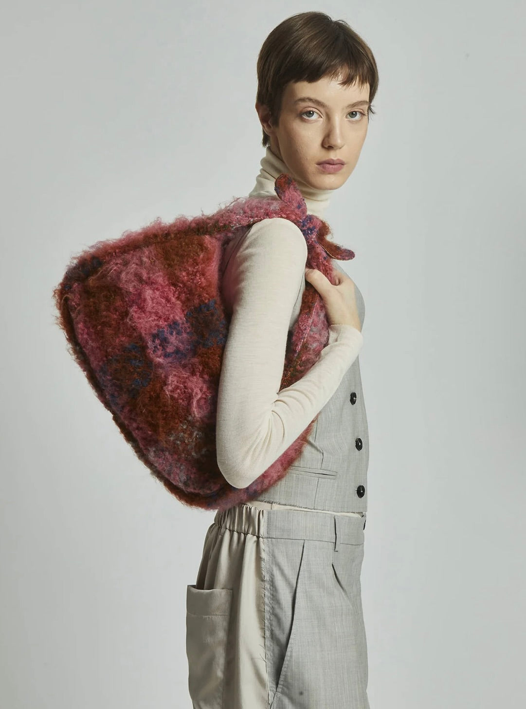 Luxurious Cow Print Knitted Microfiber Tote Bag in Black and Cream