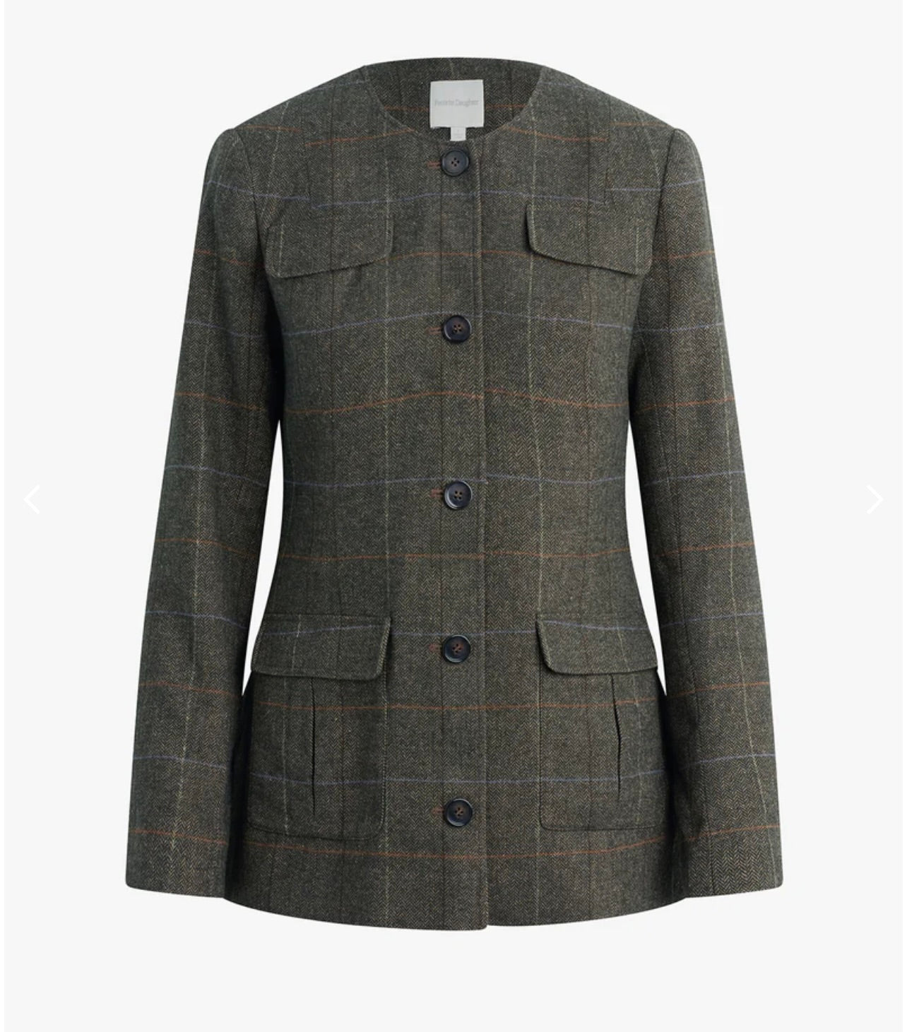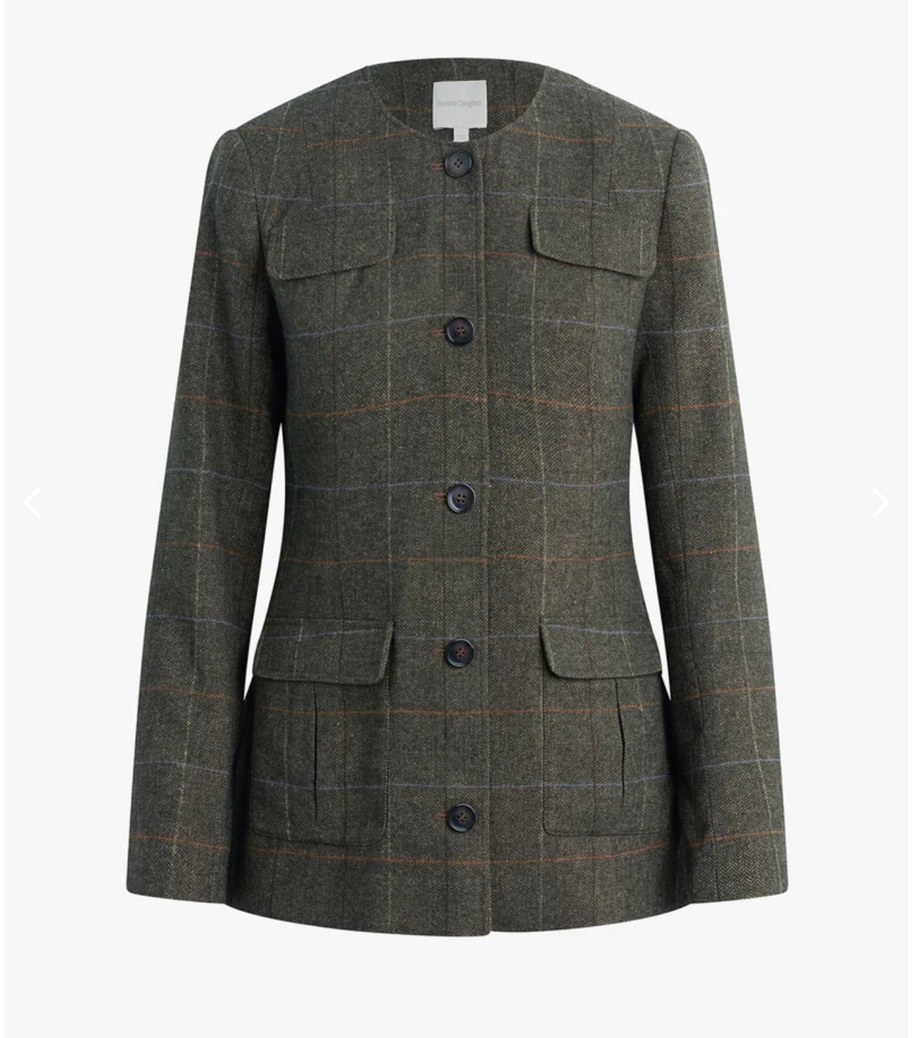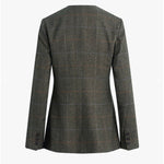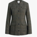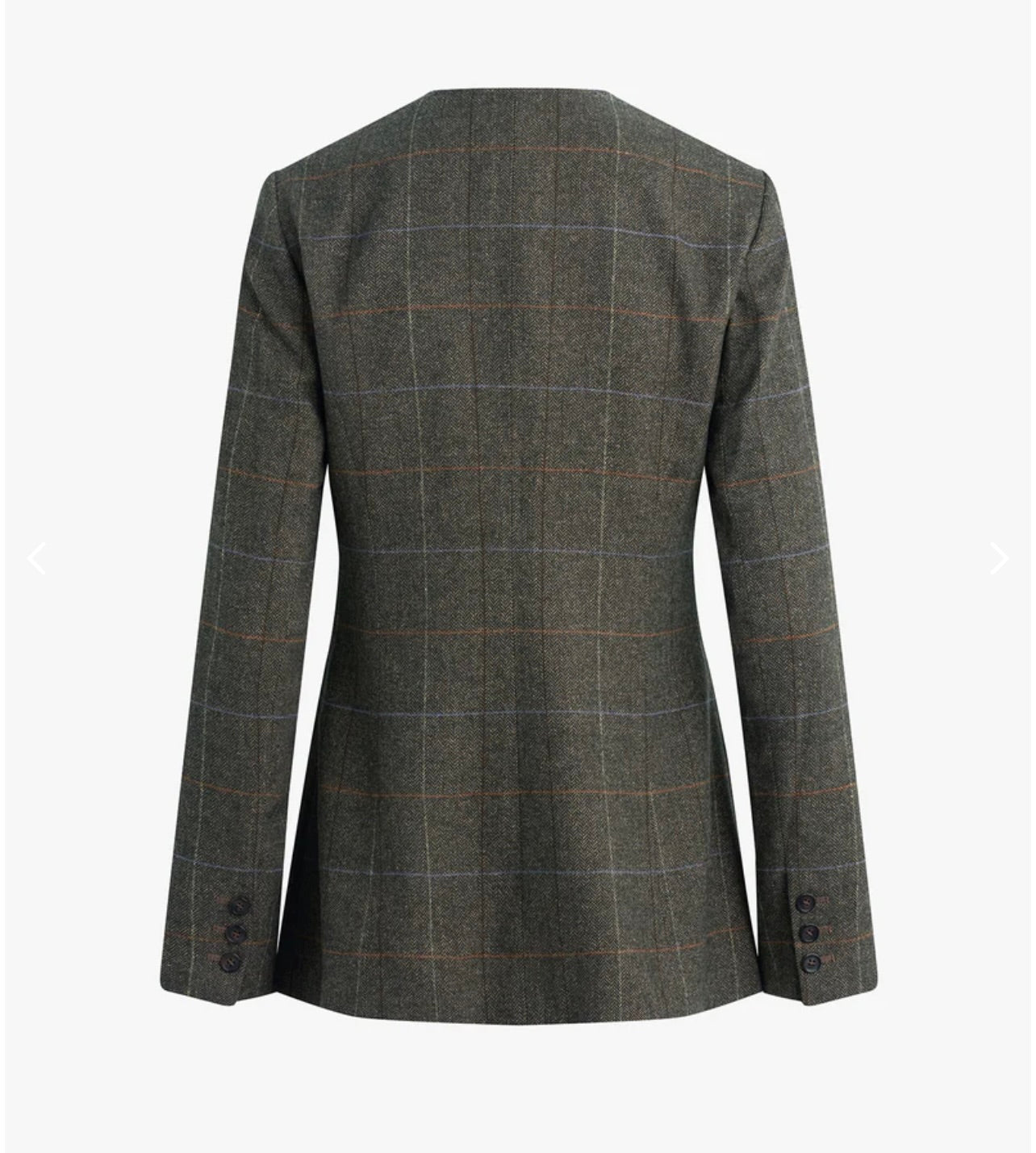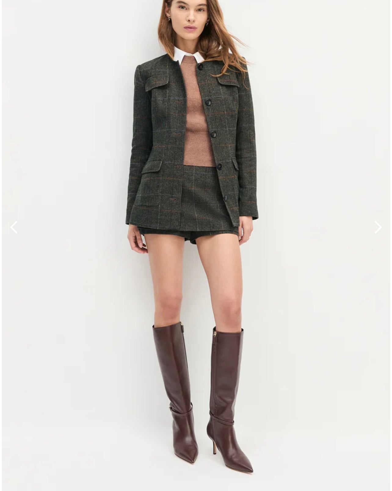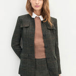 The Spencer Jacket offers timeless sophistication for both work and evenings out. Made from a soft wool-blend in a classic herringbone plaid, this collarless jacket features front patch pockets and a subtle, military-inspired design. Fully lined and thoughtfully extended in length, it pairs elegantly with The Spencer Skort or shines effortlessly on its own.
