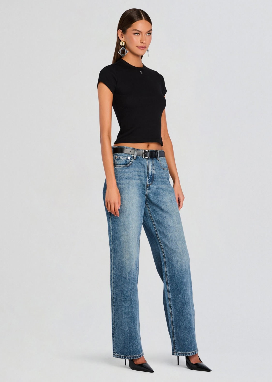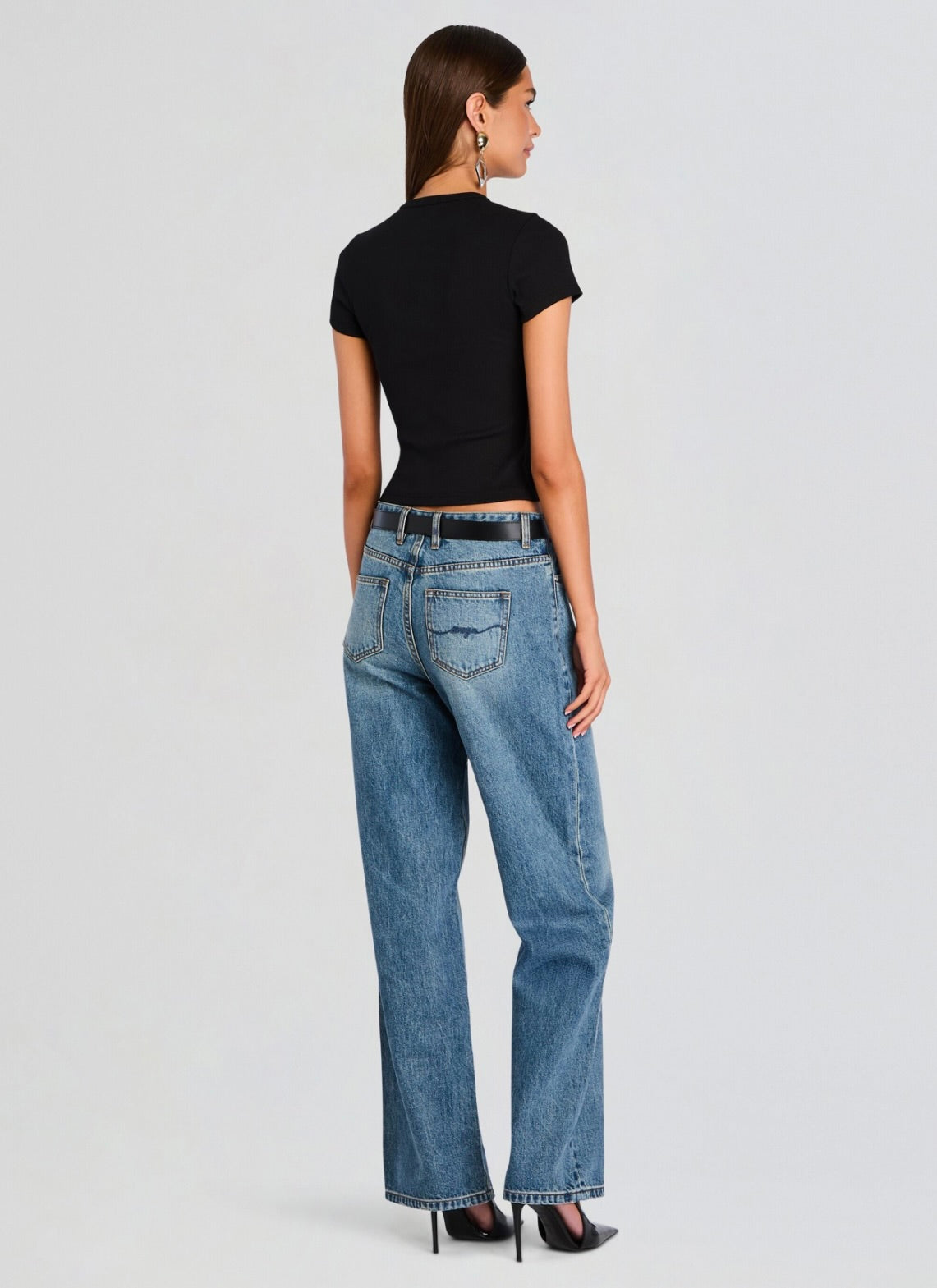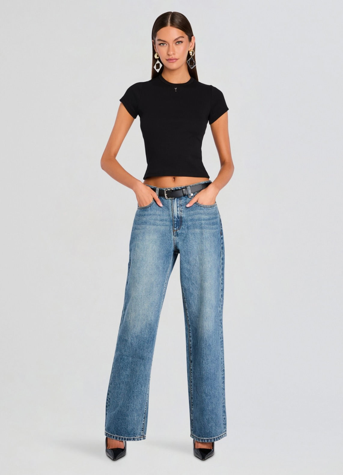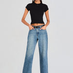The SEROYA Janie Mid Rise Jean features a flattering mid-rise fit with wide legs for a modern silhouette. Crafted with attention to detail, it showcases the distinctive SER.O.YA stitch on the back pocket, adding a subtle yet elegant touch. Available in the refined Dawn shade, this jean combines classic style with contemporary appeal, perfect for elevating your everyday wardrobe.