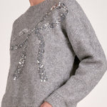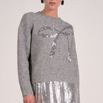 Meet the Elan Crewneck Bow Sweater—where refined elegance meets festive charm. This grey crewneck showcases a stunning sequin bow embellishment across the chest, delivering just the right amount of sparkle without sacrificing sophistication. Style it with denim for an effortlessly chic everyday look, or pair it with a sequin skirt to capture the magic of the season. A thoughtfully designed piece that works as hard at casual moments as it does at celebrations.