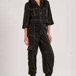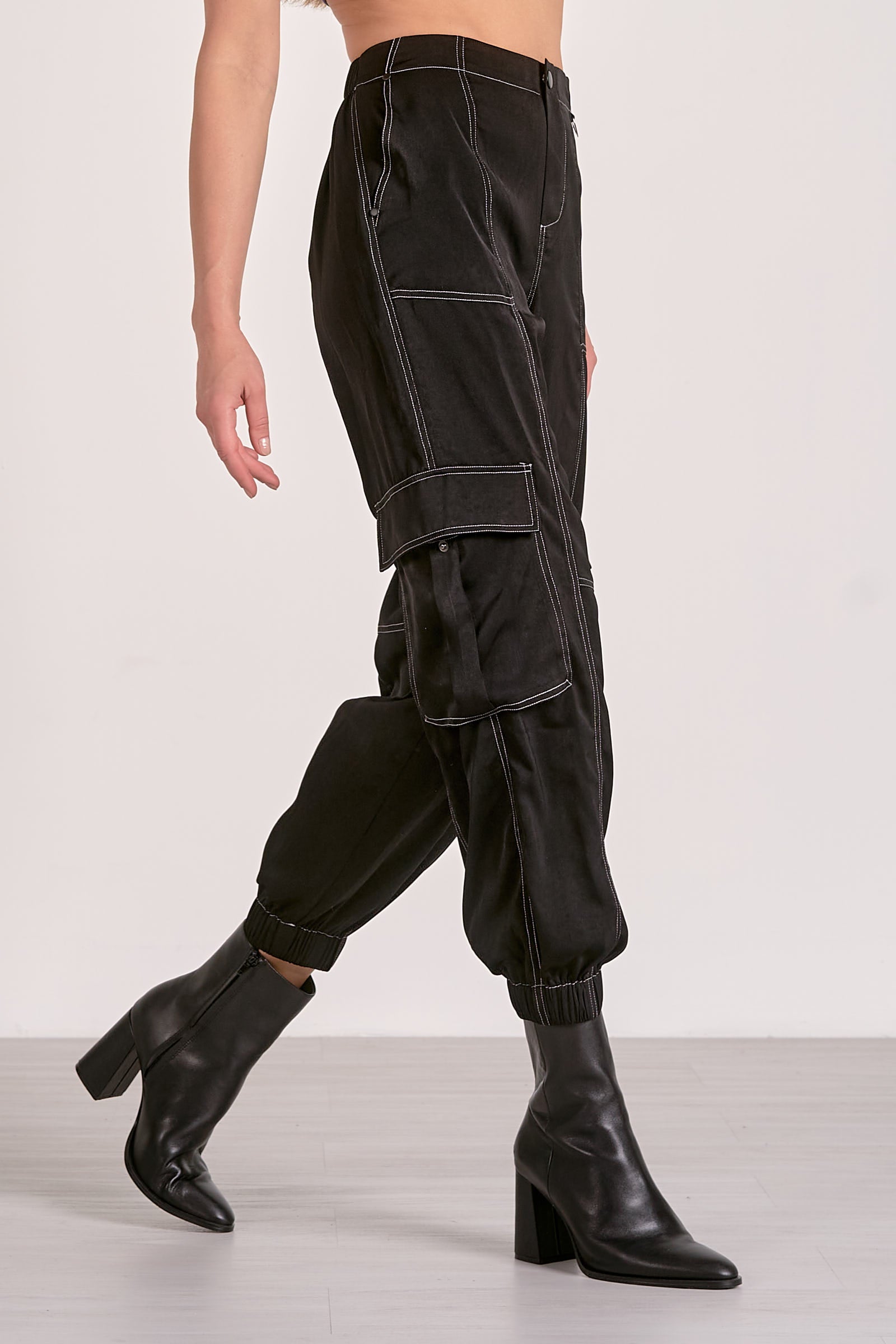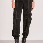 The Elan Selene Joggers elevate casual dressing with understated refinement. Constructed from lightweight and soft woven fabric, these cargo joggers feature a relaxed yet structured fit that bridges the gap between comfort and sophistication--making them equally at home with a crisp fitted tank, layered beneath an oversized knit, or styled with the matching Suzie Top.