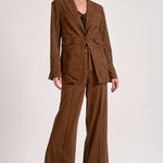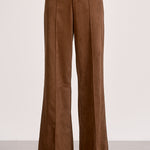 Discover refined elegance with these Elan suede high waist pants in brown. Constructed from buttery-soft faux suede, they feature a high waist and wide legs that create a streamlined silhouette to flatter every frame. The luxurious fabric drapes beautifully while maintaining structure, making it ideal for both professional settings and sophisticated evening wear. A wardrobe essential that transcends seasons and trends, these pants embody timeless style with modern sensibility.