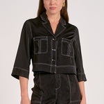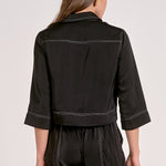 The Elan Suzie Top is a refined essential designed for modern versatility. Its three-quarter sleeves and relaxed fit in lightweight woven fabric create an effortlessly polished look suitable for any season. Layer it beneath a structured vest for depth, or pair with tailored bottoms for understated elegance.