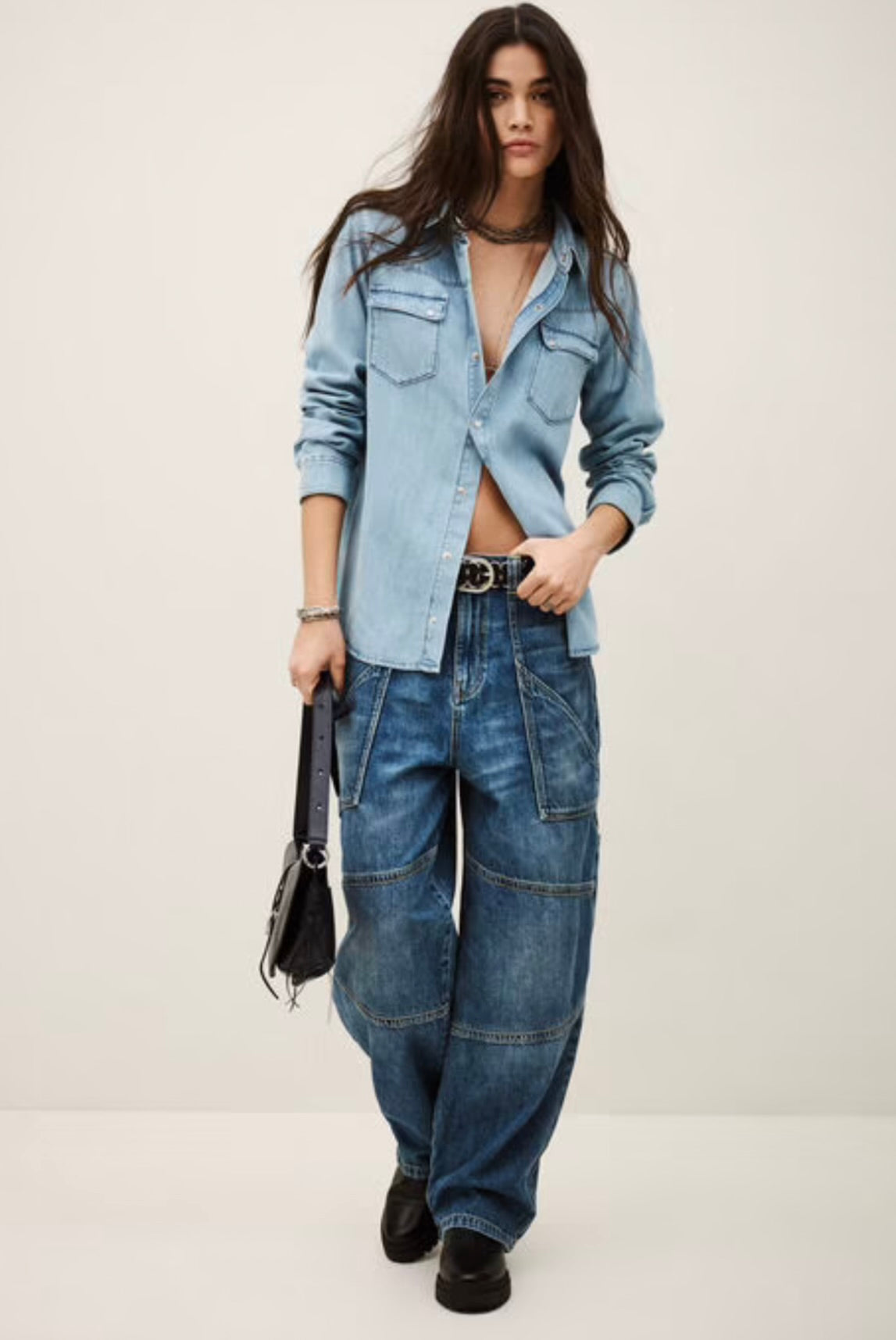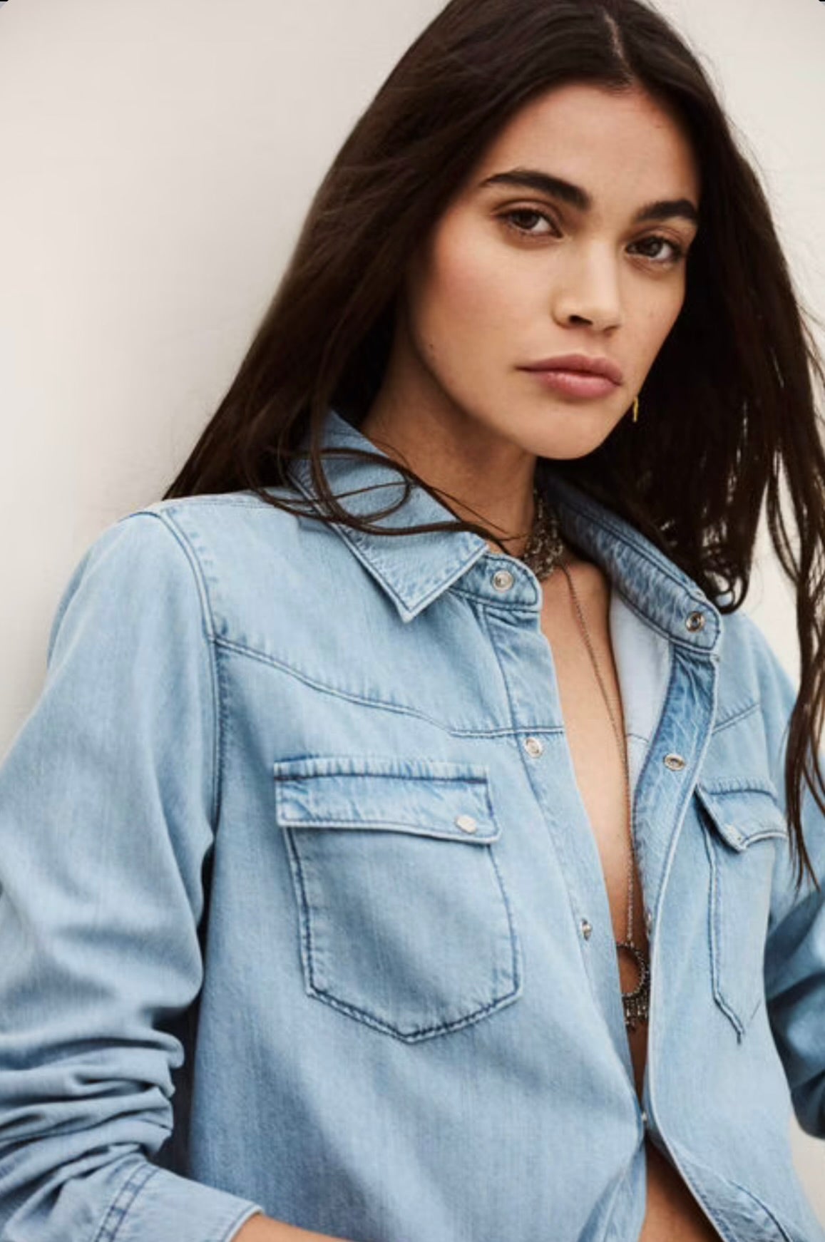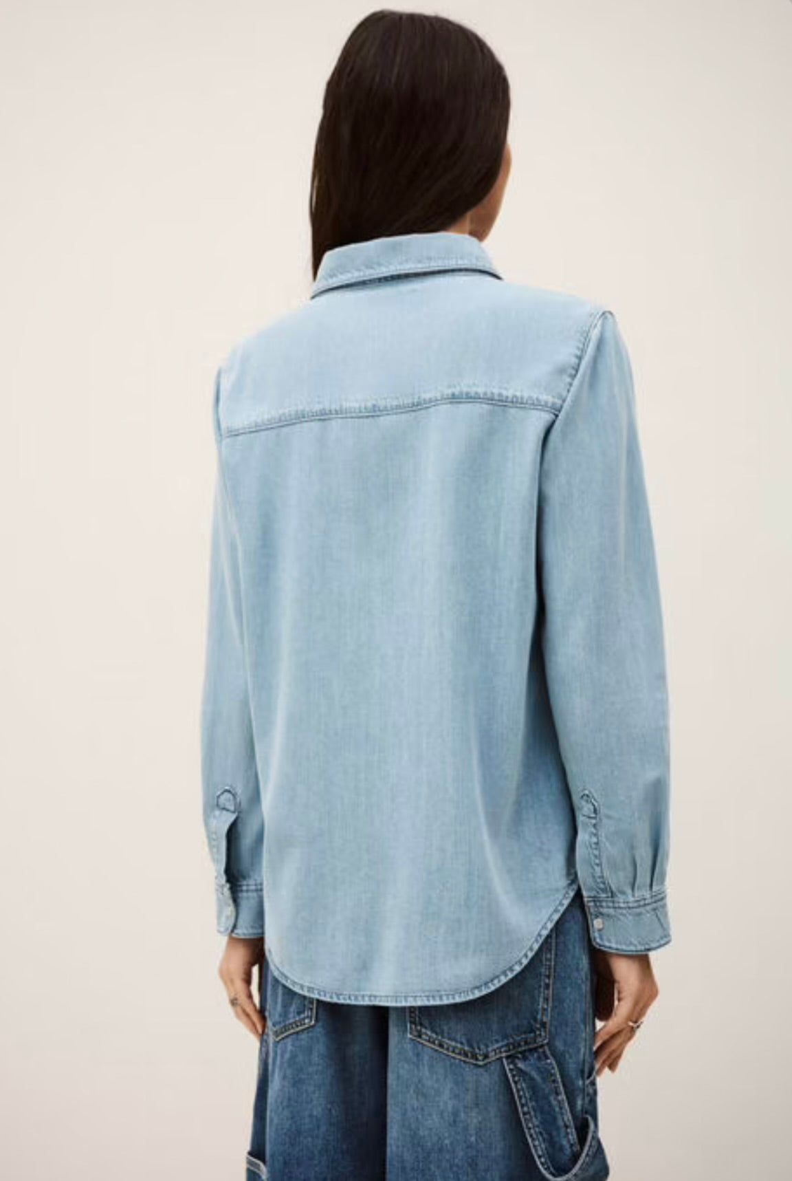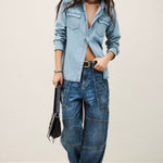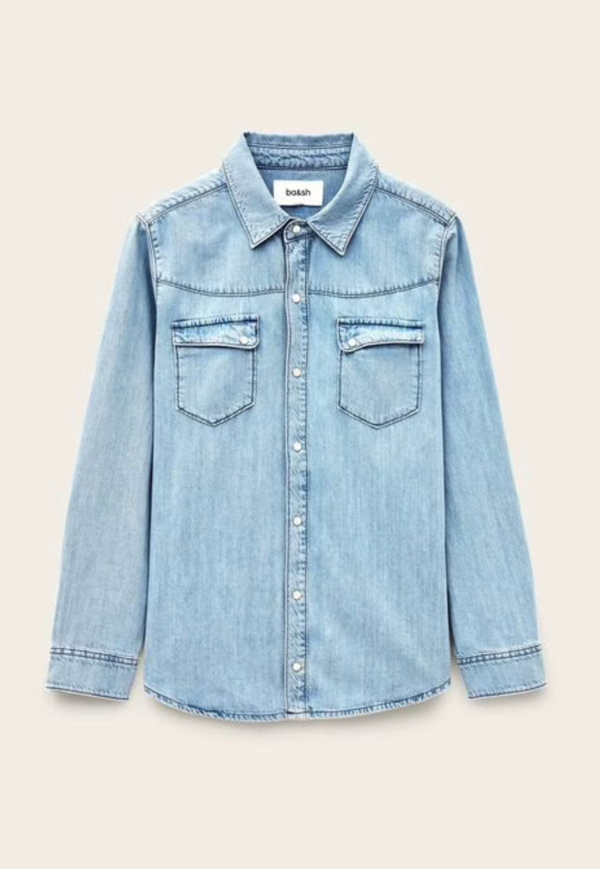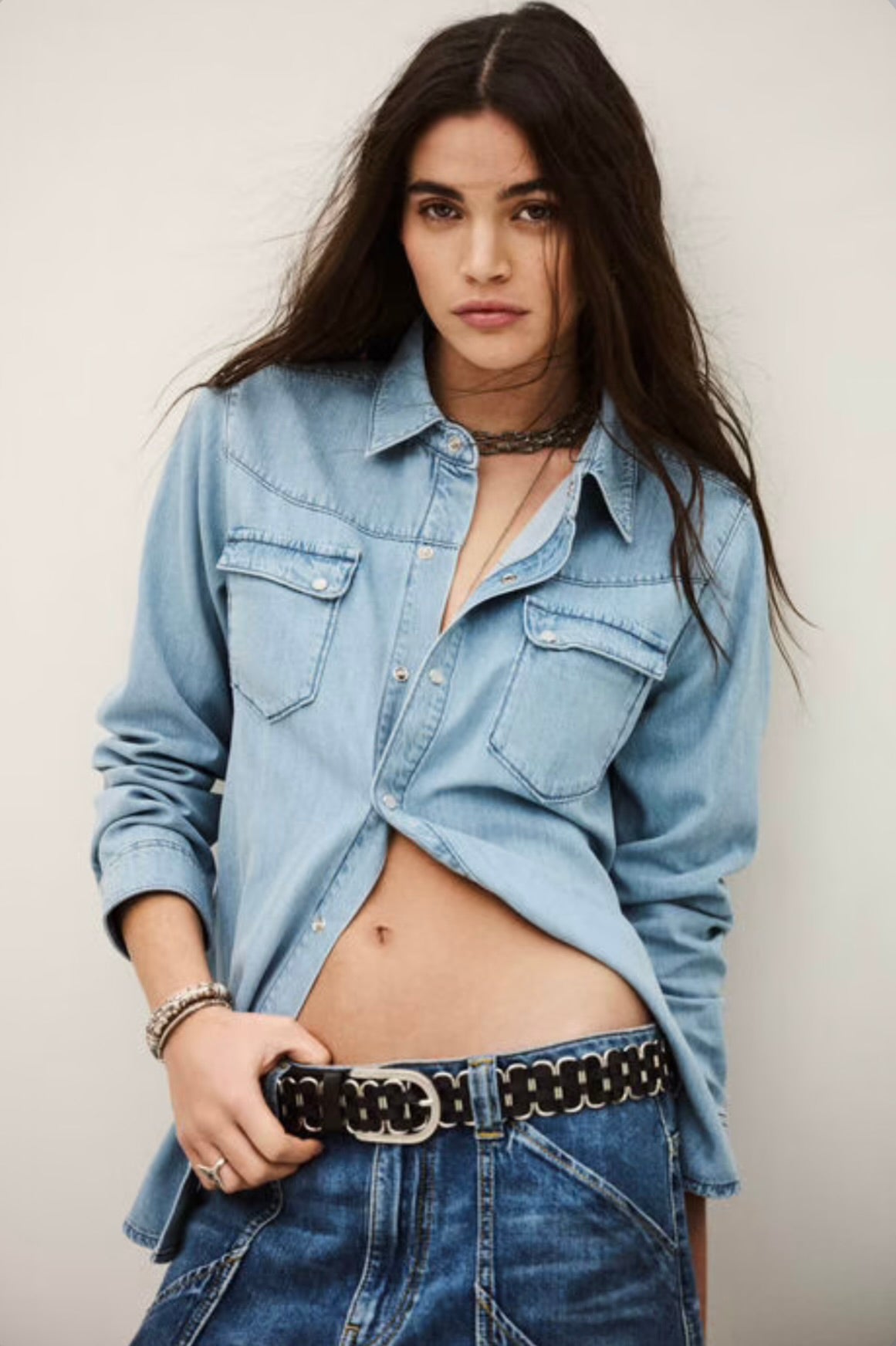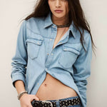 The ba&sh Adali Shirt features luxuriously soft denim construction and is versatile enough to pair with tailored trousers or casual denim. It embodies the art of effortless style.