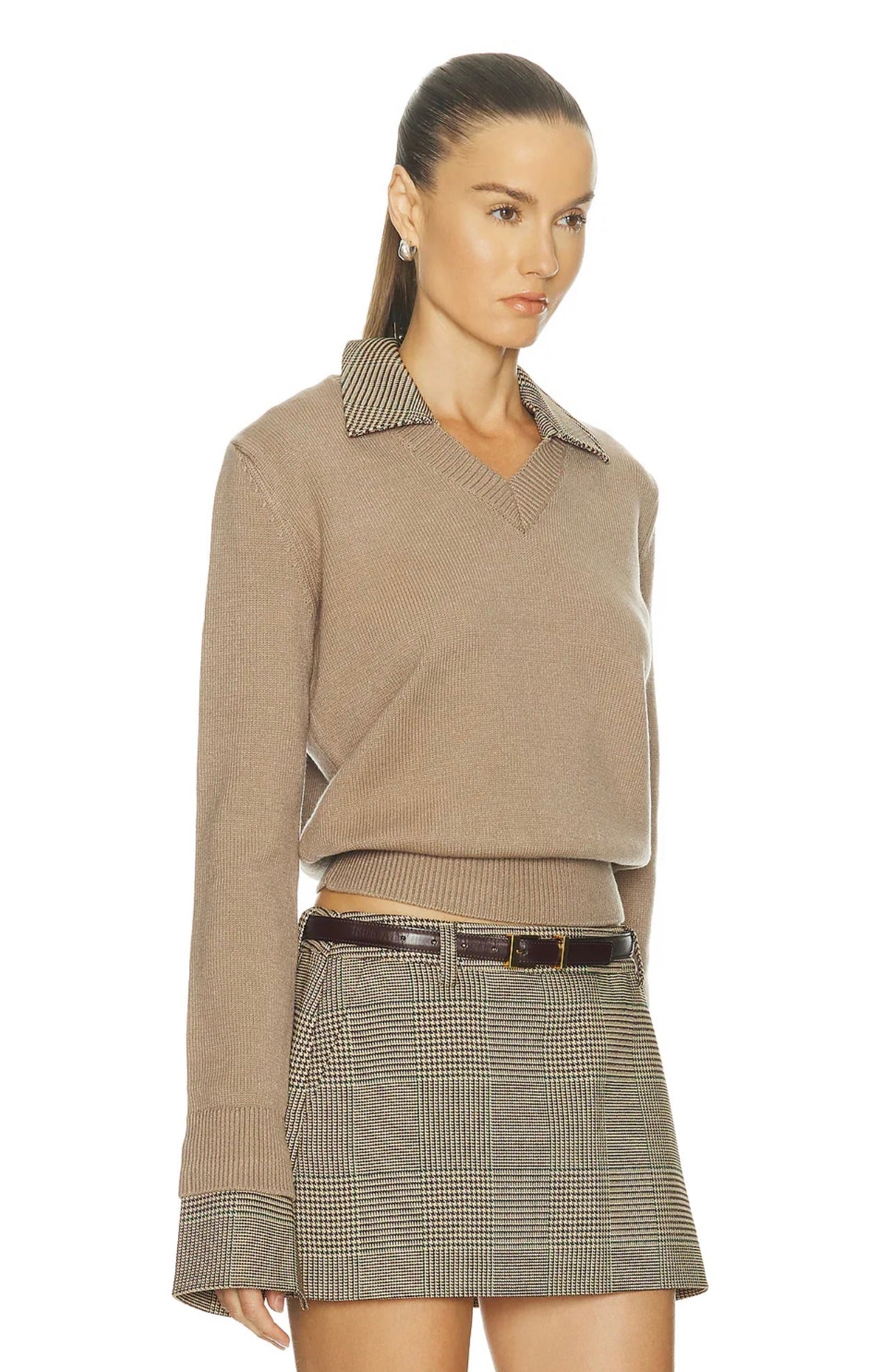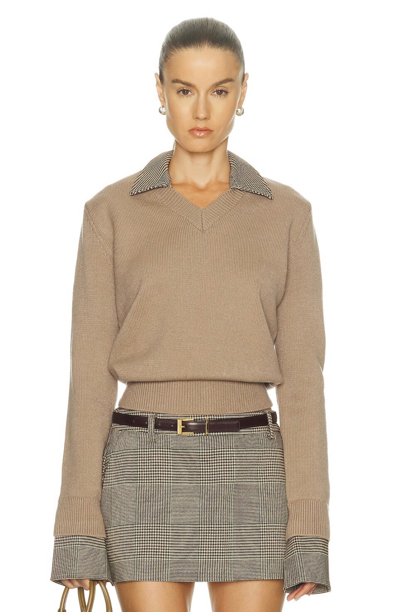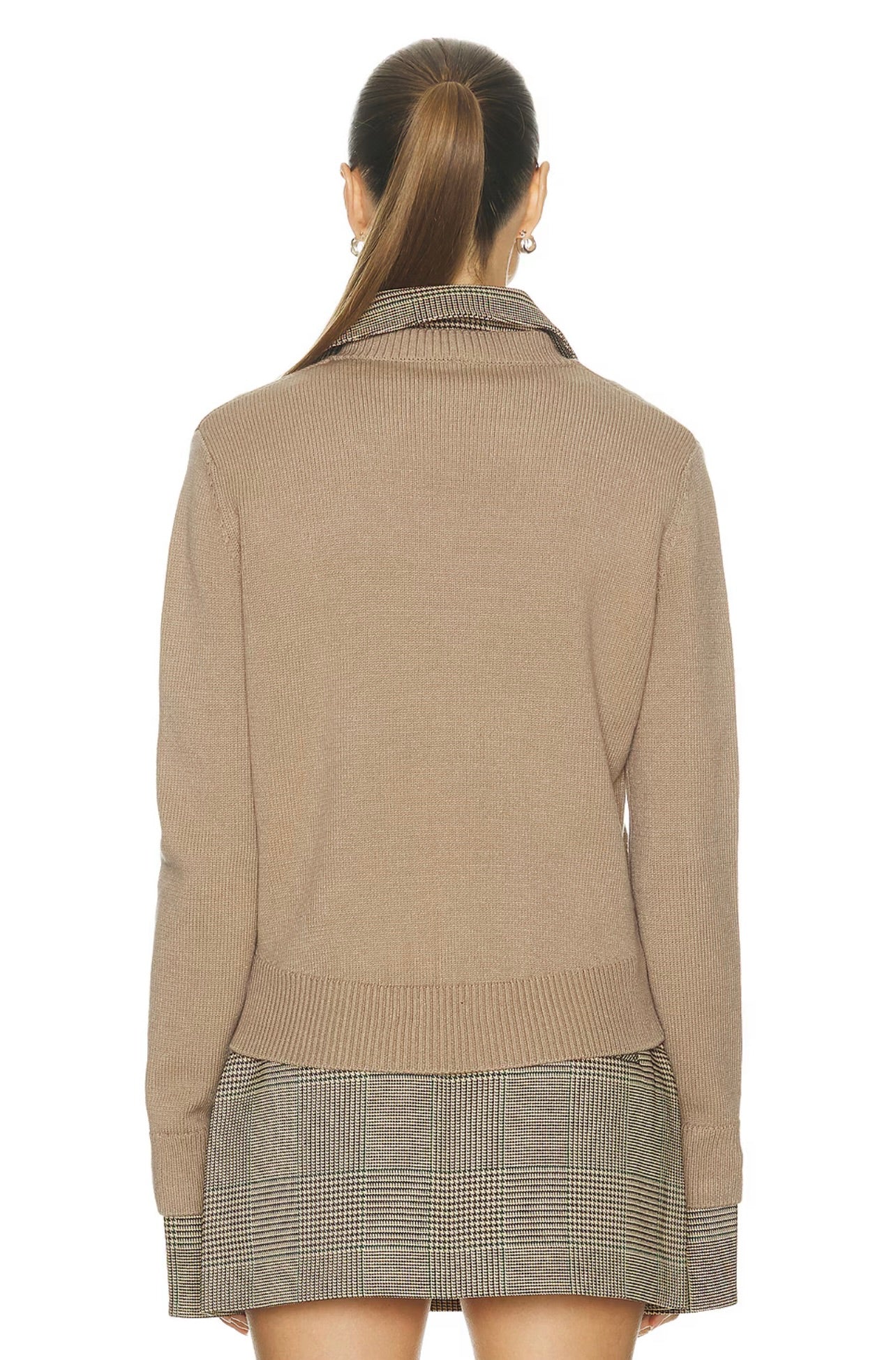 The SEROYA Maia Sweater in Desert combines refined design with versatile details. Featuring a flattering V-neck silhouette, this knit sweater is elevated by removable cuffs and collar, allowing you to customize your look effortlessly. Crafted for both comfort and style, it’s an elegant piece that adapts seamlessly to your wardrobe.