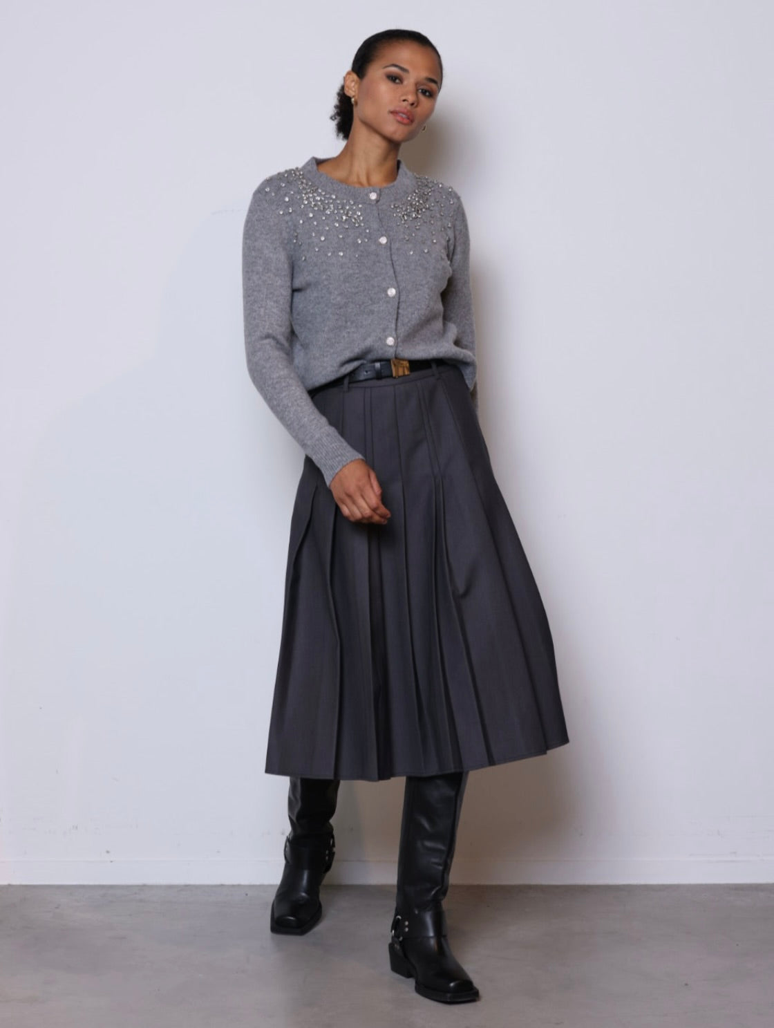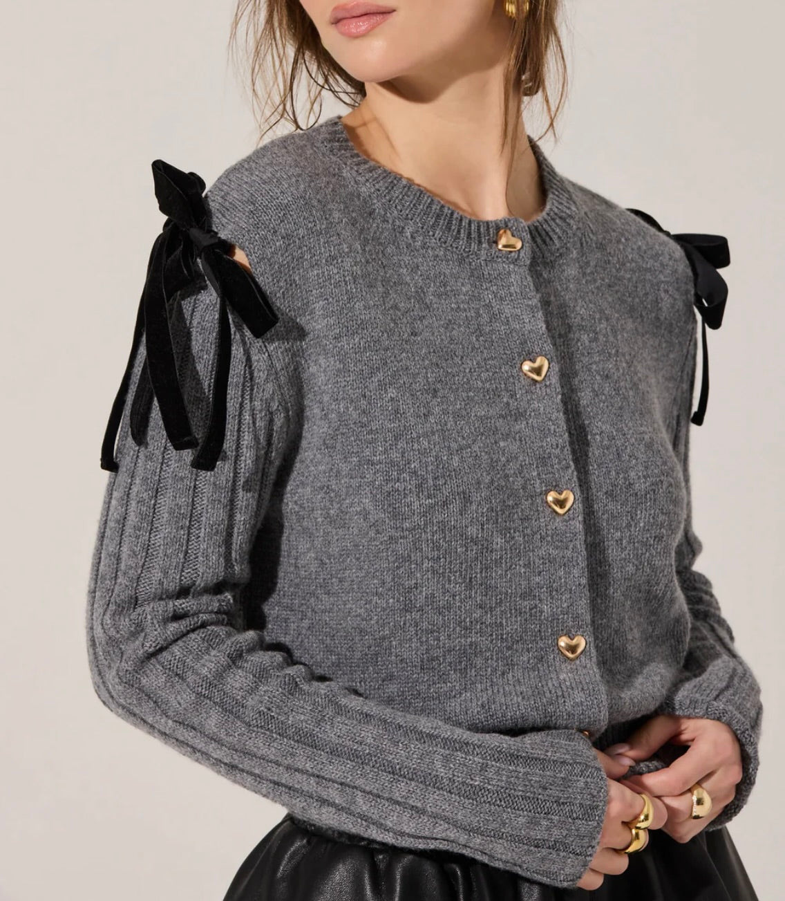 Dream Catcher Remy Rhinestone Embroidered Cardigan in Grey