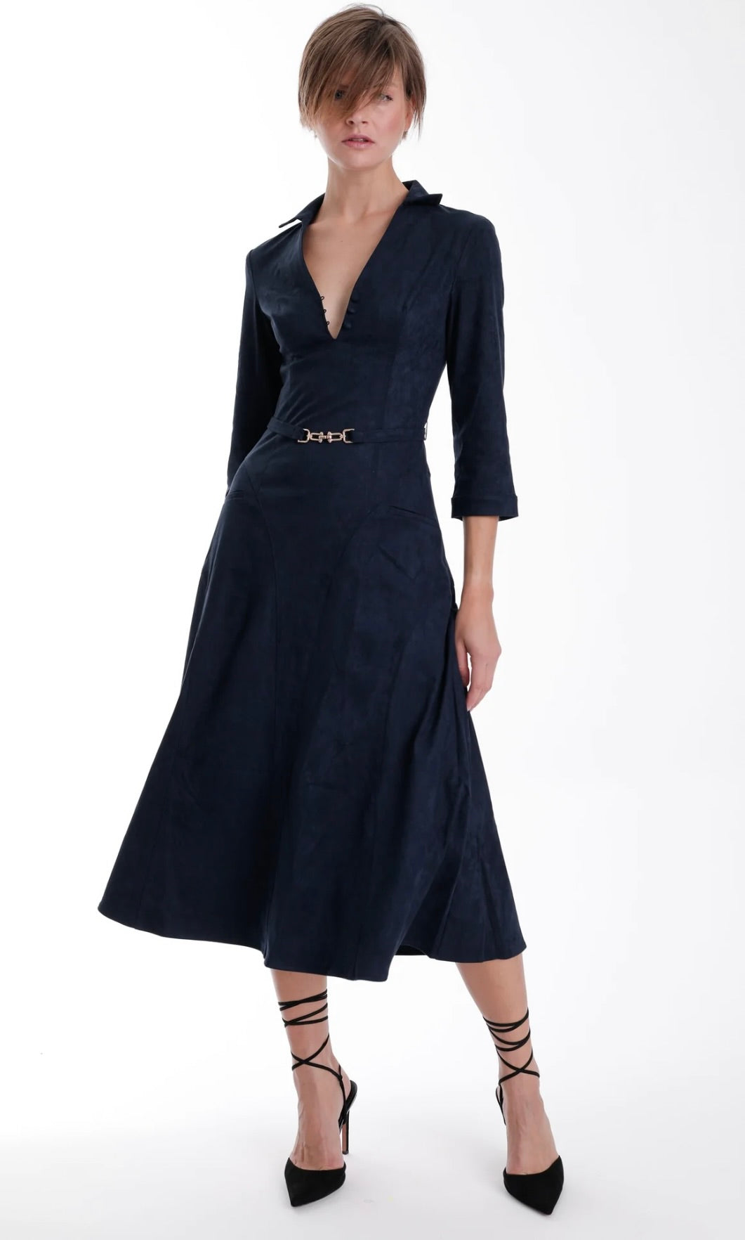This elegant suede maxi dress combines understated luxury with flattering design, featuring a sleek silhouette that gracefully contours the body. Rendered in buttery-soft suede, it strikes the perfect balance between refined comfort and polished style, making it an ideal choice for occasions spanning from daytime gatherings to evening affairs.