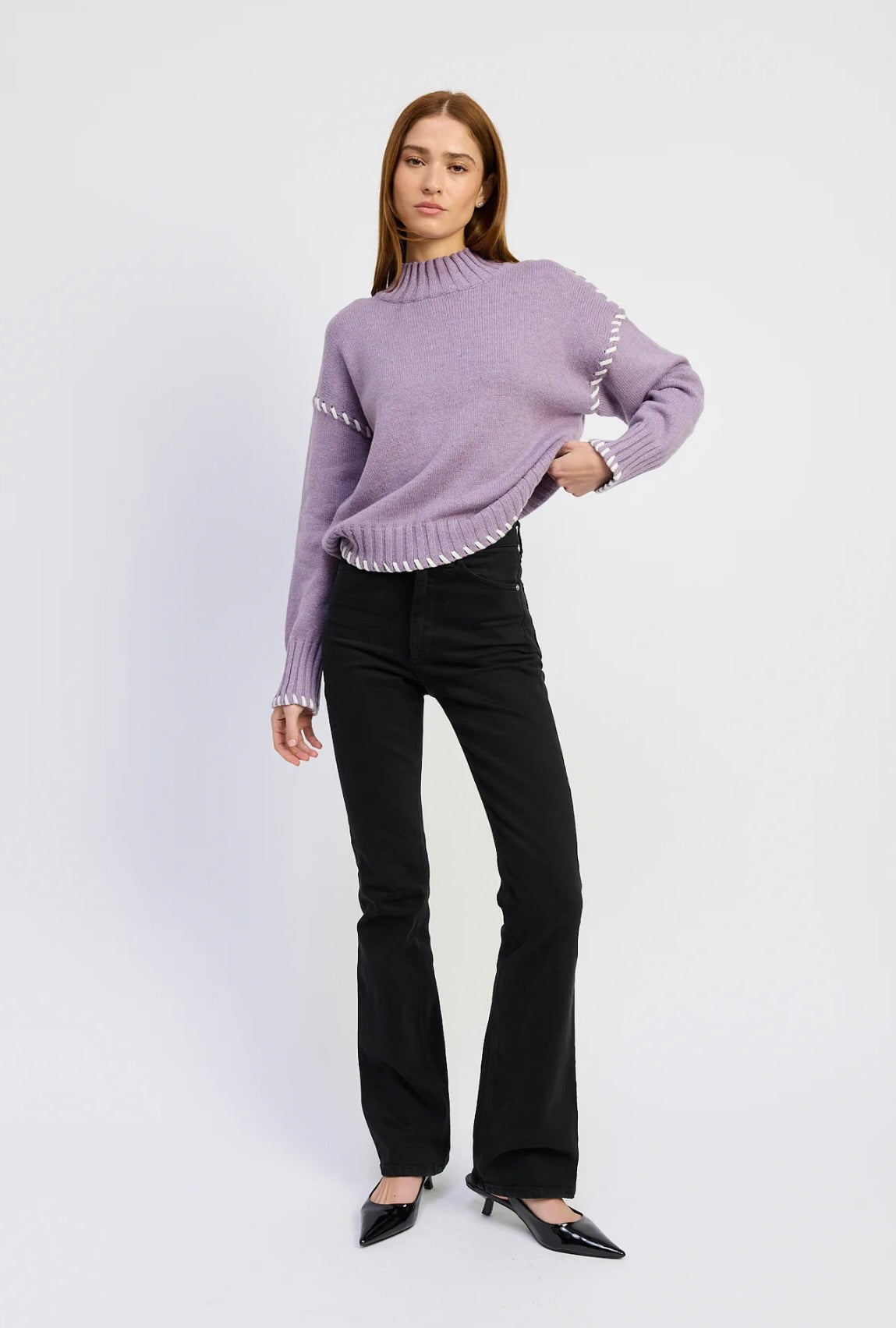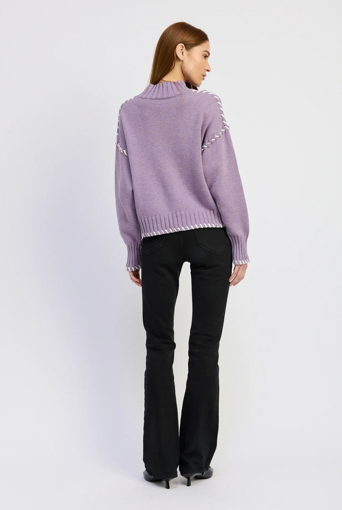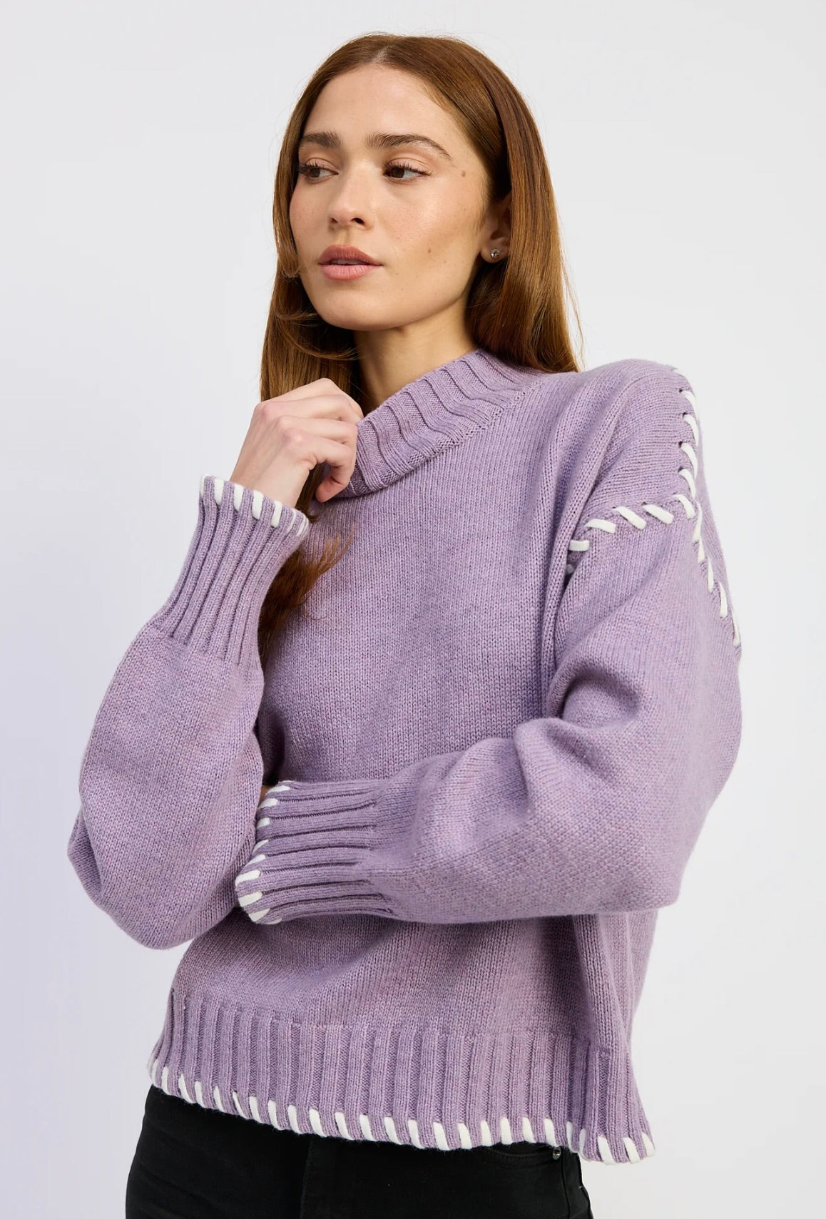 The En Saison Merrill Whip Stitch Sweater combines artisanal craftsmanship with modern comfort. Featuring distinctive whip stitch detailing and a funnel neck, this cozy sweater is crafted for versatility.