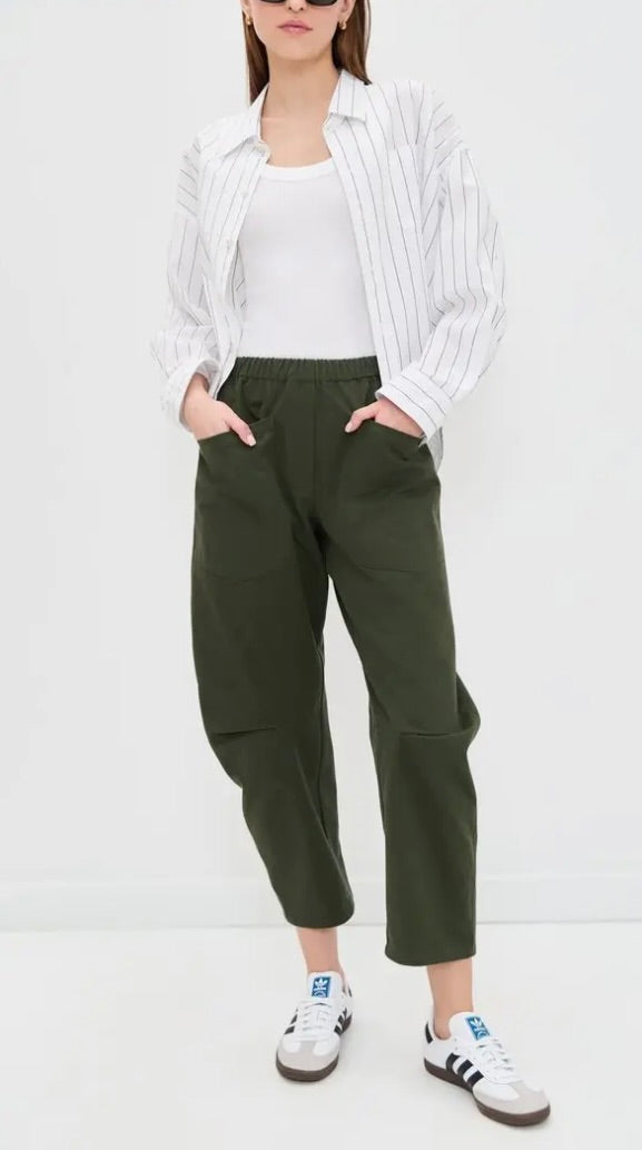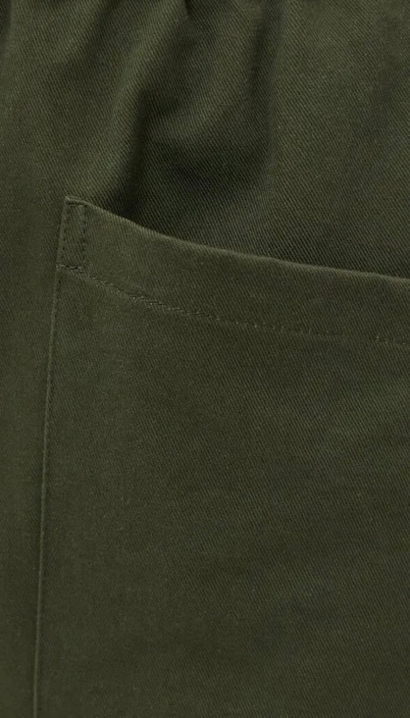 Crafted from durable mid-weight twill that moves with you, the Travis Pant delivers timeless style without compromise. They feature a covered elastic waistband, ensuring all-day comfort and functional patch pockets. A versatile olive green hue pairs effortlessly with any wardrobe, making this a go-to piece for elevated everyday wear.