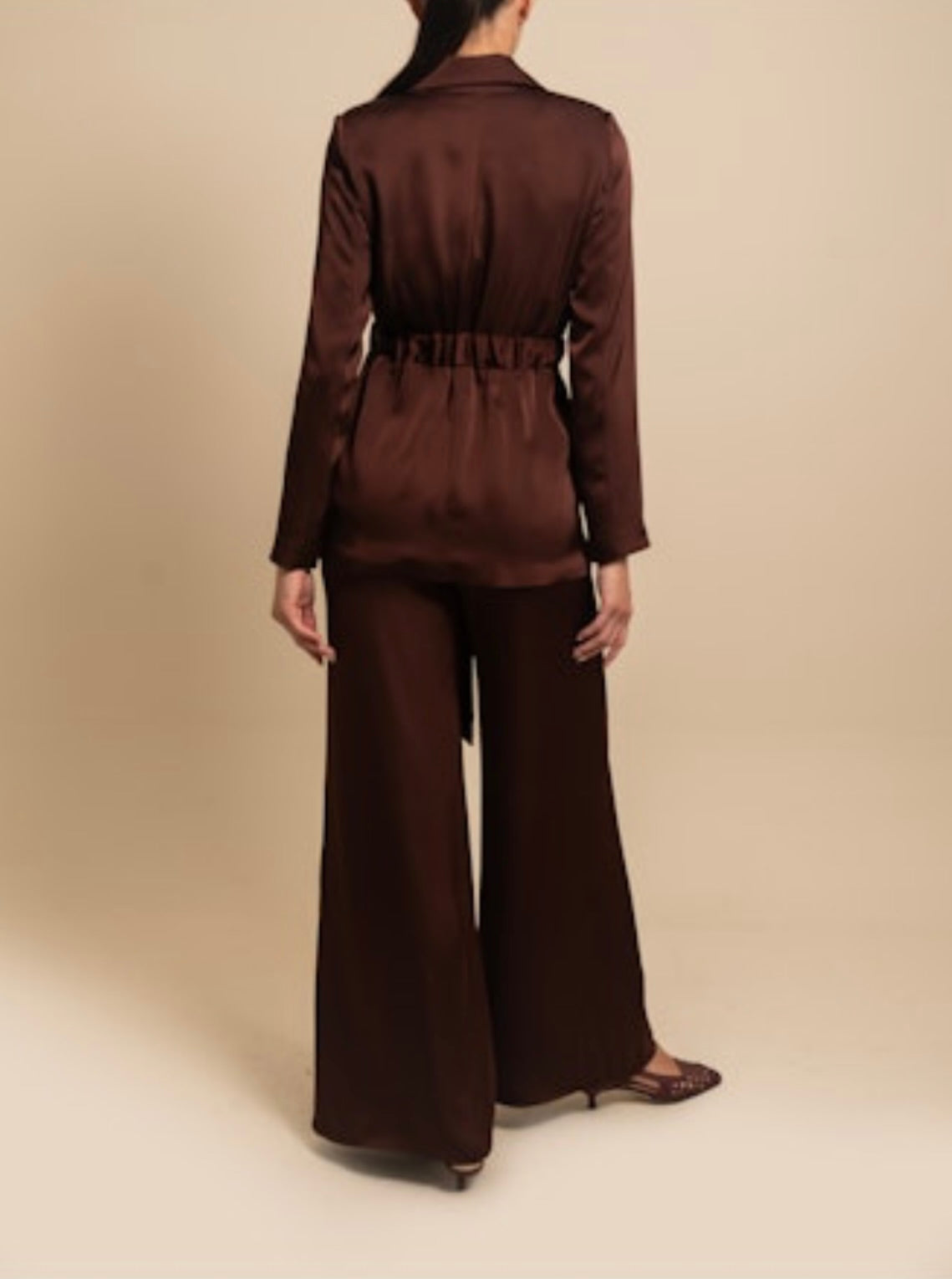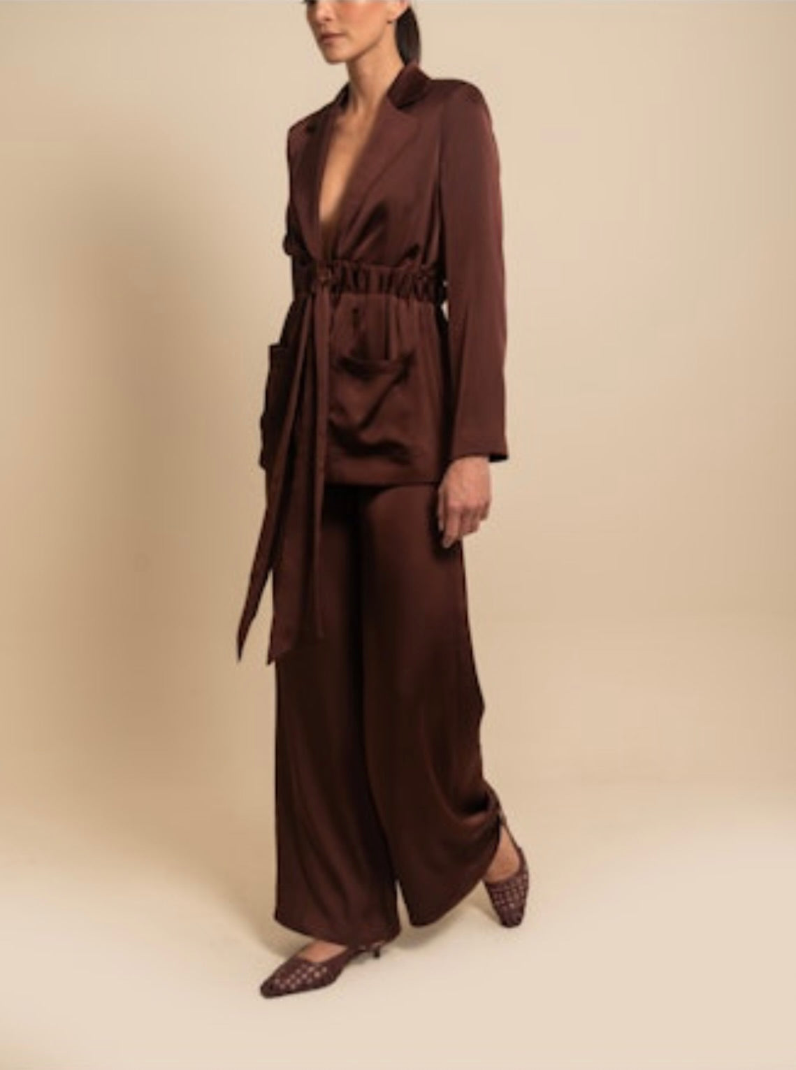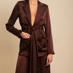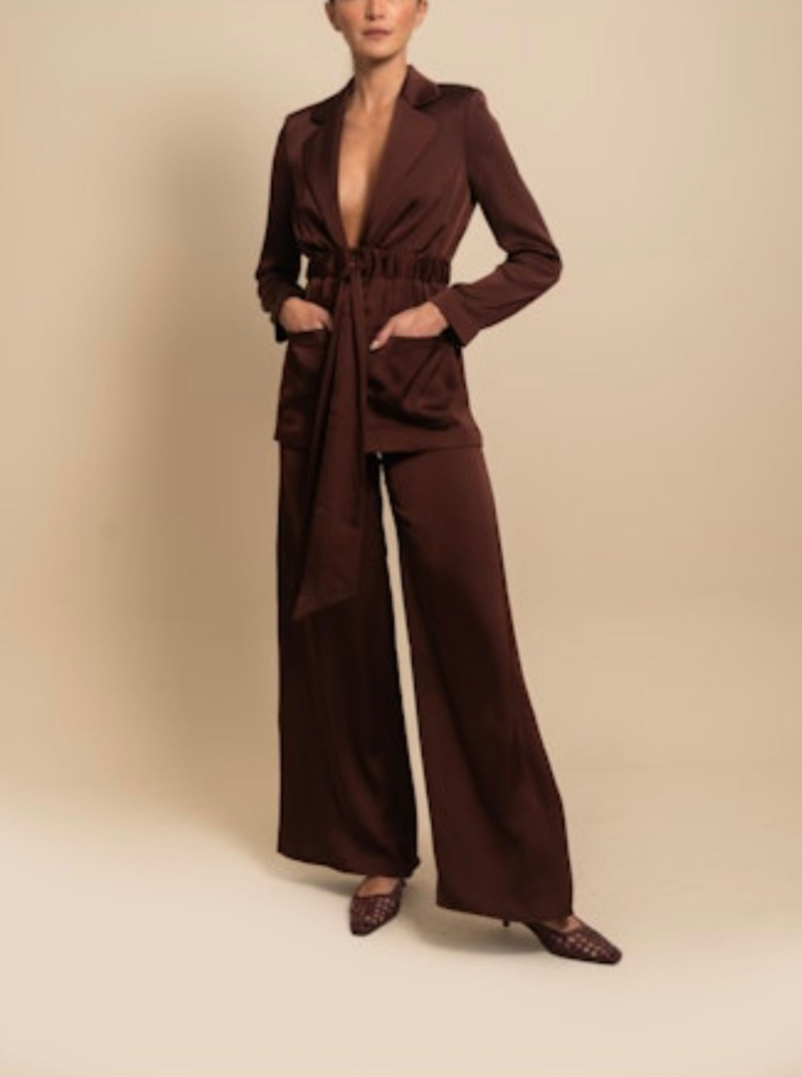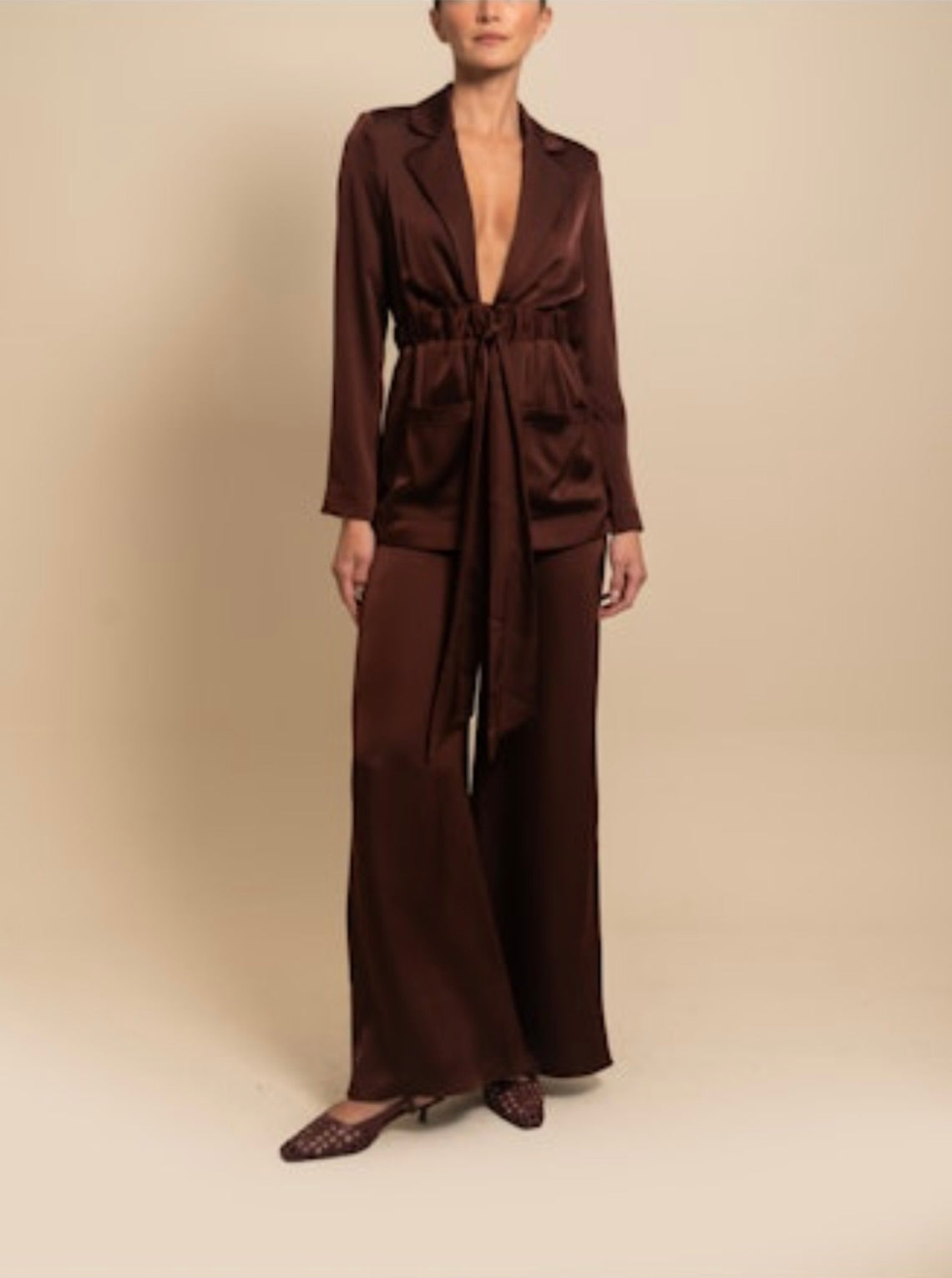 The Azulu Marie Jacket is a luxury evening blazer that combines elegance with comfort. Featuring a flattering elastic front tie waist, it enhances your figure while offering a sleek, modern silhouette. Perfect for day-to-night, this jacket adds a refined touch to any outfit.