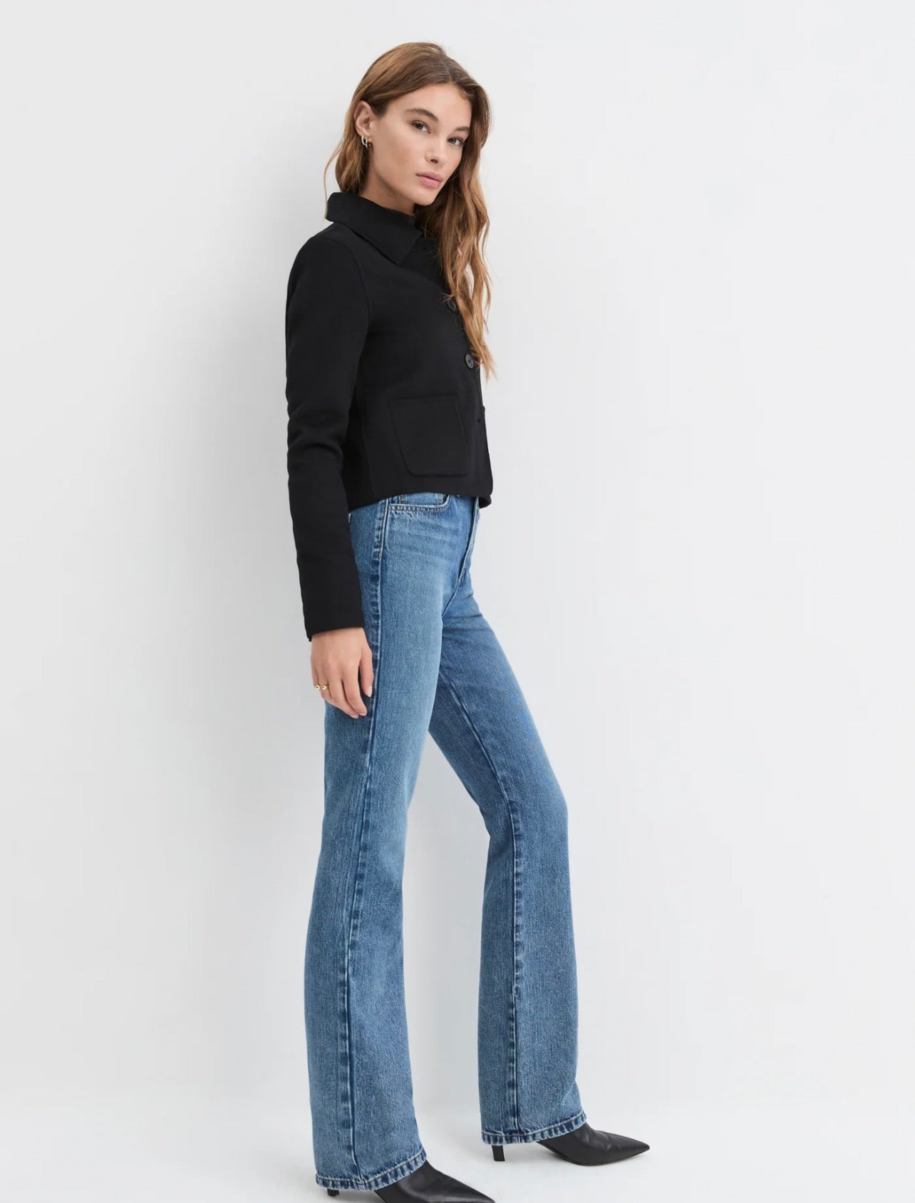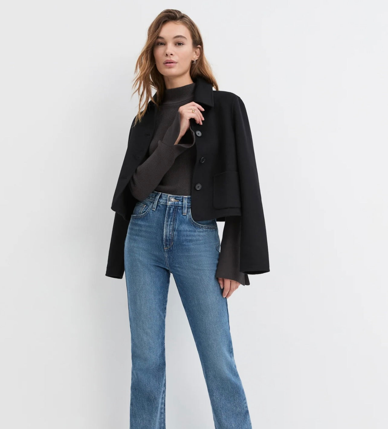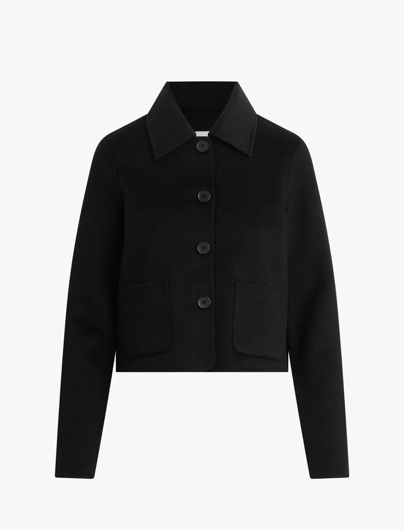 Tailored for modern wardrobes, The Annabel Wool Jacket offers a refined take on casual outerwear. The cropped, boxy cut provides a contemporary silhouette while double-faced wool ensures substantial warmth without excess weight.  At 21.5" long, it settles gracefully above the hip, making it an ideal layering piece or standalone statement.