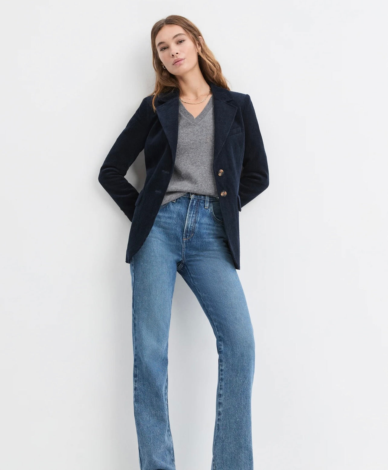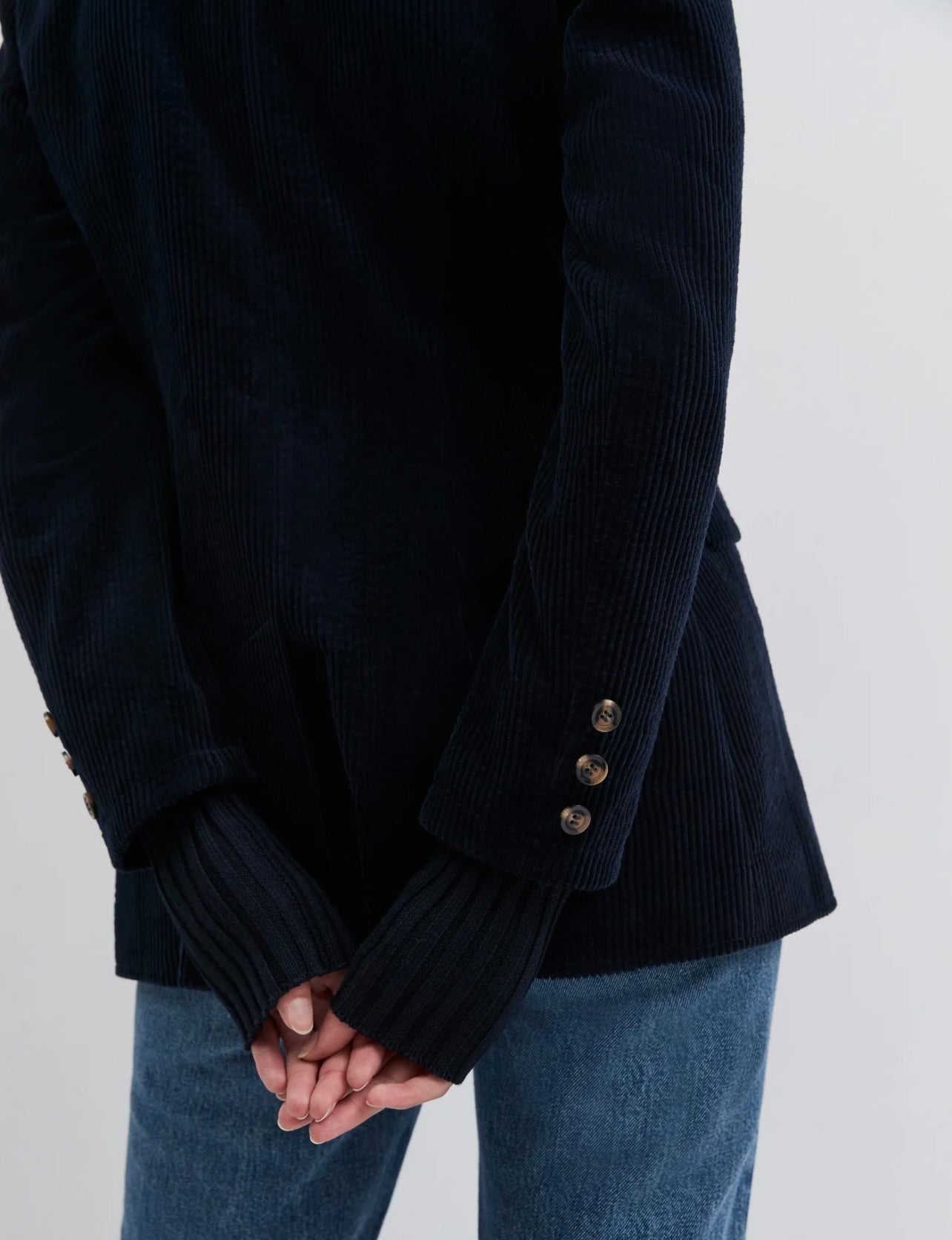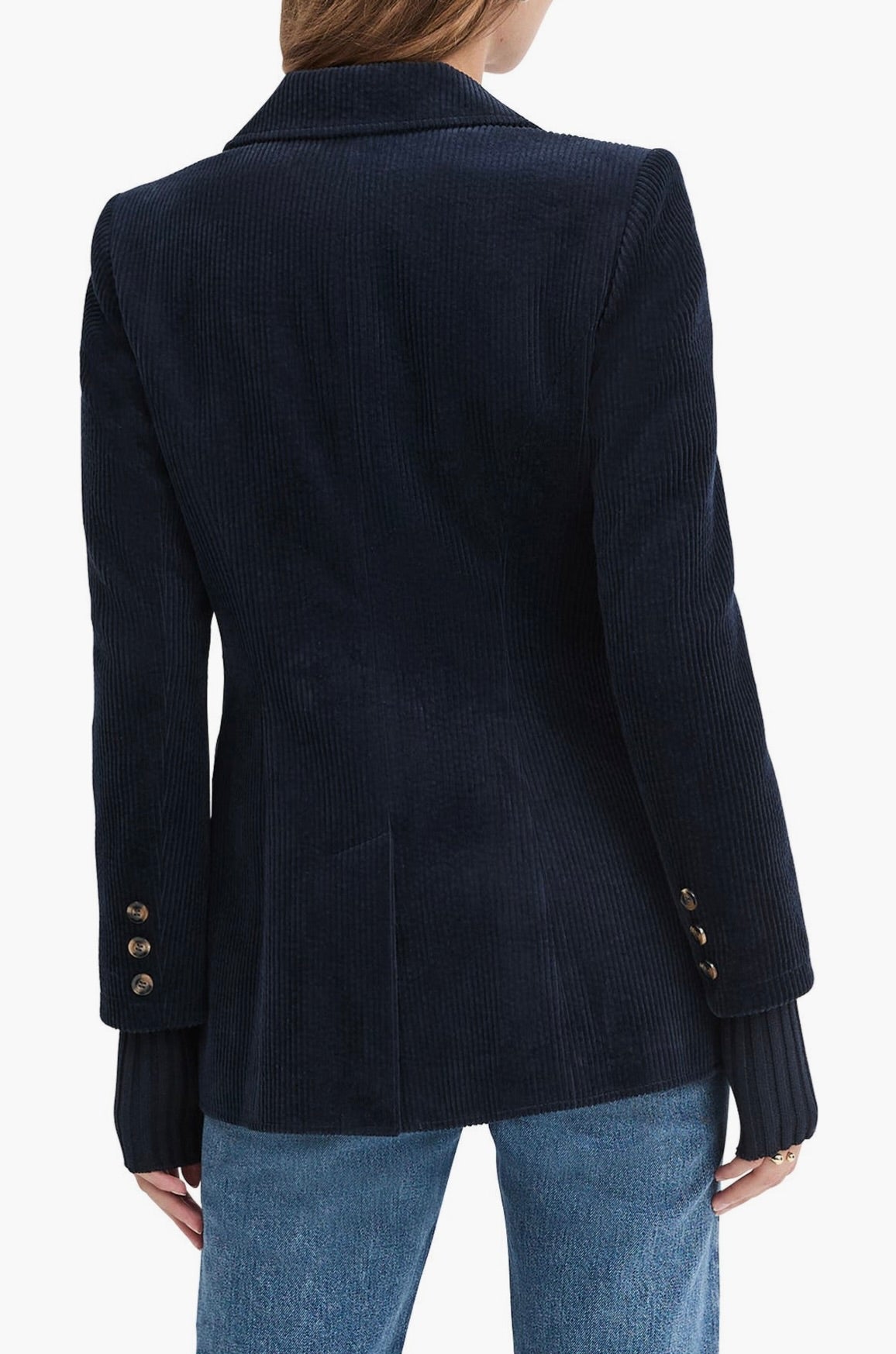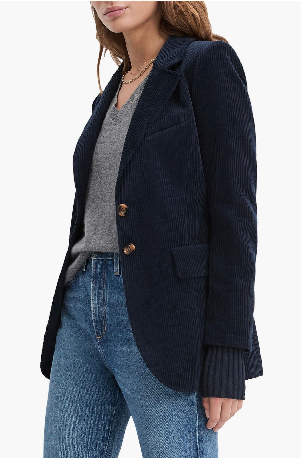 Transform your everyday commute into a fashion moment with this slim-fit wide-wale corduroy blazer. Crafted with faux horn buttons and refined stitching details, it's designed for those who see the city streets as their personal runway. The standout feature? Luxurious cotton-cashmere ribbed cuffs that elevate every gesture, turning a simple walk to work into an effortless style statement.