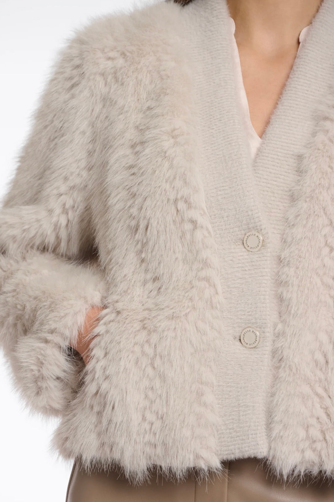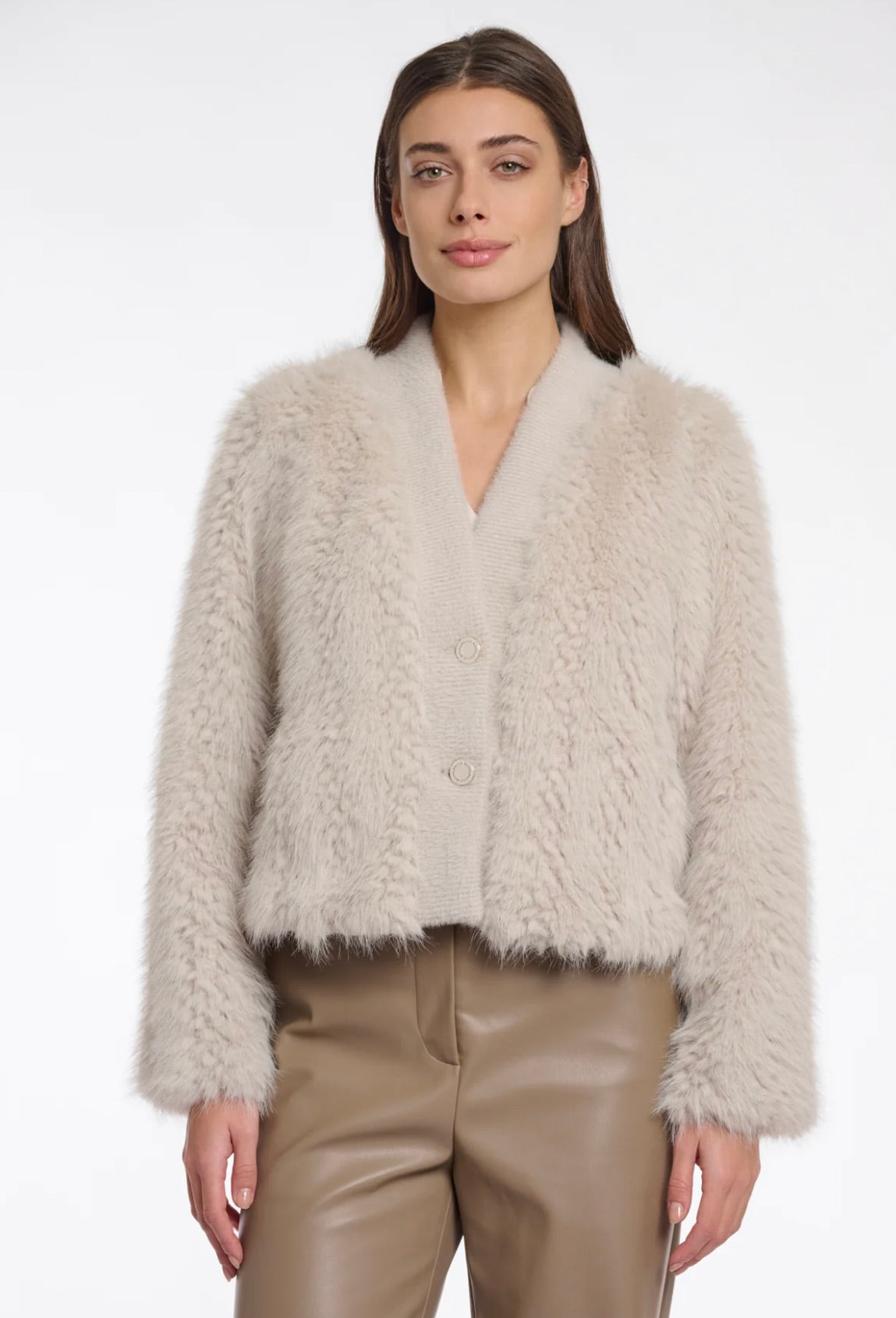 Experience sophisticated warmth with the Rino & Pelle Chaimae Jacket. Crafted from plush faux fur complemented by a contrasting knitted front, it offers a refined texture and cozy feel. Featuring a classic button closure and convenient side slit pockets, this jacket seamlessly combines elegance with practicality. Ideal for elevating any outfit, it ensures you stay stylish and comfortable throughout the season.