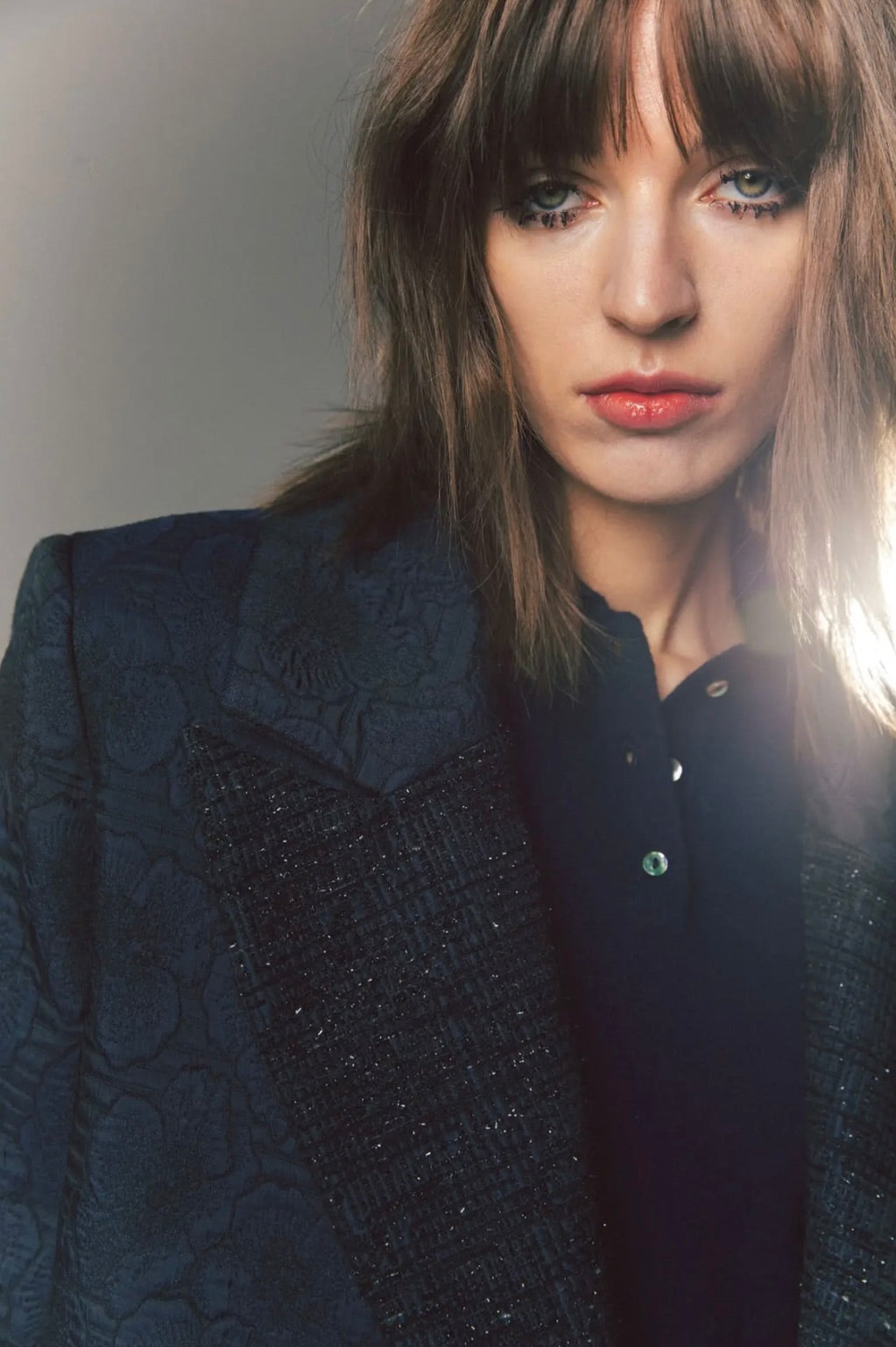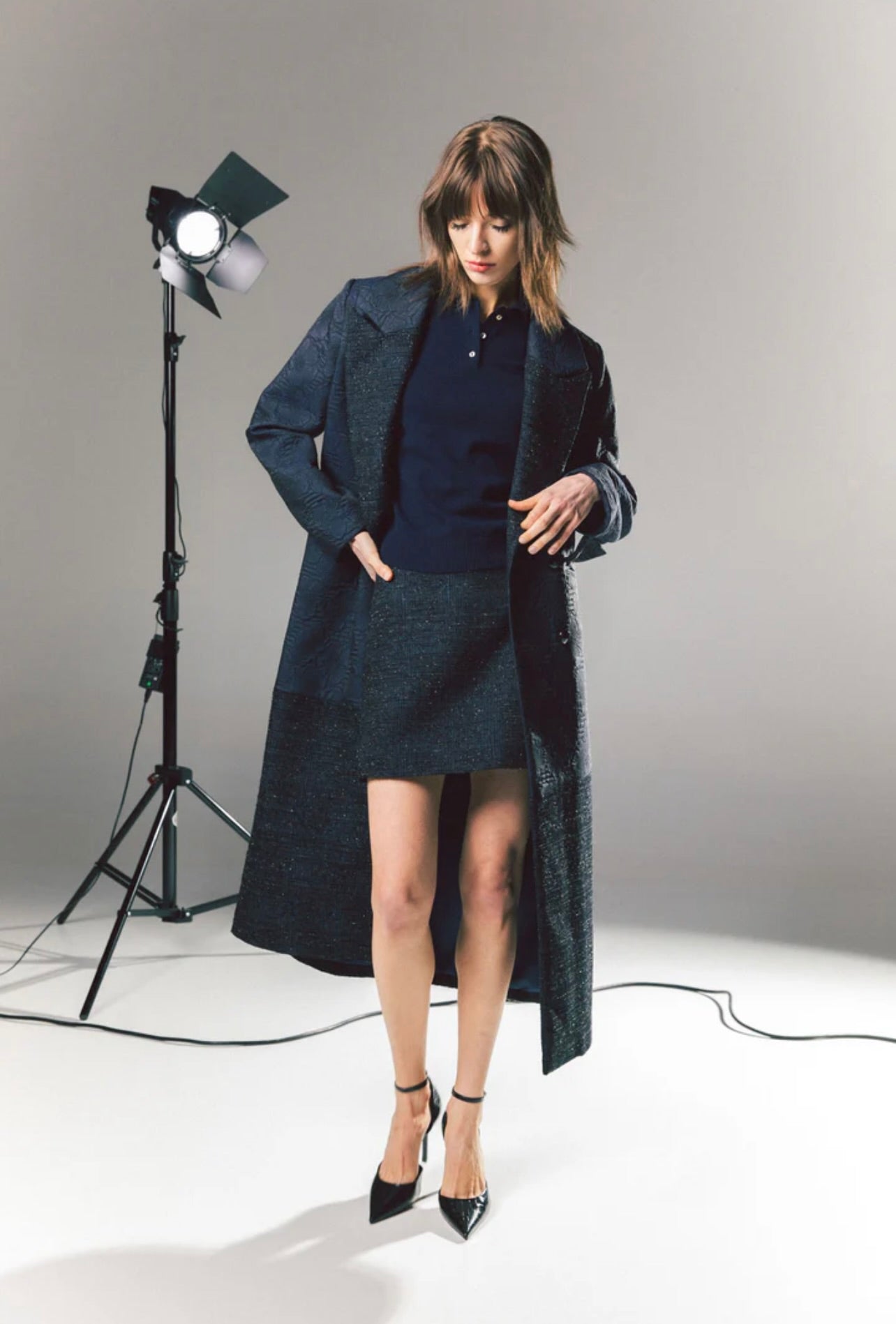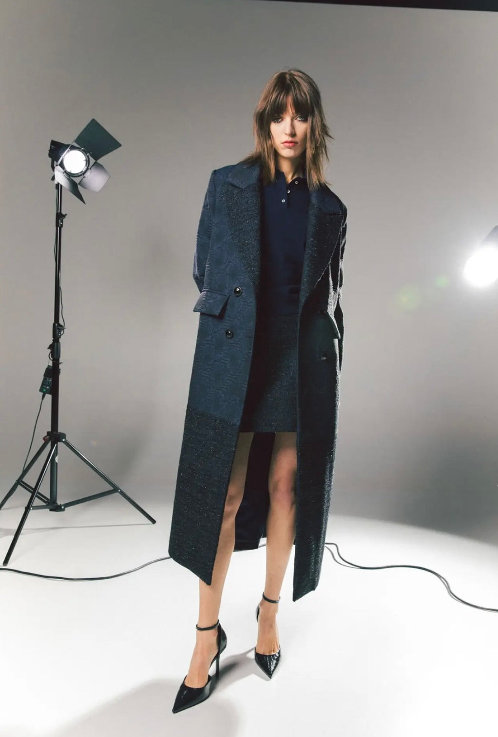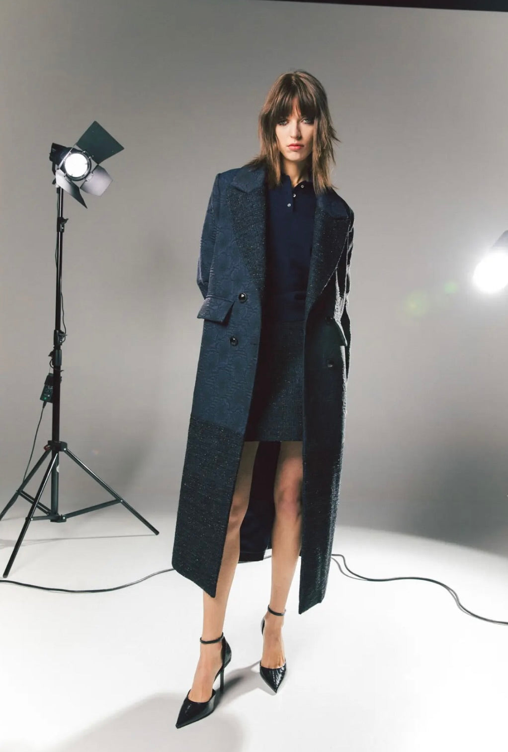 The Simona Bonacci Jacquard and Glitter Coat is a luxurious Italian pea coat featuring stunning floral jacquard fabric enhanced by shimmering tweed details. This elegant piece combines classic tailoring with refined textures, offering both warmth and a distinctive, sophisticated style ideal for elevating any wardrobe during cooler seasons.