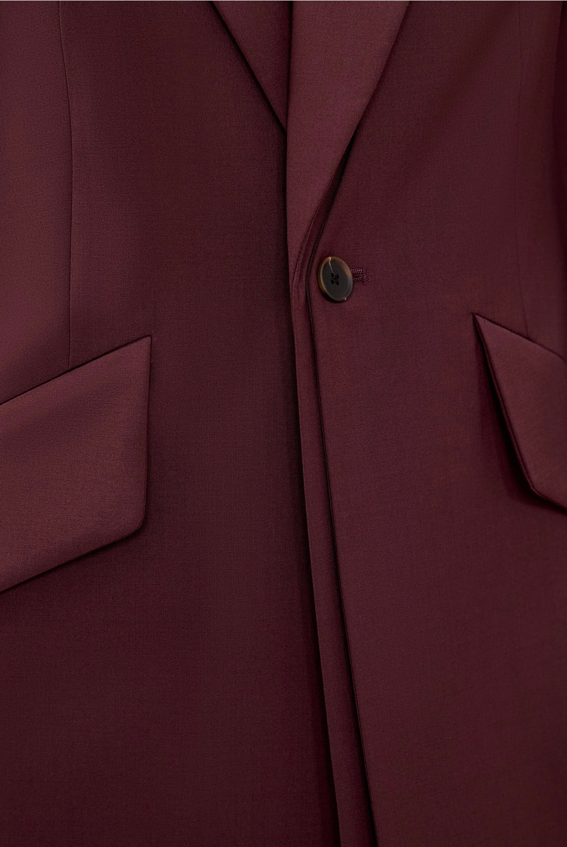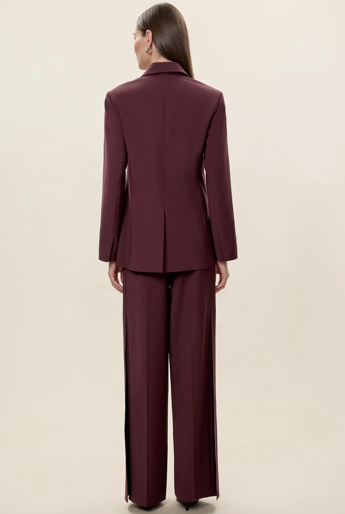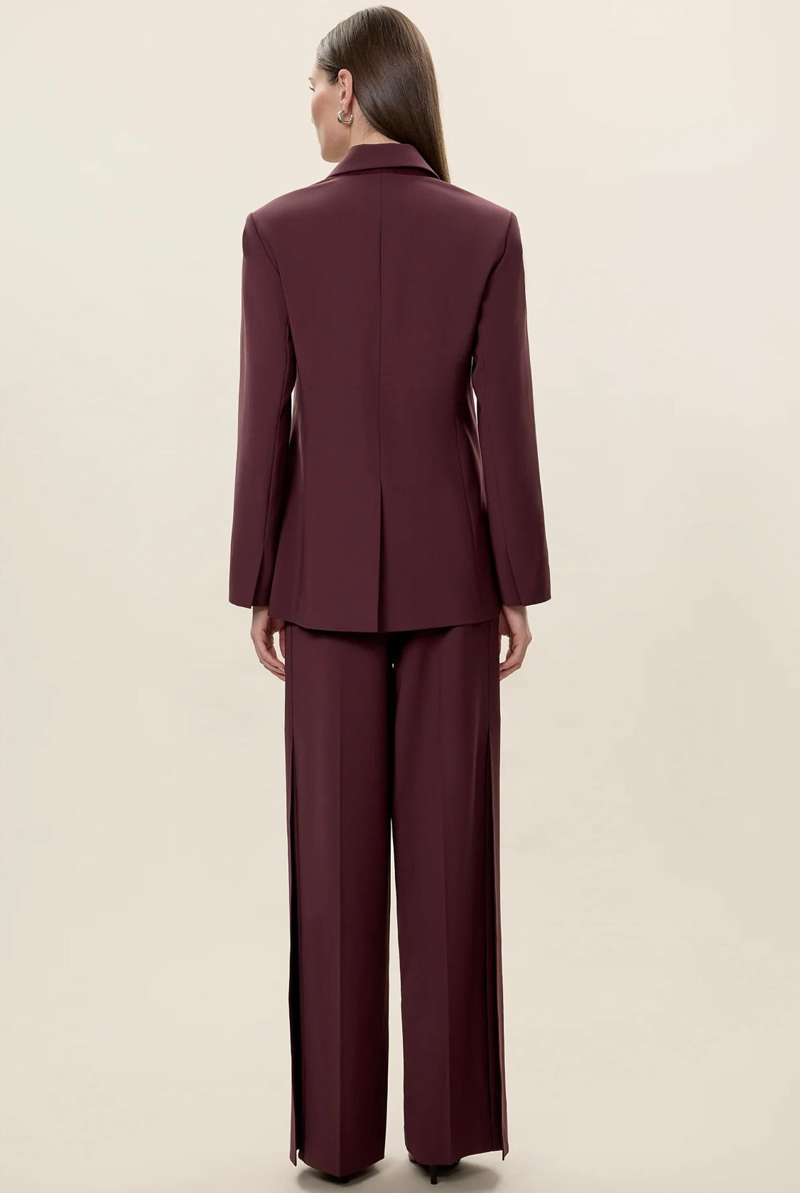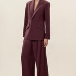 The Stevie Blazer in Plum presents a sophisticated wool blend design with refined tailoring, featuring an elegant button-front closure and functional pockets. Its rich plum shade offers jewel-toned elegance, while the added stretch ensures comfortable wear. This polished blazer embodies professional grace with a luxurious fabric blend and timeless silhouette, perfect for elevating any wardrobe with classic style and modern comfort.