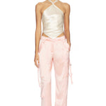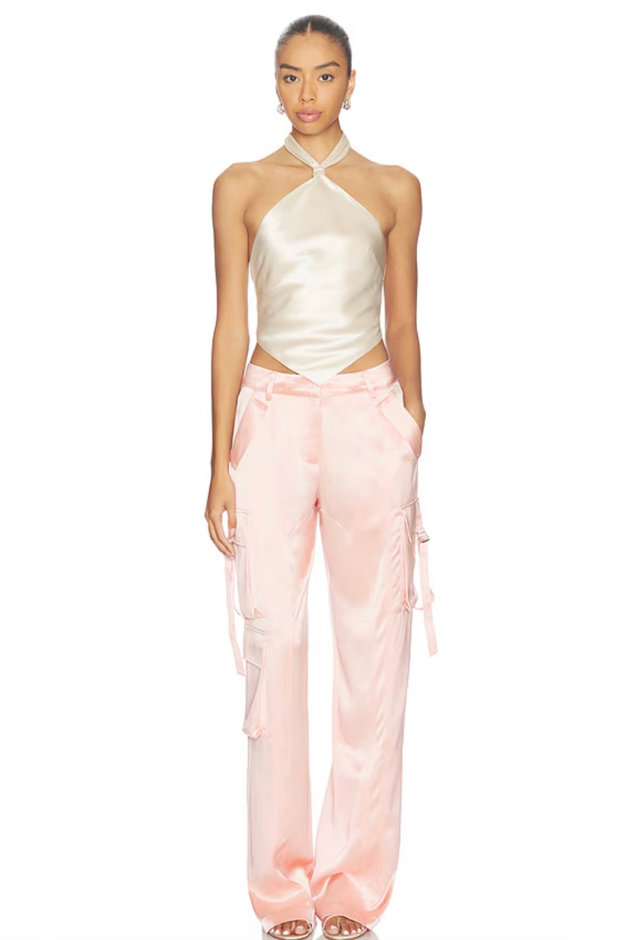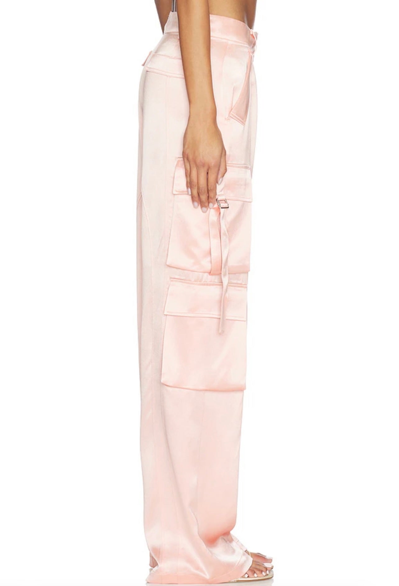 The Retrofete André Pants offer a sophisticated update to the classic cargo style, crafted in a silky fabric that elevates its utilitarian design. Featuring side pockets and a wide-leg silhouette, they provide effortless elegance for evening occasions. Pair with the Marzia Top to complete a polished co-ord ensemble. Available here in Ballet Slipper, these pants combine comfort with refined glamour.