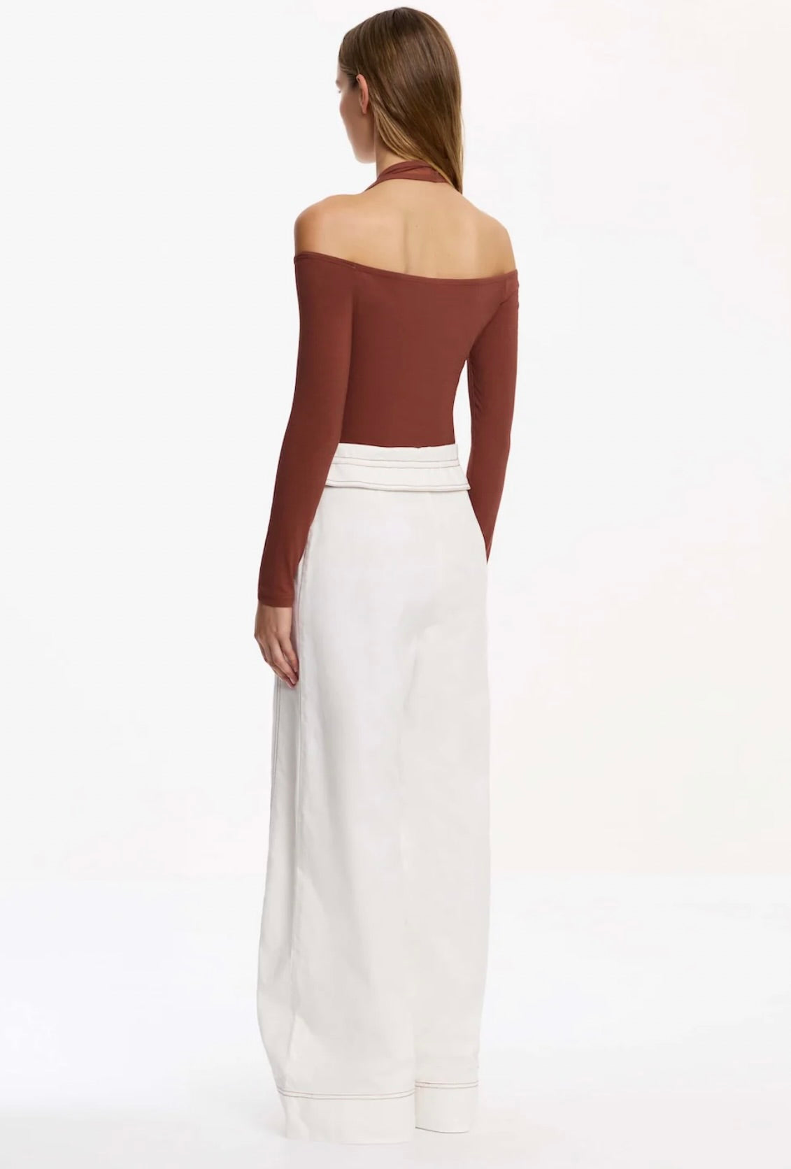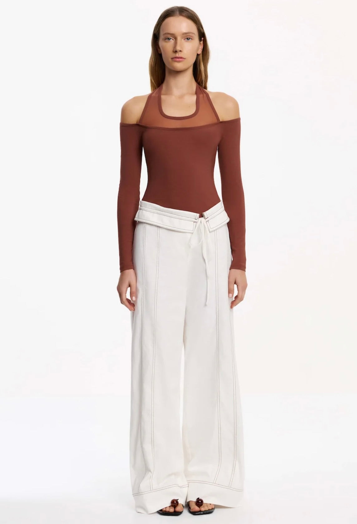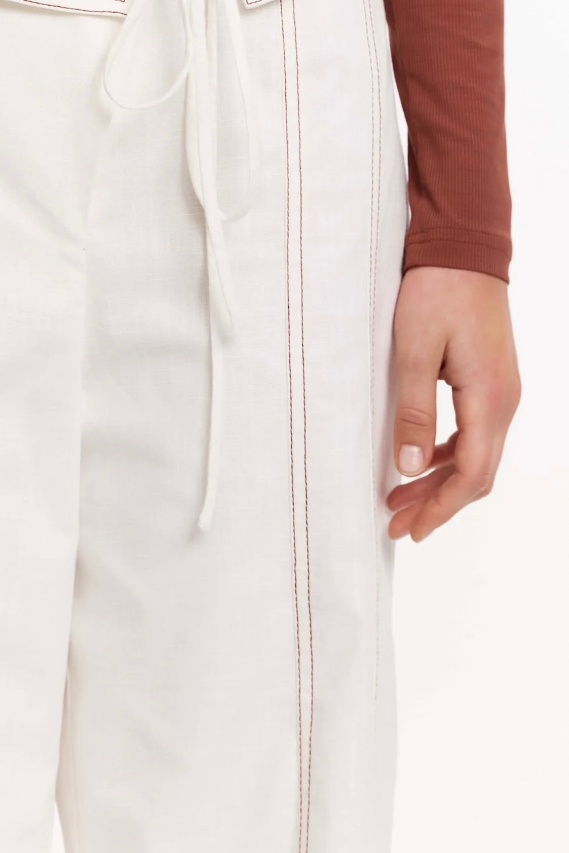 The Zuri Pant in Ivory transforms casual dressing through considered design. Constructed from textured woven cotton with full lining for enduring structure, this fisherman-inspired pant features an innovative foldover waist panel paired with an adjustable tie for personalized fit. Precise topstitching and finished hems create a contemporary silhouette that bridges relaxed comfort and refined tailoring—the ideal foundation for curated, elevated everyday looks.