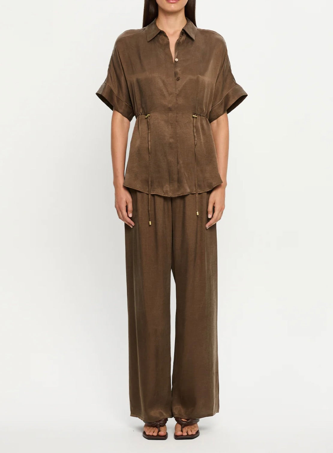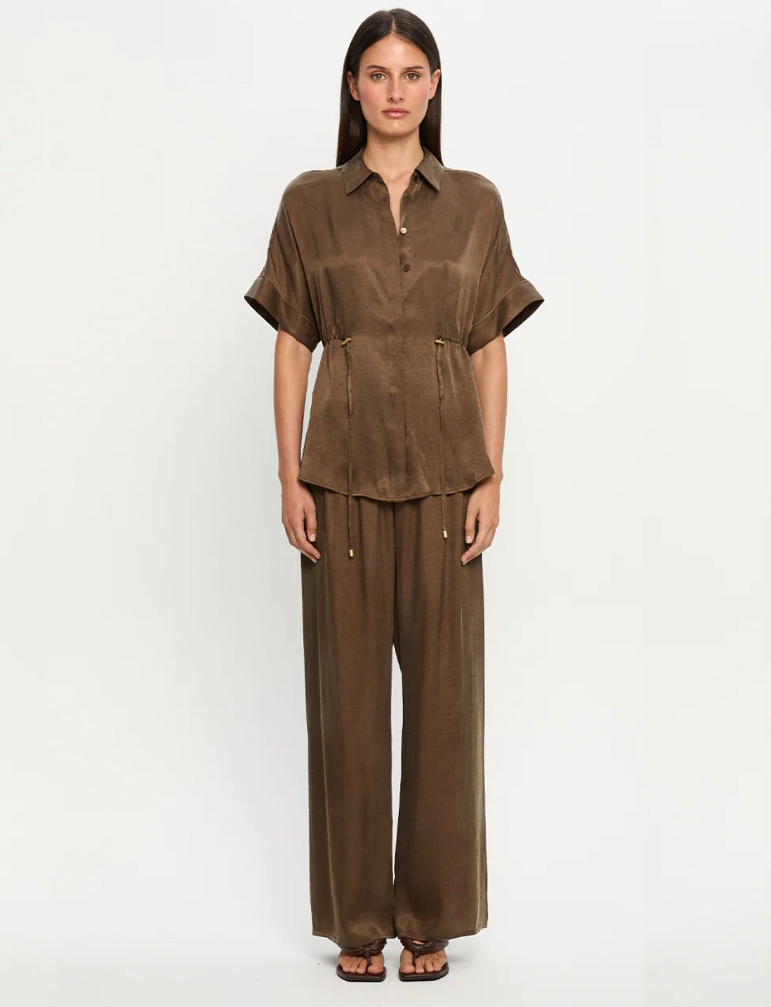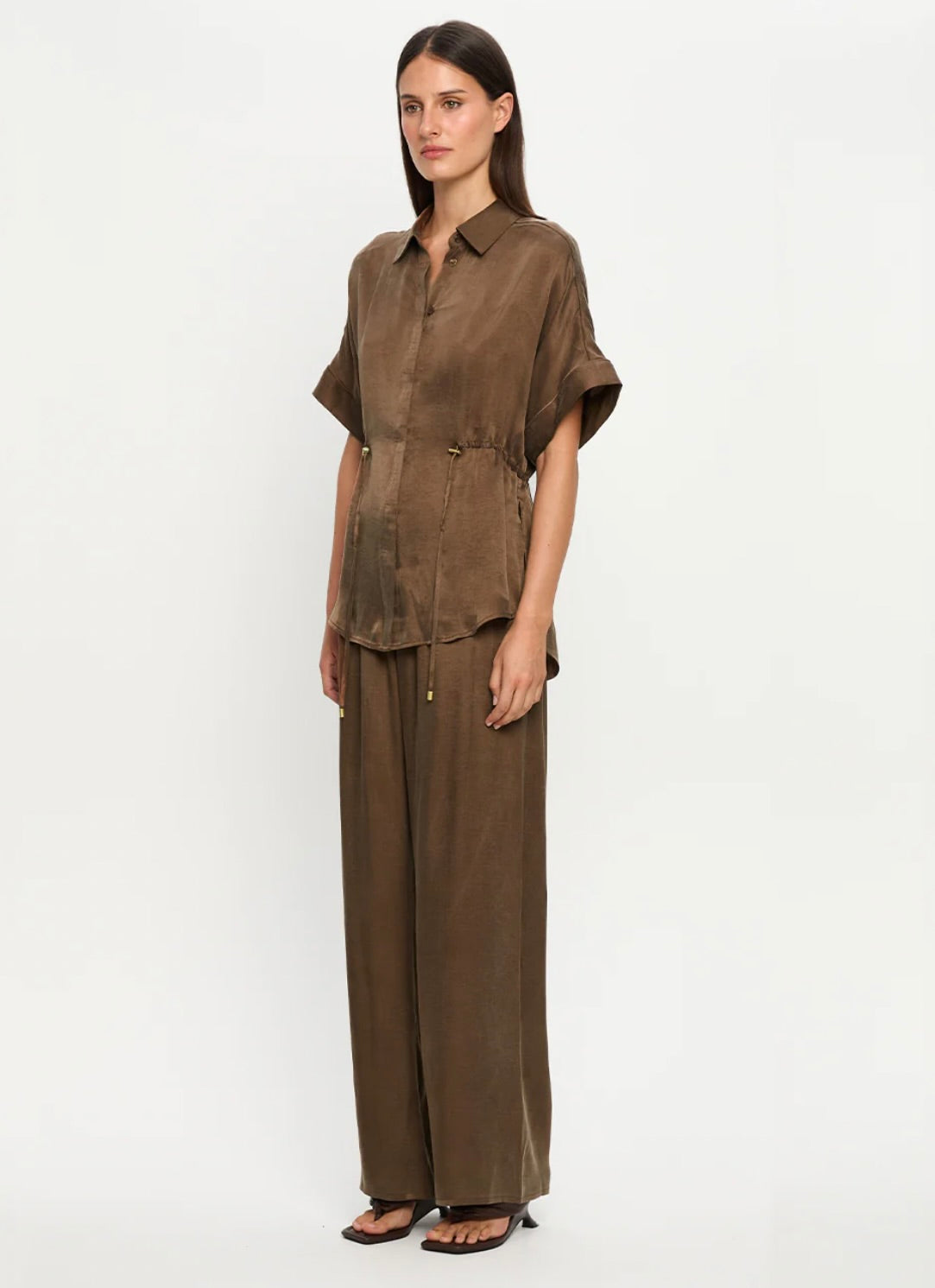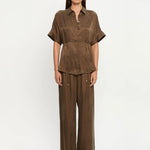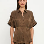 The Kivari Jaxon Shirt in mocha offers a sophisticated, relaxed fit with short sleeves and adjustable drawcords at the waist for a tailored silhouette. Its clean design is enhanced by a concealed button-down front, combining effortless style with subtle detailing for a refined yet comfortable look. Pair it with the matching Jaxon Pant for a coordinated look.