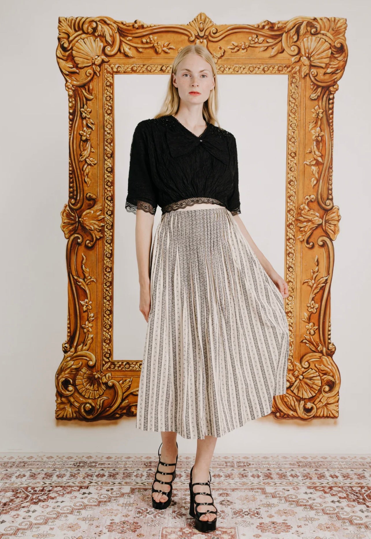 ASTR The Label Deaile Contrast Layered Pleated Skirt