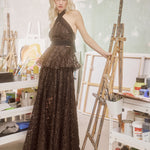 The Lace the Label Amaryllis Maxi Skirt features exquisite bronze floral lace, offering a luxurious and elegant statement. Designed to complement the Lace the Label Aithra top flawlessly, this skirt creates a sophisticated and cohesive look perfect for formal events or refined occasions. Its delicate lace pattern adds a timeless touch of femininity.