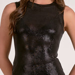 Crafted for versatility, this piece transitions seamlessly from solo wear to layered styling under jackets and structured blouses. Its strategic glitter detailing provides just the right amount of sparkle—refined rather than ostentatious—while the expertly tailored cut creates a flattering, polished look.