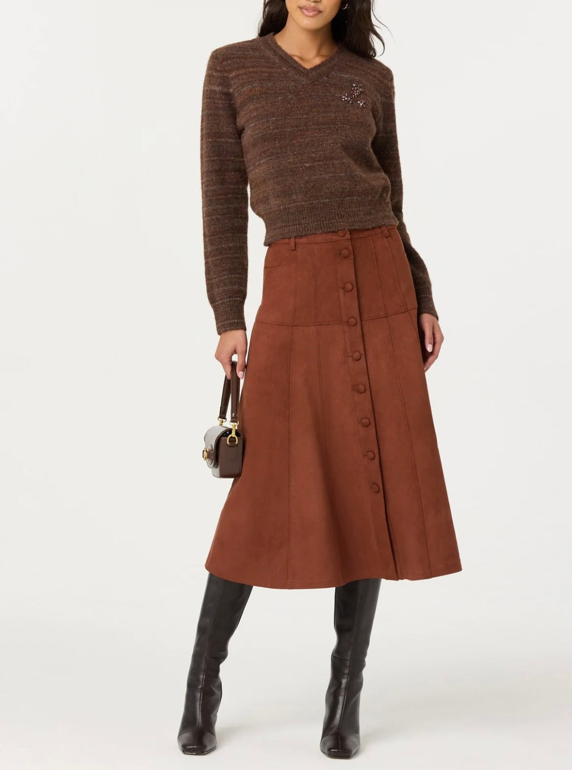This ASTR the Label v-neck sweater seamlessly transitions from office to evening with its refined silhouette and delicate floral embellishment. The understated embroidery adds a touch of elegance without overwhelming the design, making it perfect for both professional settings and special occasions. Crafted for comfort and style, this piece proves that versatility and sophistication go hand in hand.
