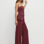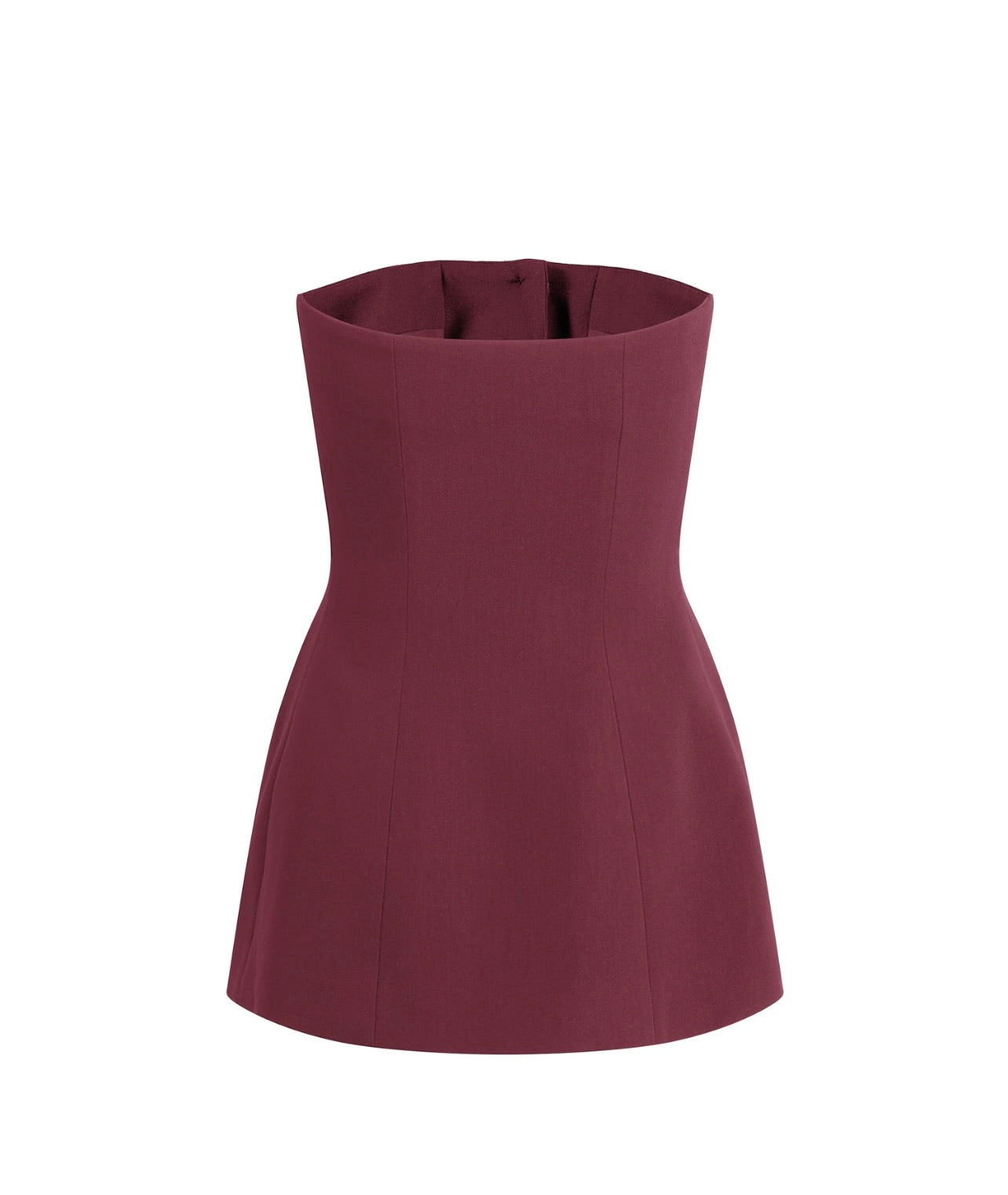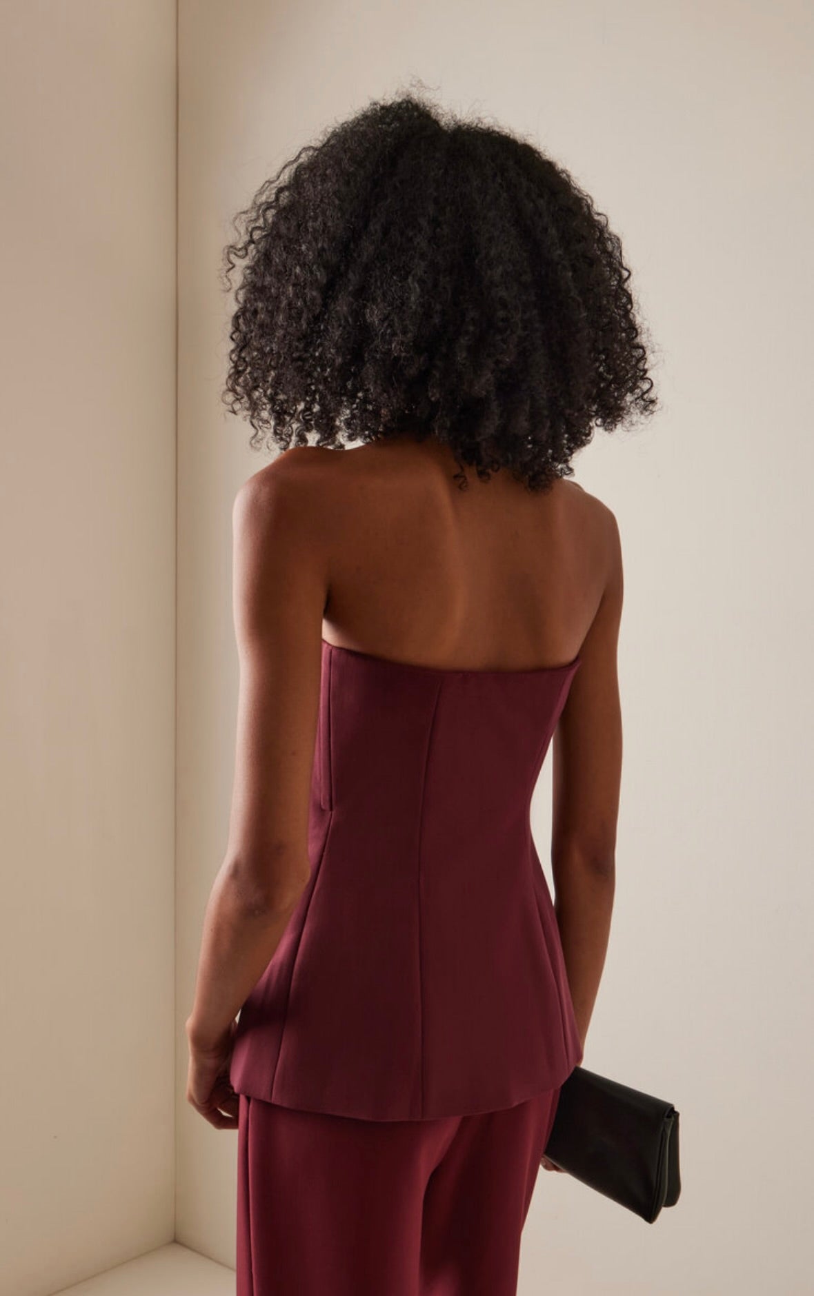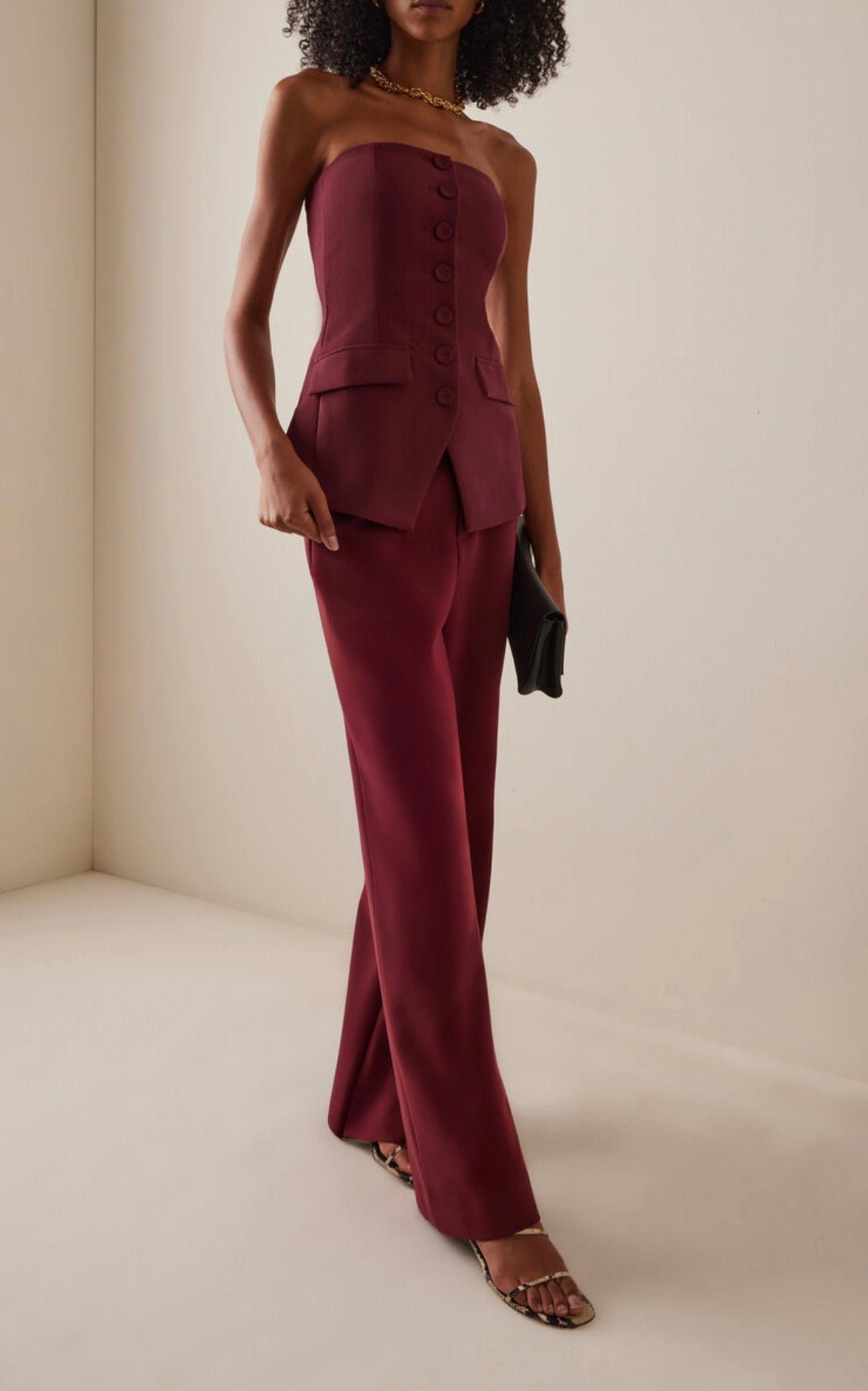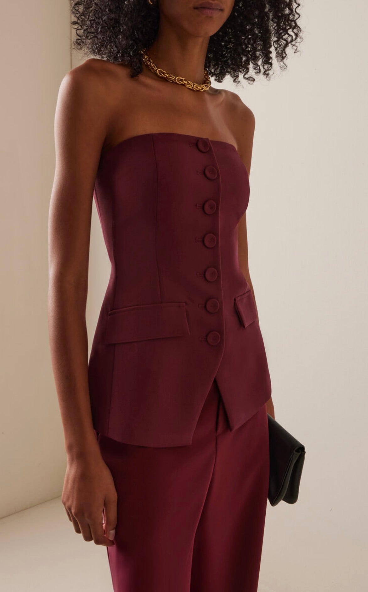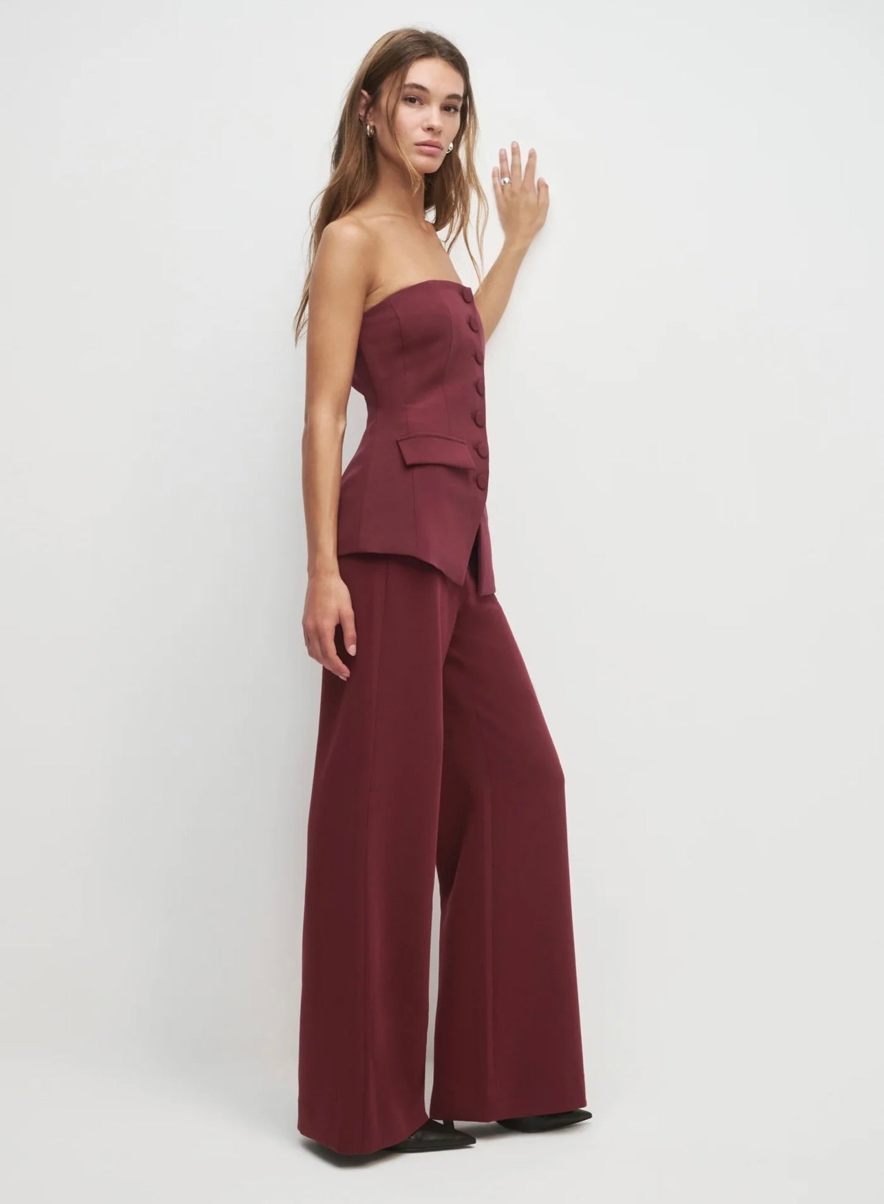 The Dream Phoebe Bustier channels tailored menswear with an unexpected twist. Crafted from a structured suiting blend in rich Vino, this piece features classic tailoring details—crisp front buttons, functional flap pockets, and a refined silhouette—balanced by a discreet elastic back for all-day comfort. Versatile and polished, it pairs effortlessly with denim for an elevated casual look or coordinates beautifully with The Jones Pant and Suits Your Blazer for a complete, cohesive ensemble.