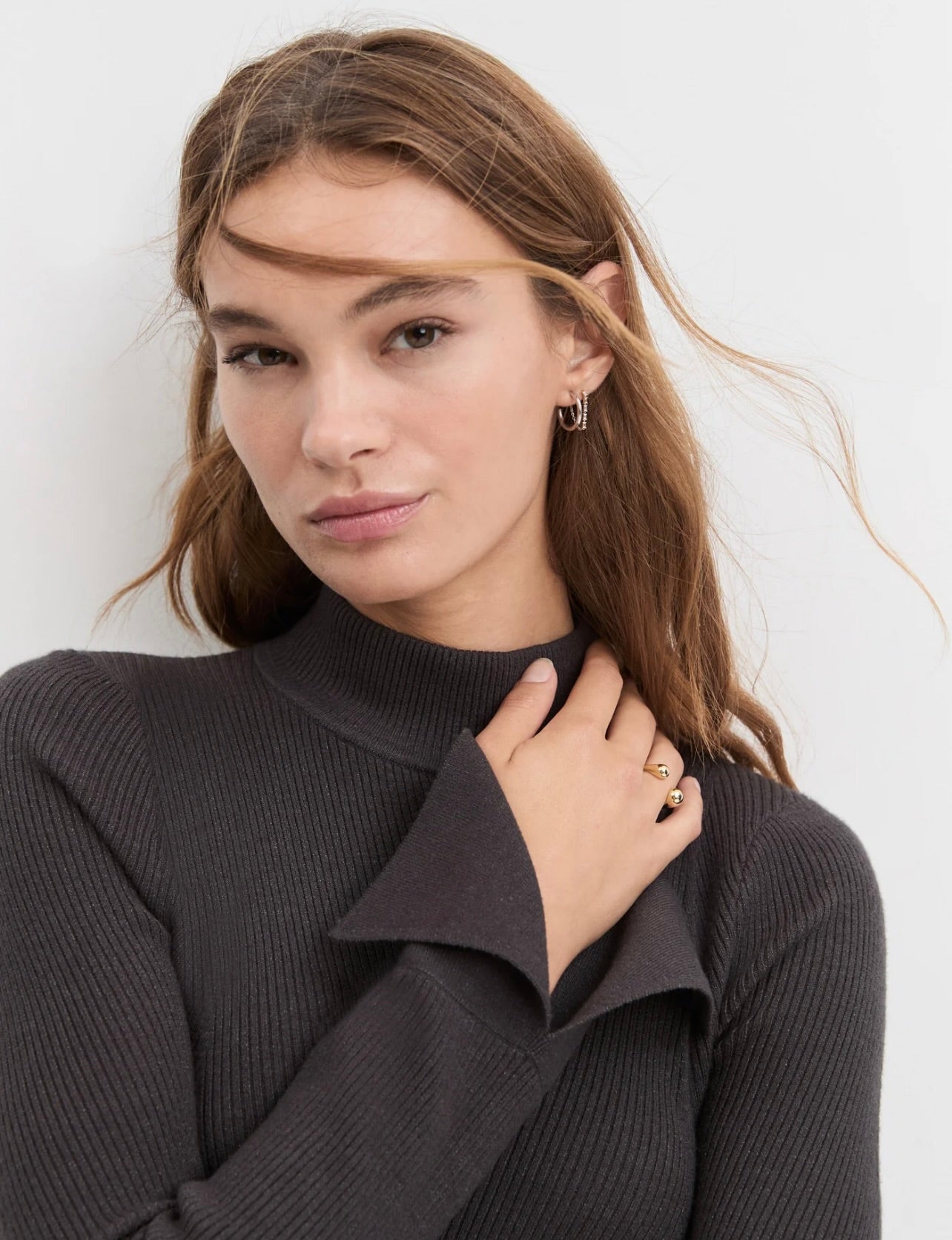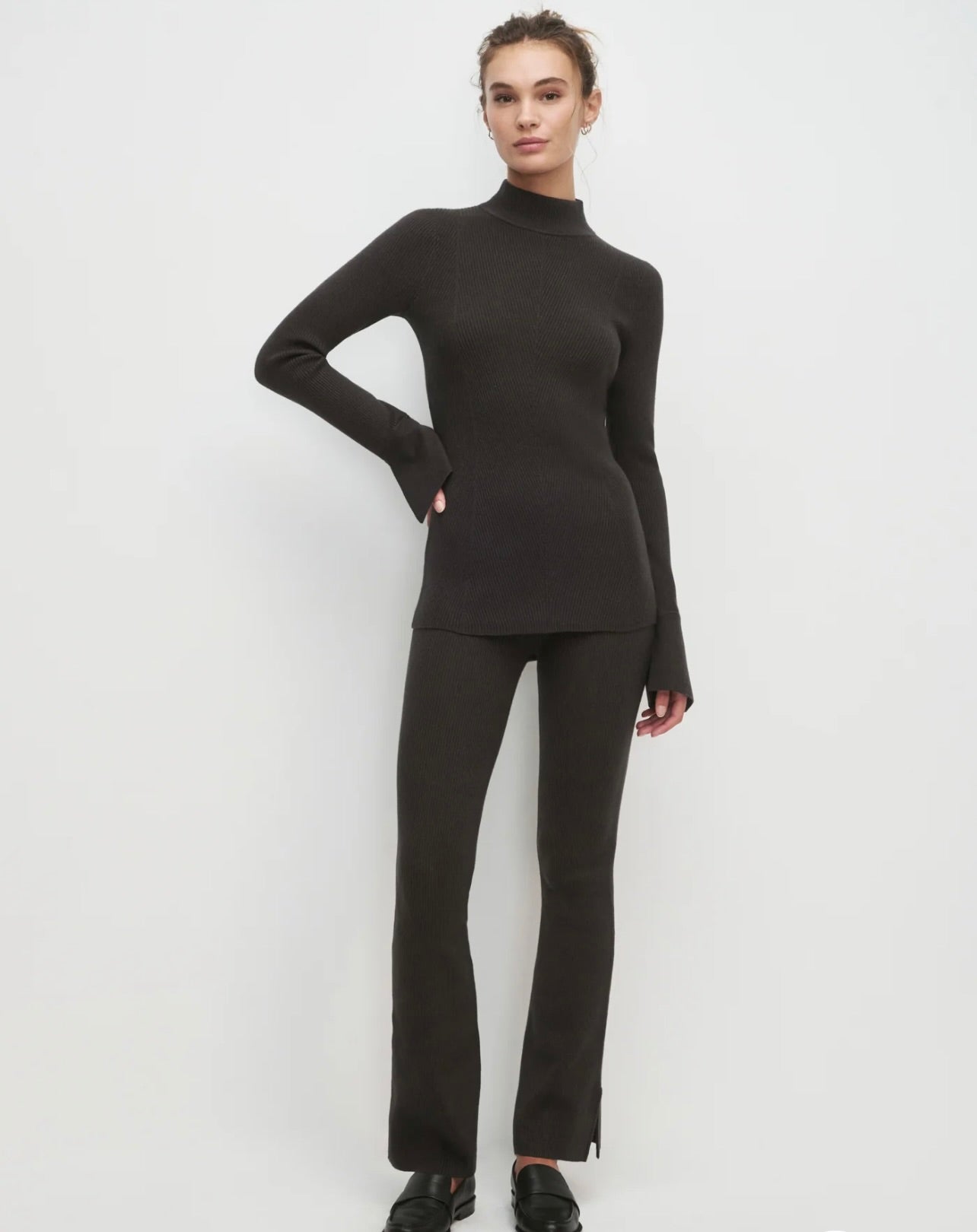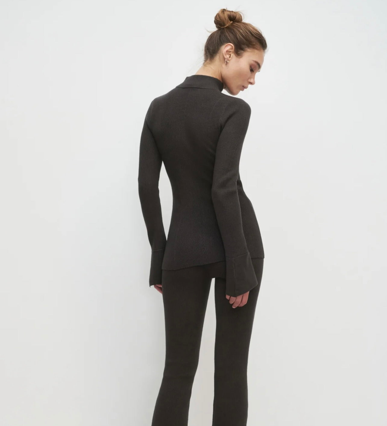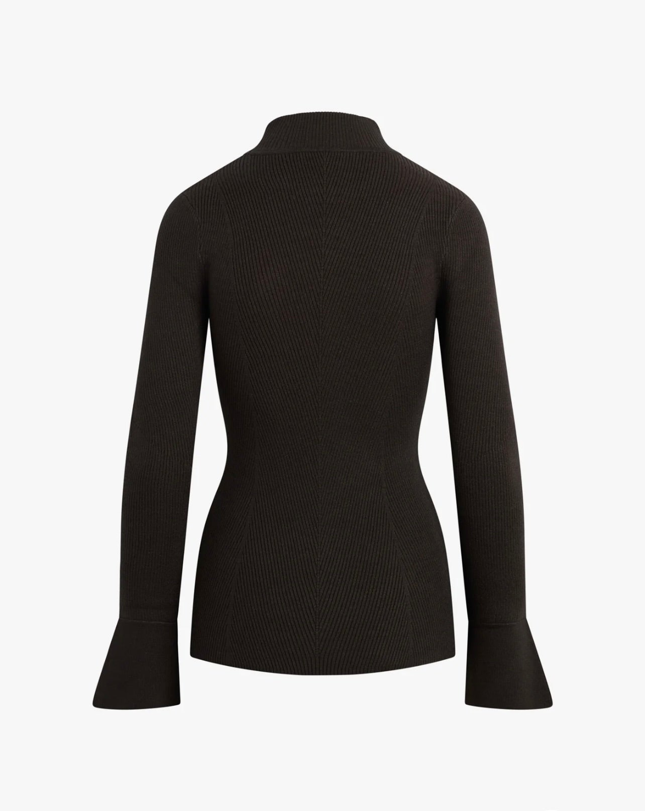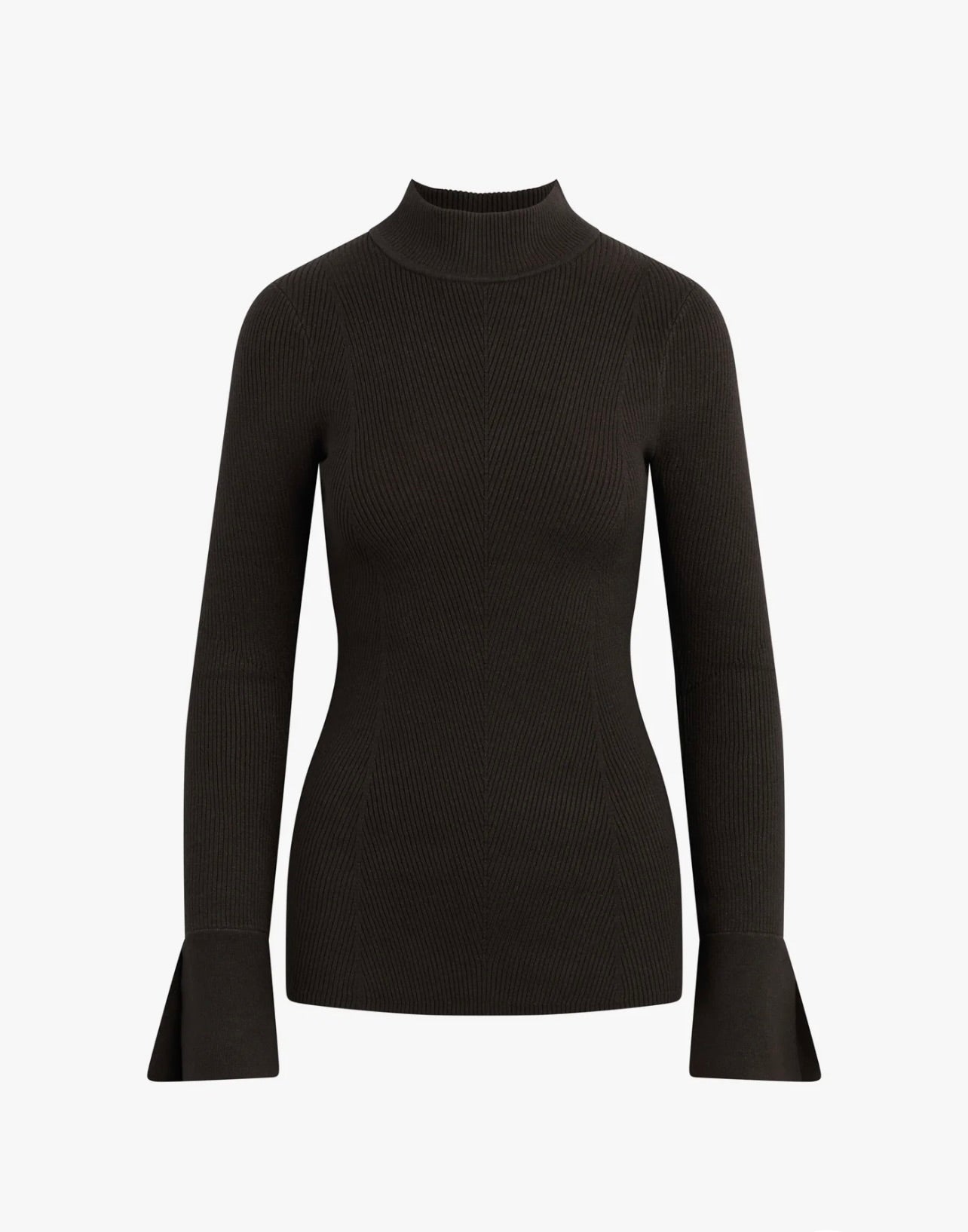 Bring runway sophistication into your daily rotation with The Runway Top. This refined piece features a sumptuous viscose-blend fabric with textured rib-knit construction, paired with a striking high neckline and tailored slim fit. Signature bell cuffs add an unexpected flourish that elevates any ensemble. Timeless in design yet distinctly contemporary, it's the polished essential every discerning wardrobe deserves.