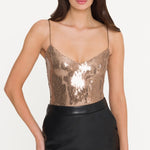 Generation Love Sarah Sequin Bodysuit in Coco