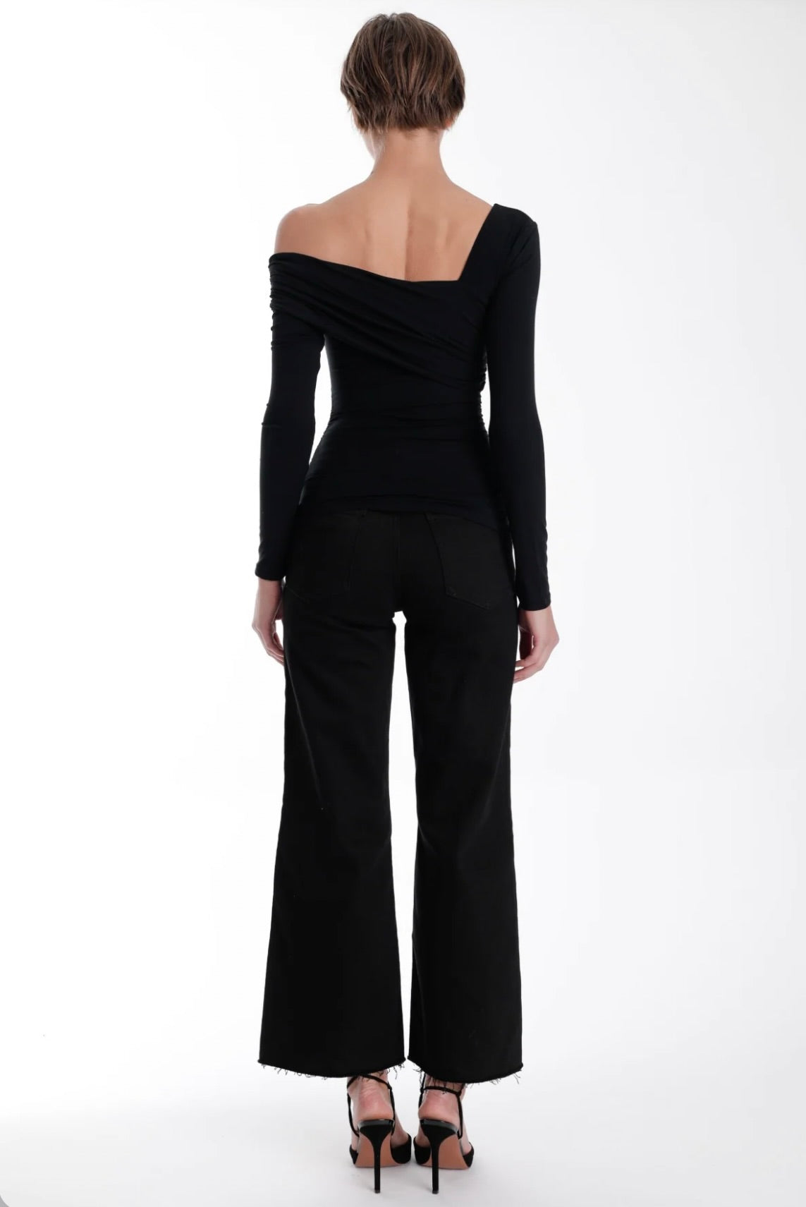 Elevate your evening style with the Alex Top, featuring a striking asymmetrical design that showcases one shoulder while elegantly draping the other. Its long sleeve adds a sophisticated touch, making it perfect for nights out or special occasions. This top blends bold fashion with effortless comfort, ensuring you stand out wherever you go.