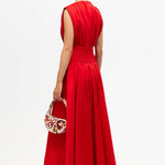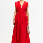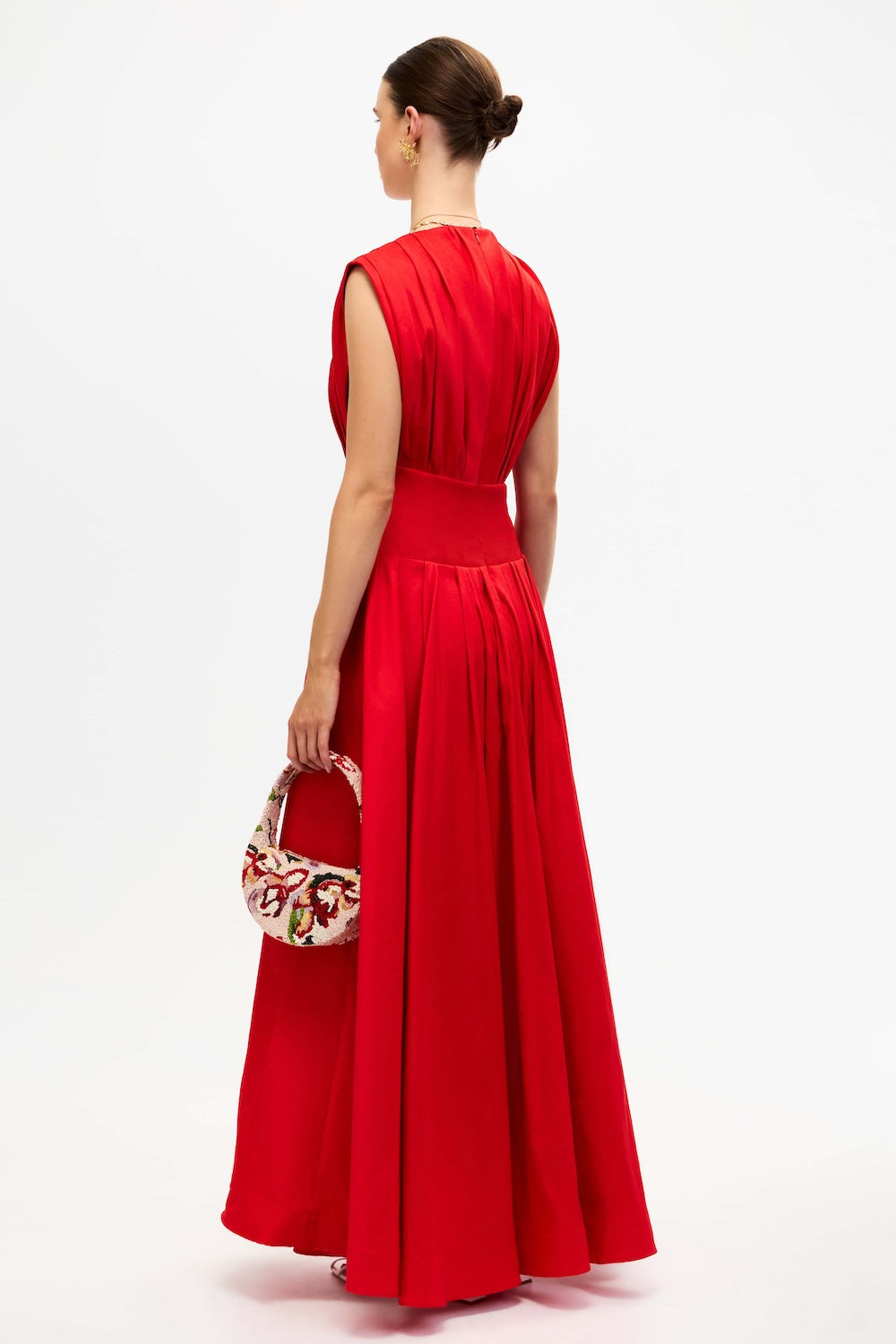 The Acler Innoxhill Maxi Dress in Cherry embodies understated luxury with its jewel-toned palette and commanding floor-length silhouette. Constructed from stretch dupion featuring a refined woven finish, this dress combines graceful draping with structural integrity for a polished aesthetic. The fabric's inherent elasticity allows for unrestricted movement, while the fully lined bodice delivers all-day comfort and confidence. Perfect for those who appreciate quality craftsmanship and timeless design, this maxi dress transitions seamlessly from refined daytime occasions to evening affairs.