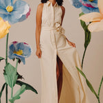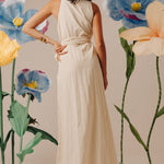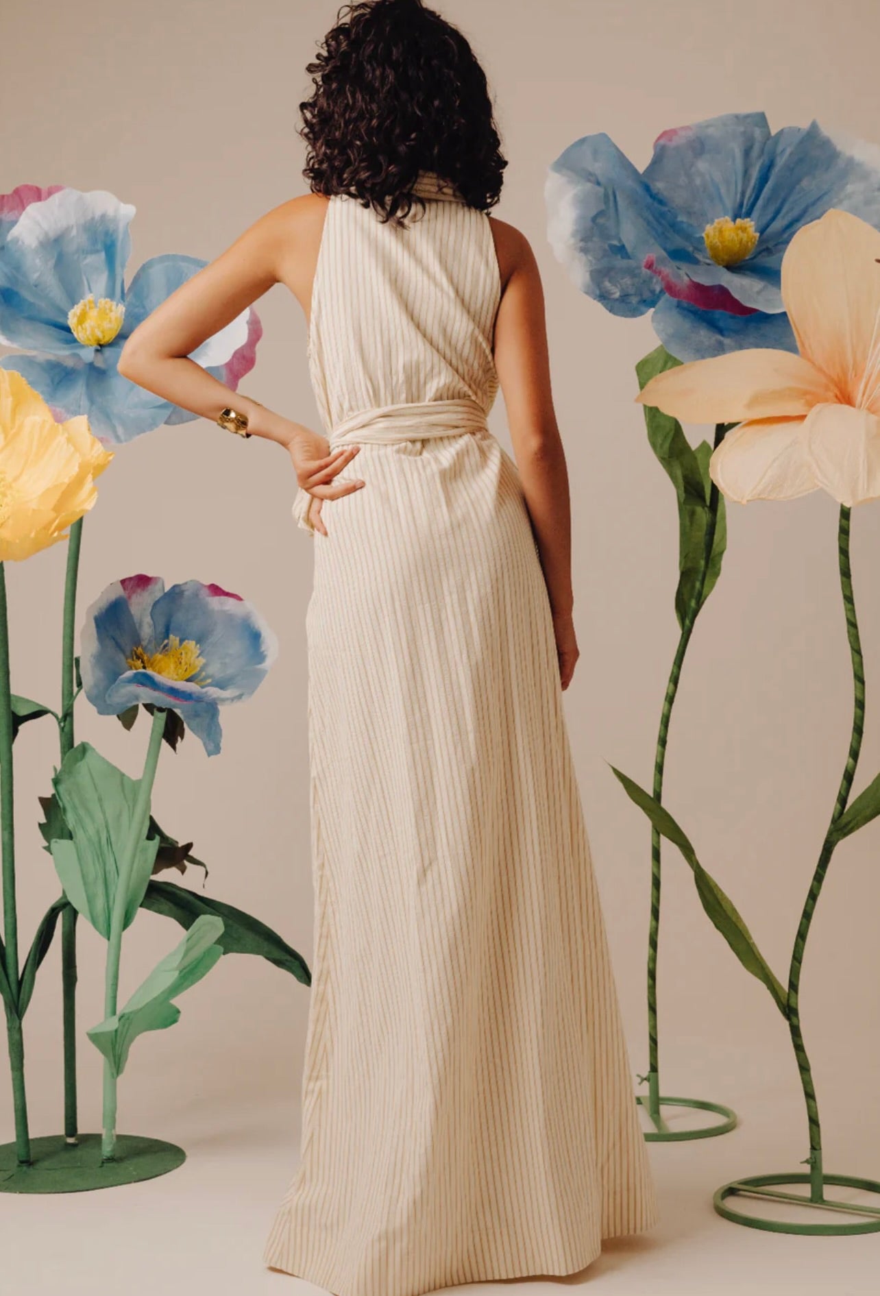 The luxurious Arlene Dress, featured in Macadamia Seersucker, boasts a timeless silhouette with a cinched waist and a front button-down placket. Slip into this collared maxi for effortless elegance and versatile coverage.