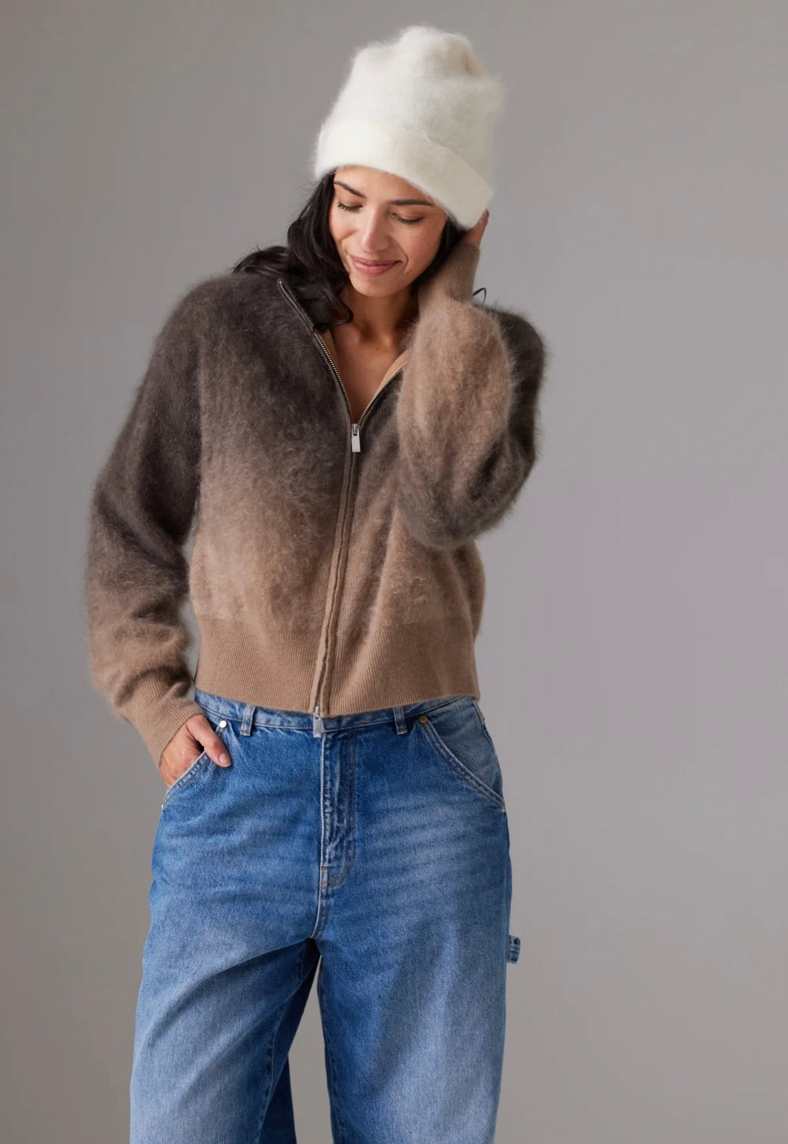 The Colorush Brushed Dip Toto Jacket in Cappuccino Dip is a luxurious 100% cashmere piece that blends boldness with softness. Its dip-dyed design adds depth and subtle uniqueness to each jacket, elevating your outerwear with rich, plush warmth. Perfect for making a refined statement, this jacket offers timeless sophistication and undeniable comfort.