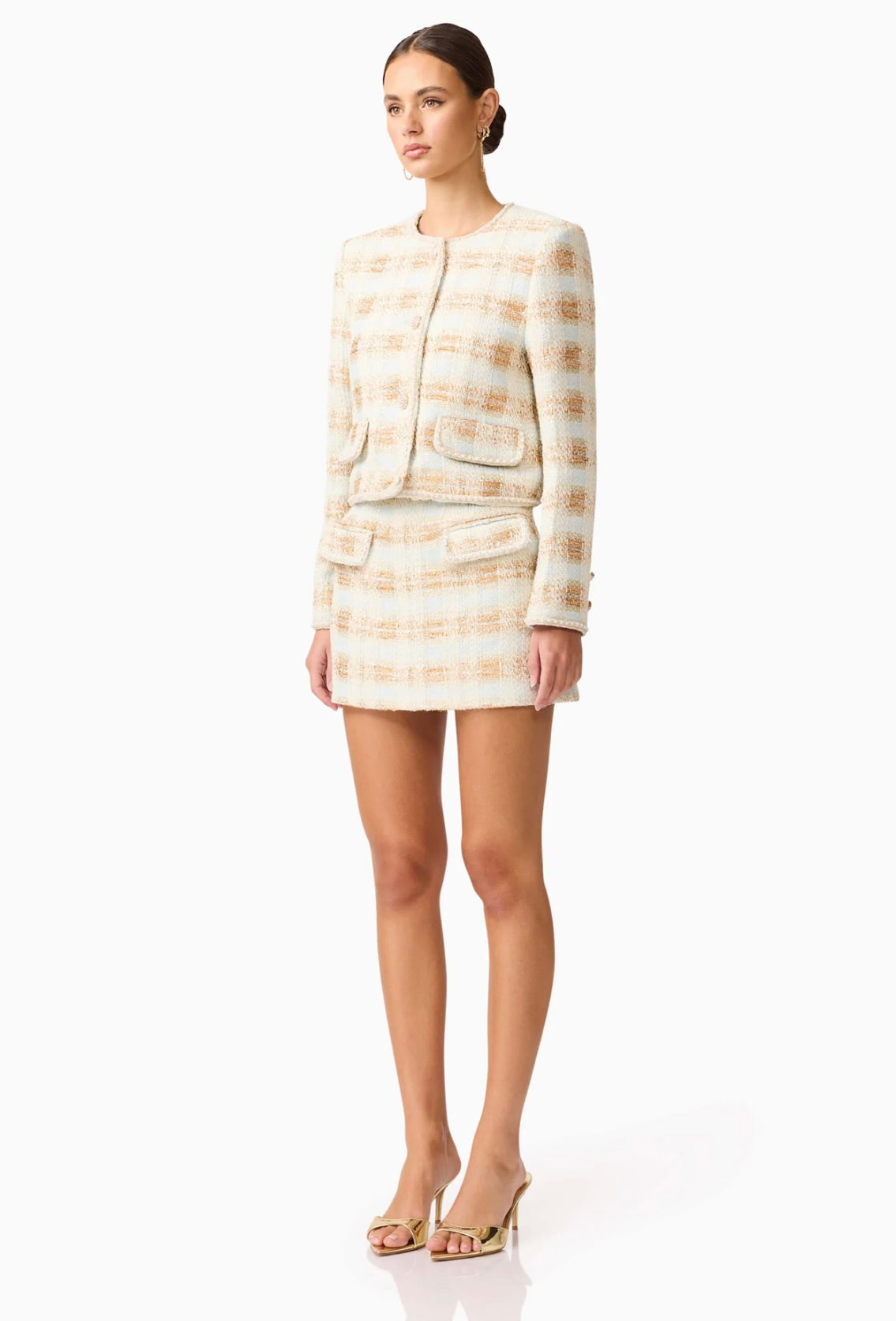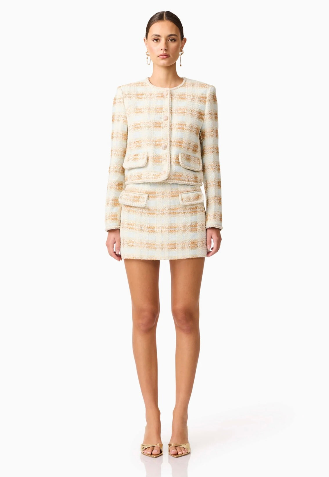 The Elliatt Ashlyn Mini Skirt offers refined elegance. Fully lined and tailored in a regular fit, it pairs seamlessly with the Ashlyn Long Sleeve jacket for a polished, coordinated ensemble, or wear it alone or with your favorite classics for versatile sophistication.