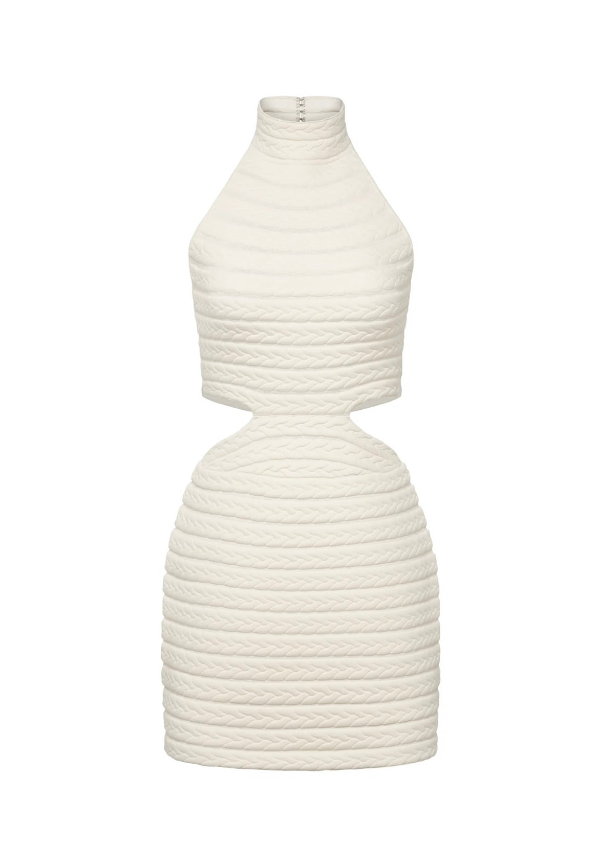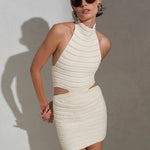 Effortlessly chic, this compact knit mini features a braided, padded texture that commands attention as a standalone piece. Cutout details and a refined halter neckline create modern sophistication. Lightweight and packable, it's the versatile essential that adapts to every moment of your getaway.