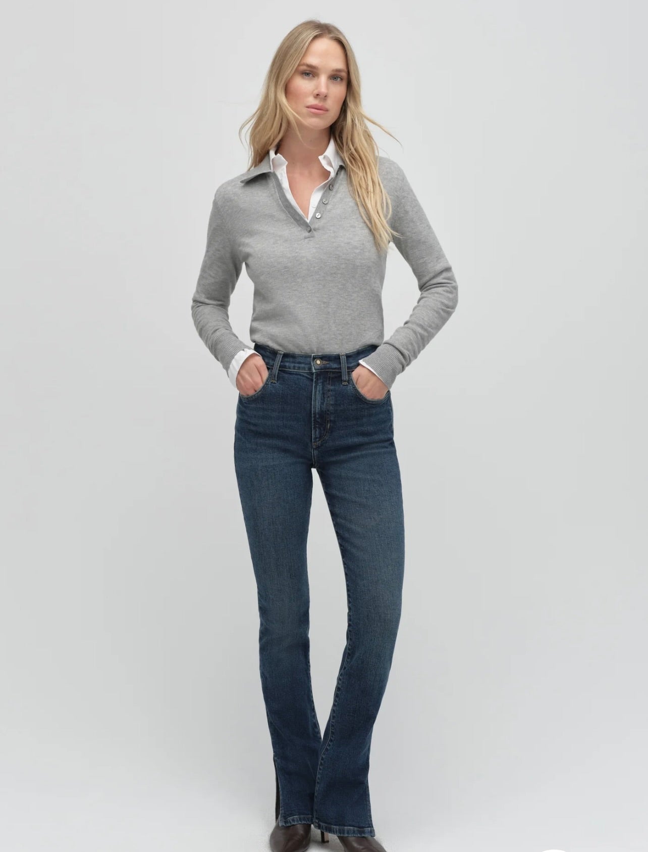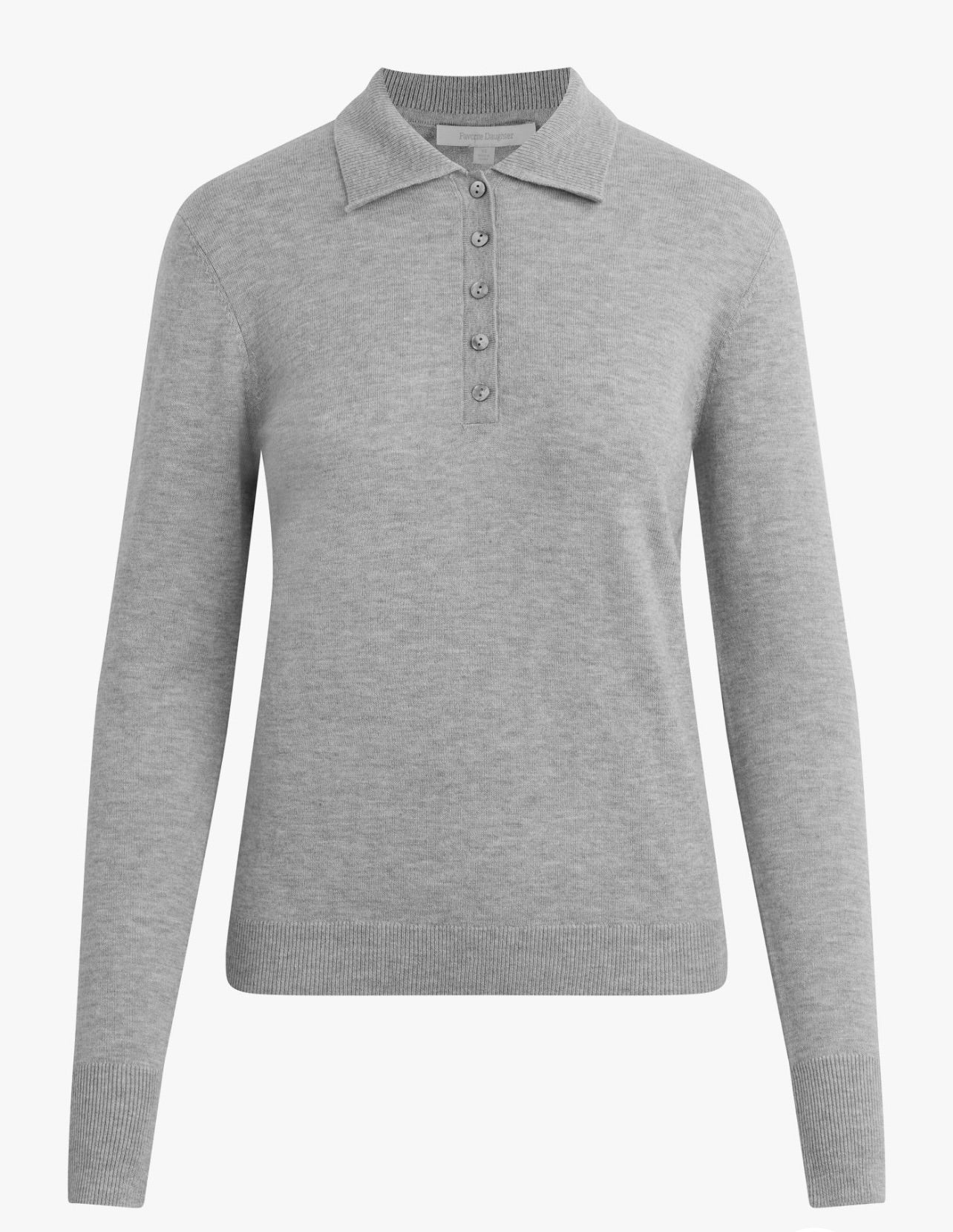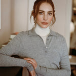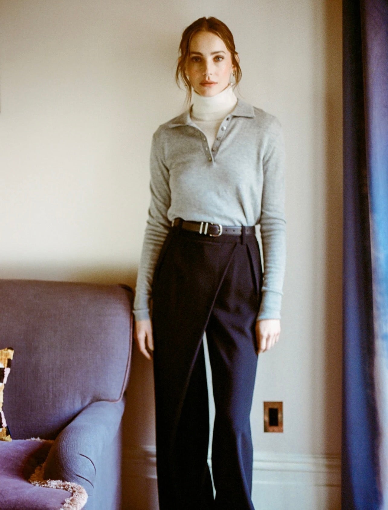 Effortless elegance meets everyday comfort in The Cleo Top. This classic polo sweater features a luxurious merino-cashmere blend that feels as refined as it looks, paired with a pointed collar, button placket, and relaxed silhouette. Long sleeves and a timeless design make it the perfect layering piece for any season—a wardrobe essential that transitions seamlessly from casual to polished.