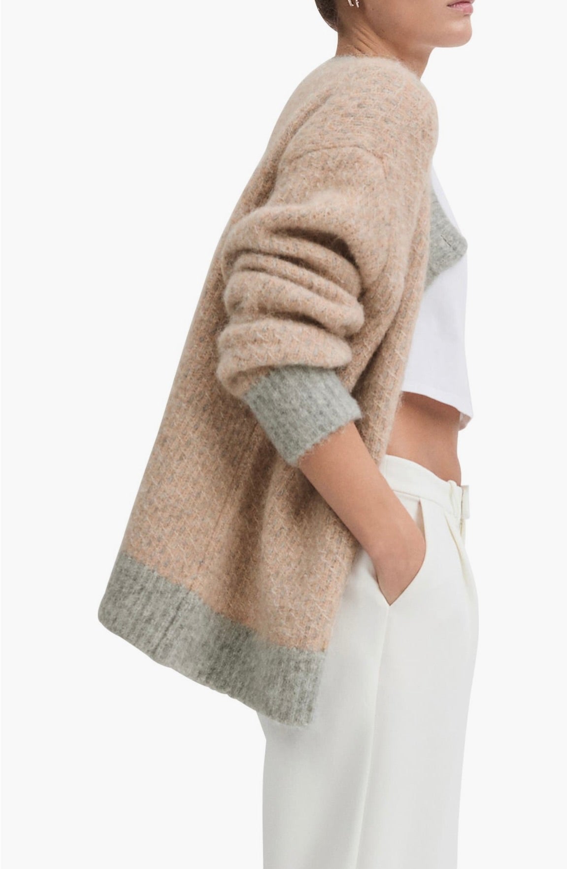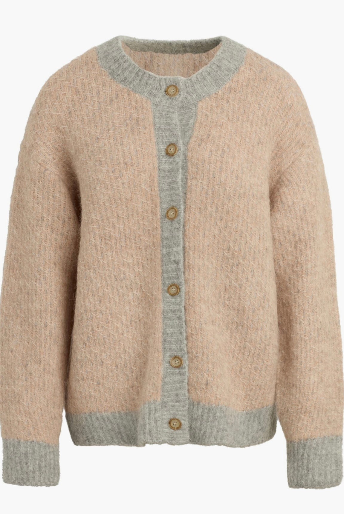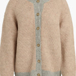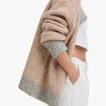 Embrace warmth and style with The Rio Cardigan, expertly crafted from a responsibly sourced alpaca-wool blend. This sophisticated piece features an oversized silhouette that drapes beautifully, complemented by a striking two-tone geometric pattern and distinctive faux horn buttons. Perfect for layering through the season, it combines comfort with refined elegance.