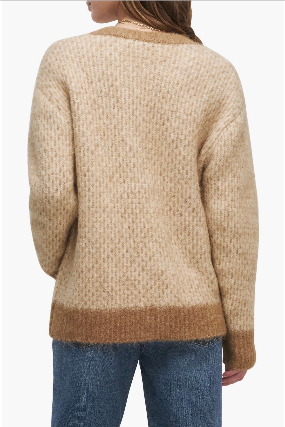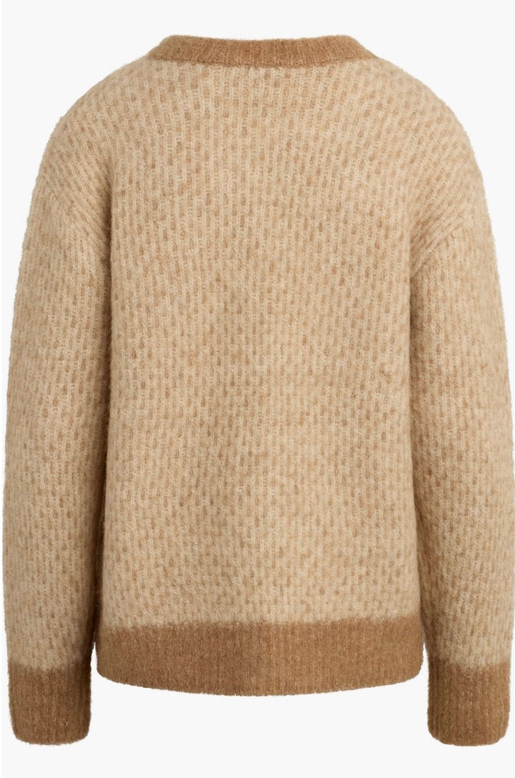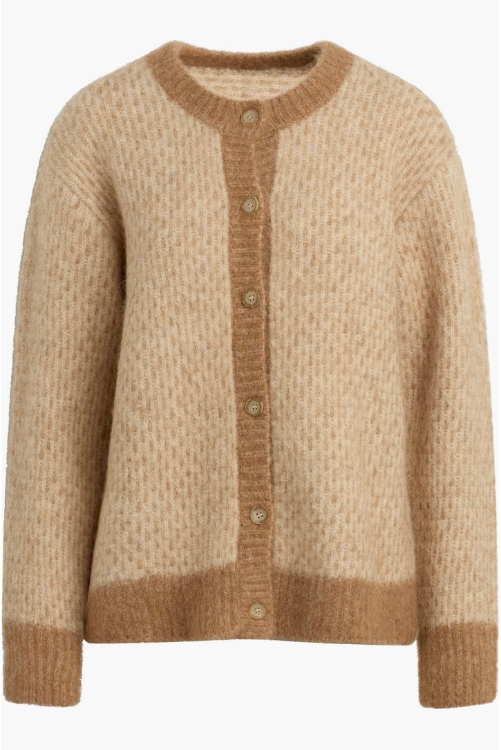 Embrace warmth and style with The Rio Cardigan, expertly crafted from a responsibly sourced alpaca-wool blend. This sophisticated piece features an oversized silhouette that drapes beautifully, complemented by a striking two-tone geometric pattern and distinctive faux horn buttons. Perfect for layering through the season, it combines comfort with refined elegance.