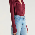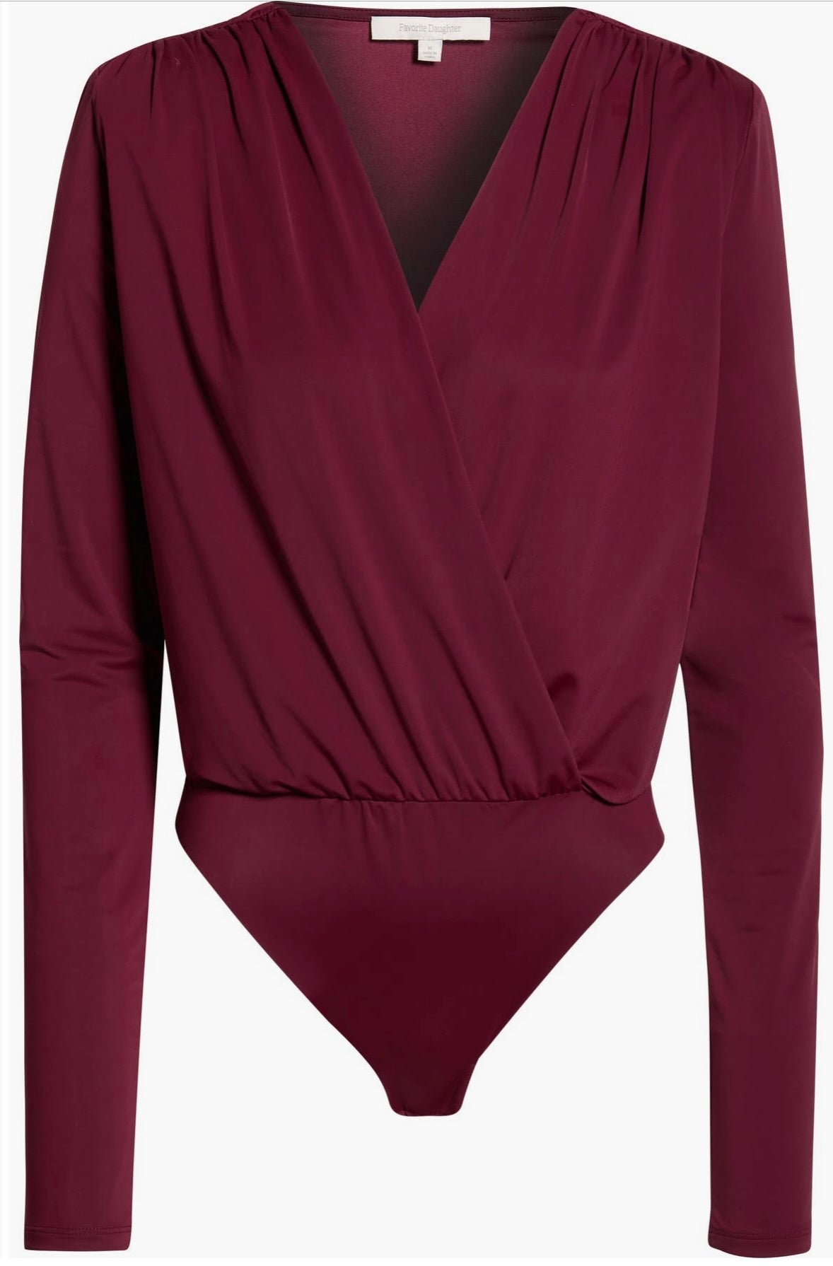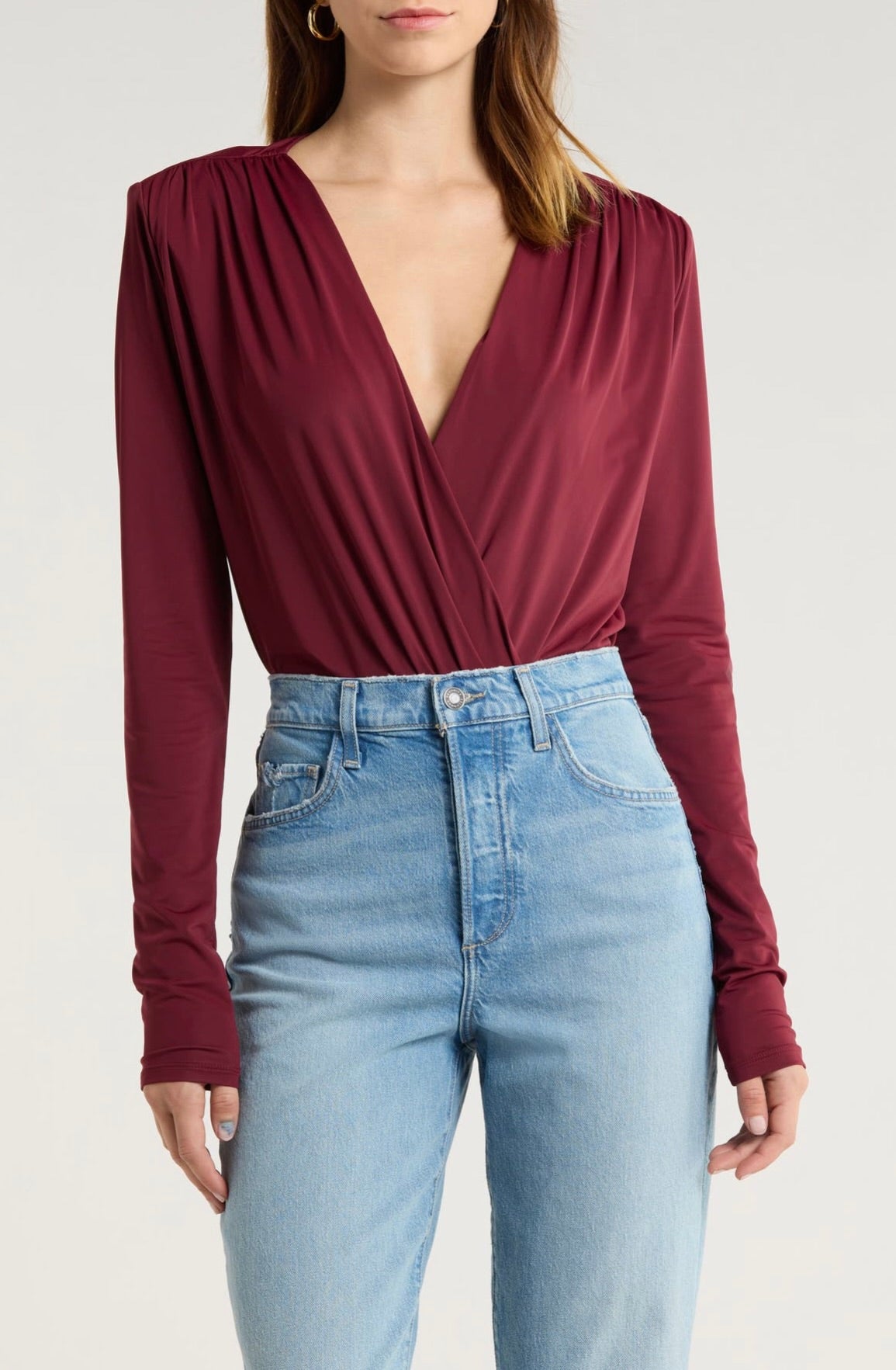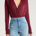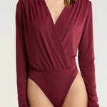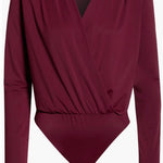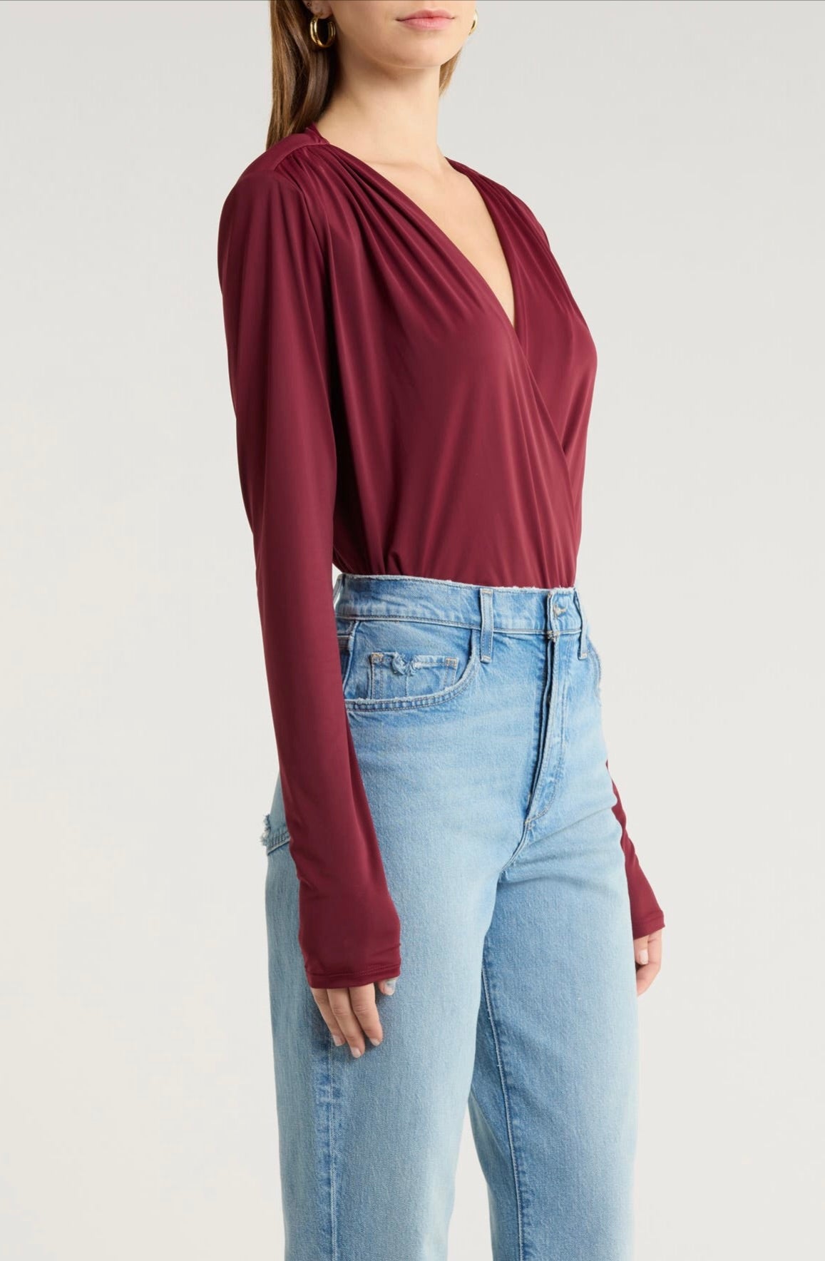 A wardrobe essential that transitions effortlessly from evening out to everyday wear. This bestselling bodysuit showcases a graceful front crossover and streamlined sleeves in a luxuriously soft, stretchy flat knit that skims the body with understated elegance.