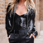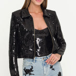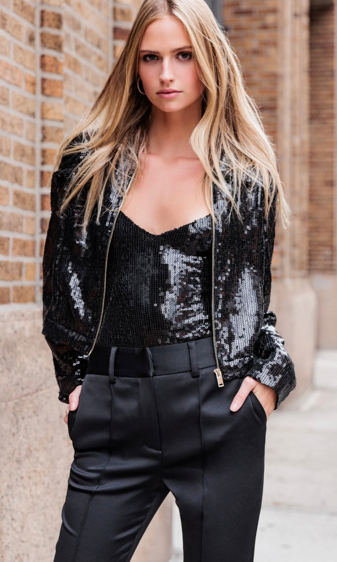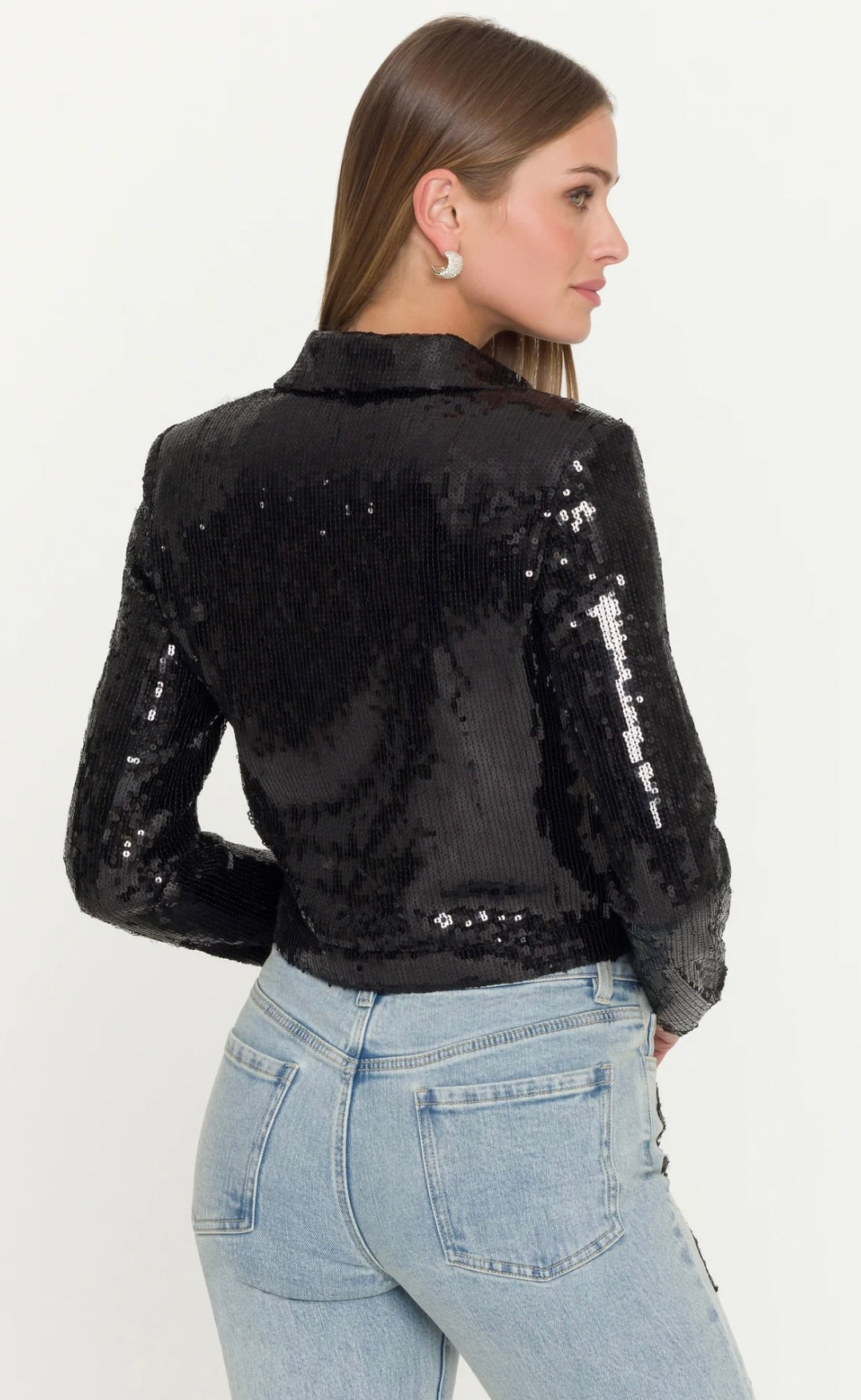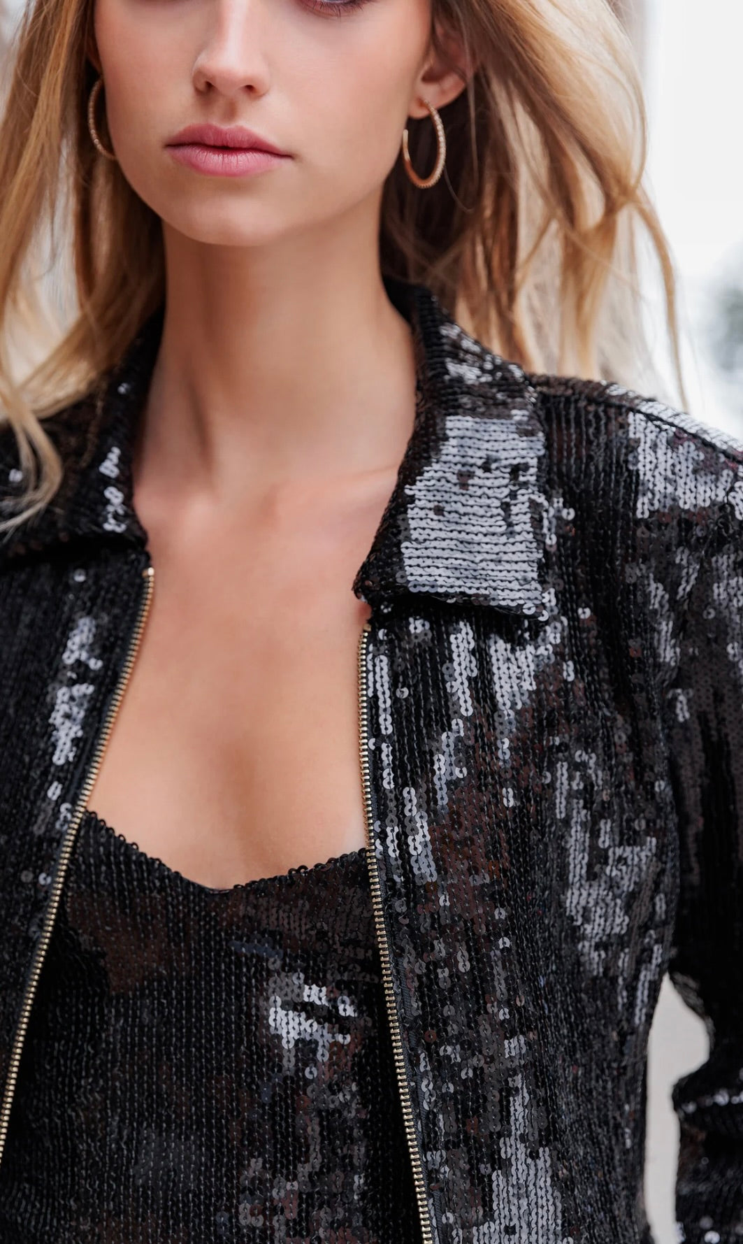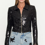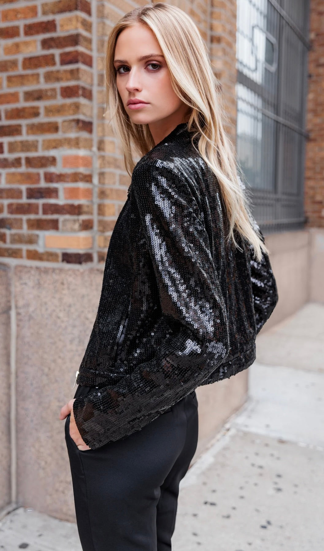Make a statement with the Generation Love Lola Sequin Jacket, where refined elegance meets eye-catching sparkle. This cropped jacket features luxurious all-over black sequins that catch the light beautifully, paired with a polished collar and expertly tailored construction. Versatile enough to elevate a cocktail dress or add unexpected glamour to tailored trousers, it transitions seamlessly from evening events to upscale casual occasions--style with leather pieces for bold sophistication or layer over denim for an effortlessly chic contrast.