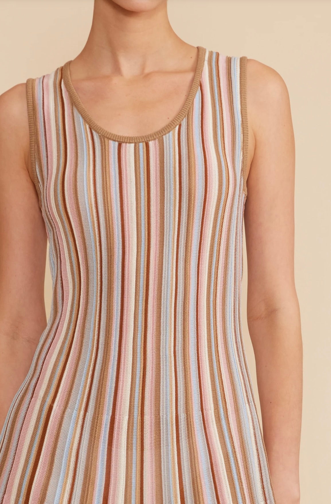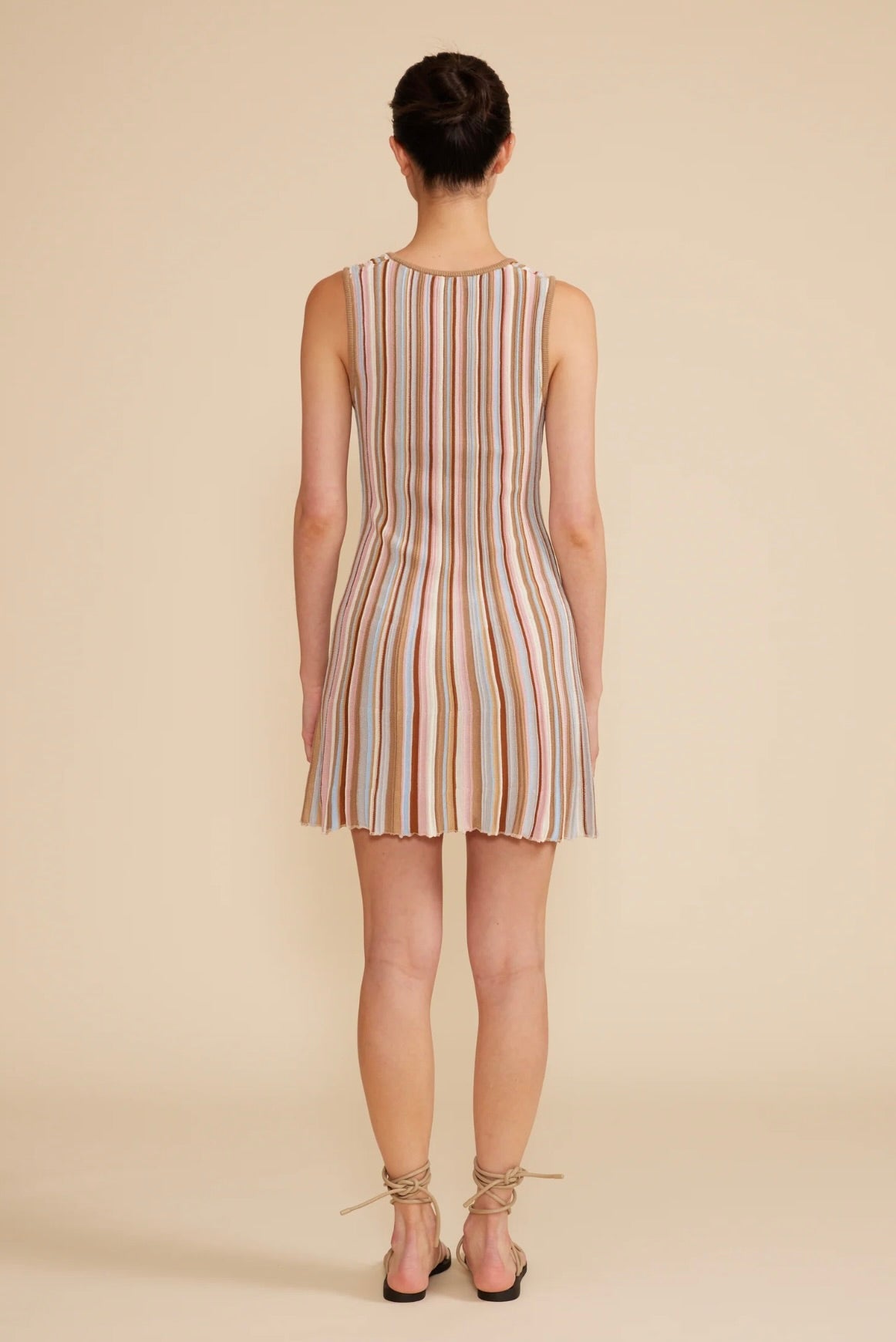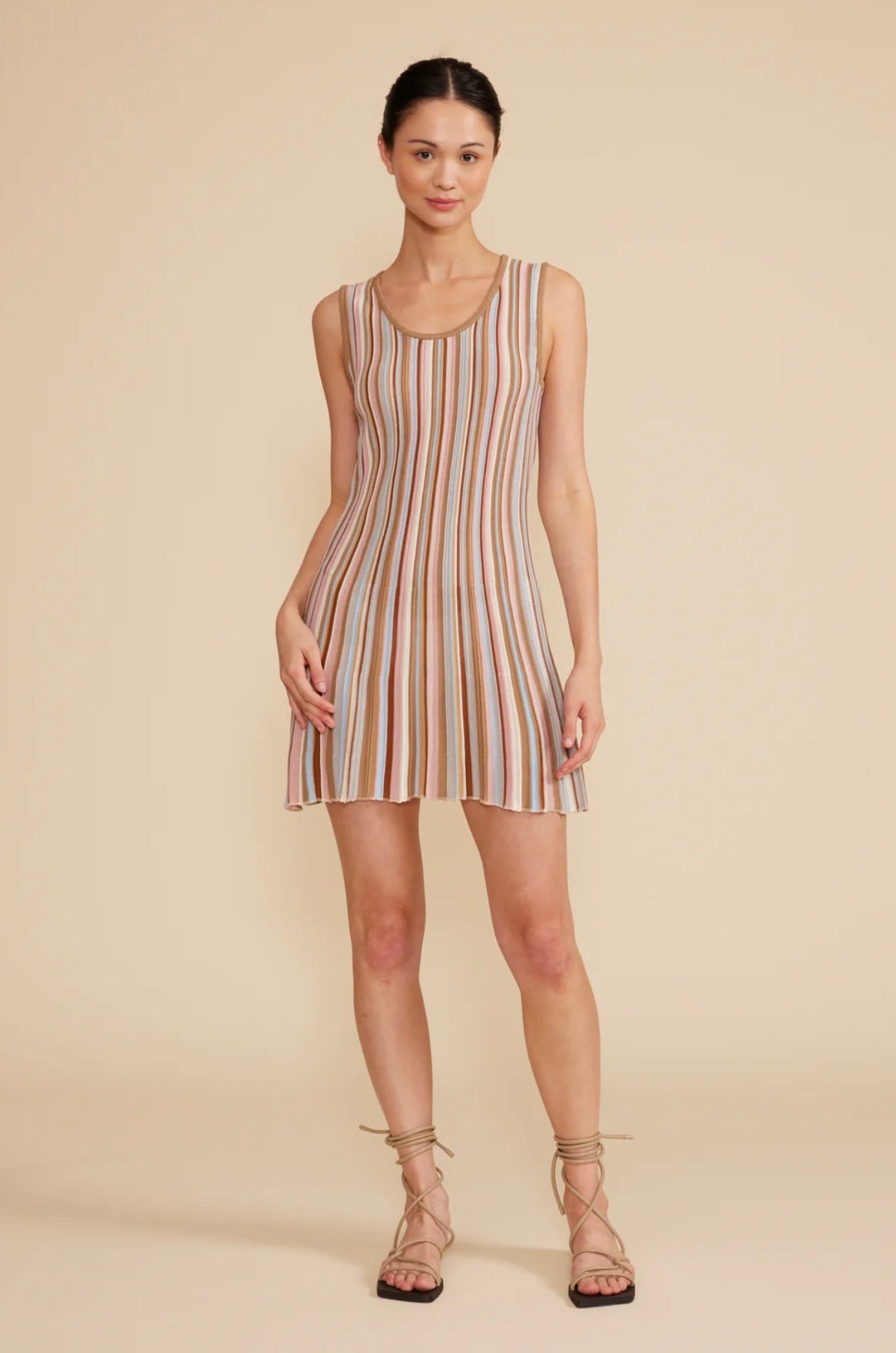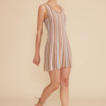The multi-color stripes add a playful touch to this mini dress, while the knit fabric provides comfort and a flattering fit. Perfect for any occasion, stand out in this unique and chic piece.