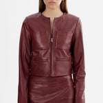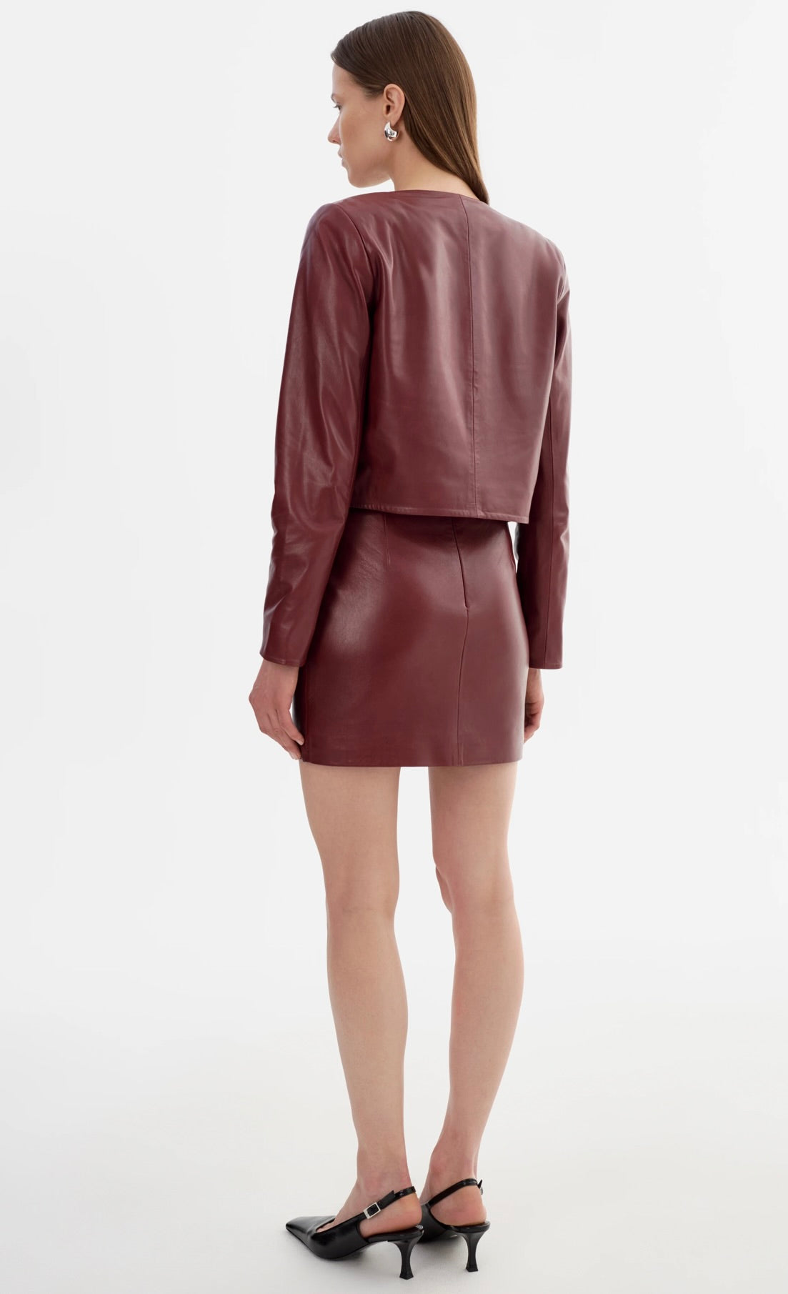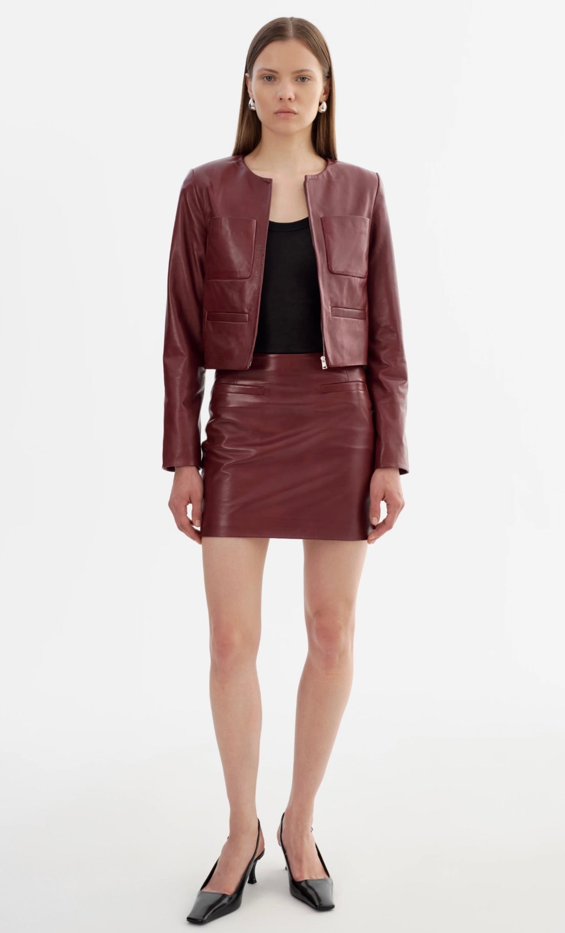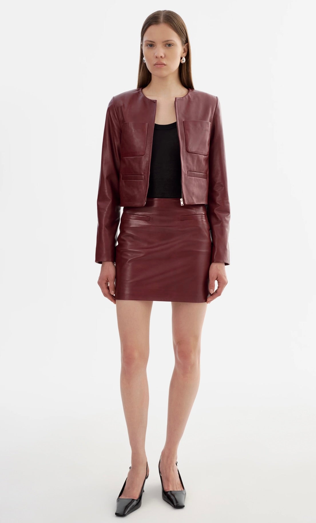 The LINETTE Leather Jacket is a must-have for any timeless wardrobe, showcasing a modern twist on a classic silhouette. Expertly crafted from luxurious lamb leather, this piece boasts a chic round collar, two front patch pockets, and a sleek, minimalist design.